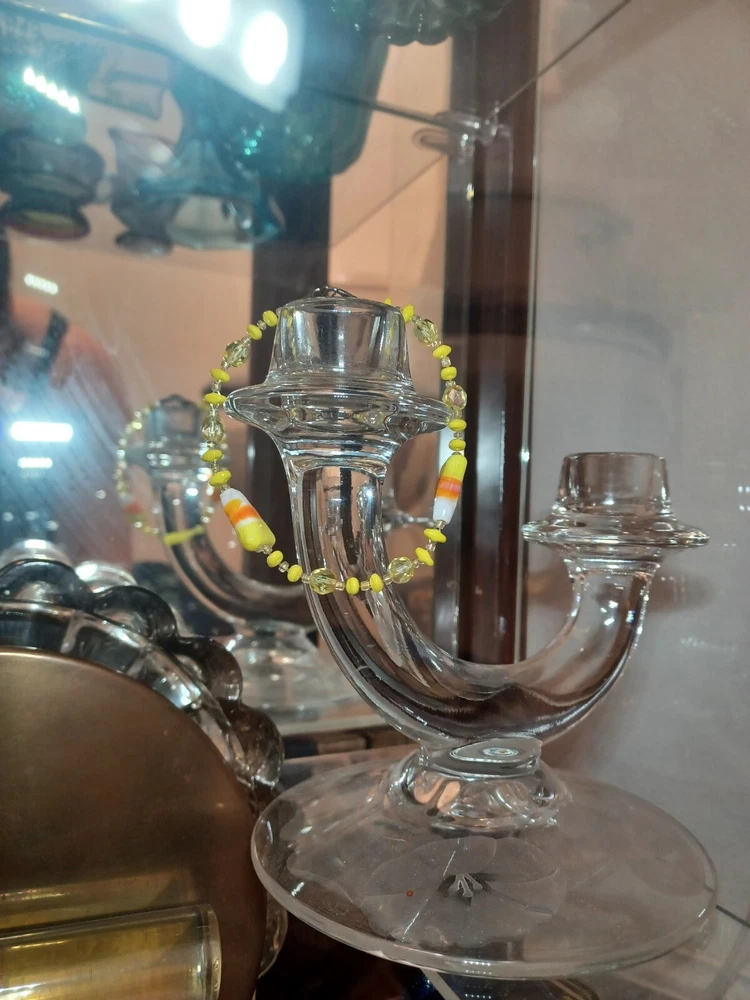 Whether you're dressing up for a special occasion or just want to add some sparkle to your everyday look, this bracelet is the perfect accessory. It's made from high-quality materials and is designed to last for years to come. So why wait? Add this gorgeous Candy Corn Glowing Bracelet to your jewelry collection today! Czech cadmium, uranium beads used. This is a handmade item.