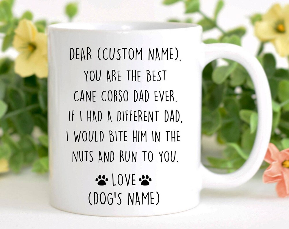 Cane Corso Dad Birthday Gift Cane Corz Dad Christmas Gift Italian Mastiff Dad Valentine Cane Di Macellaio Mug Cane Corz Dad Appreciation Product Details.. This high quality 11oz. ceramic white mug has a premium hard coat that provides crisp and vibrant color reproduction sure to last for years. Perfect for all hot & cold beverages. The highest quality printing possible is used. It will never fade no matter how many times you wash it. Material: 100% Ceramic. Print both sides. Dishwasher and Microwave Safe. High Gloss + Premium White Finish. Printed in the U.S.A. Personalized & Custom. We support personalized and custom mug to add custom, when placing an order, you can add notes to the "order note" in shipping address section. Also you can contact us directly via message. Shipping Info. Ready to ship in 1 to 2 business days, All products are made-to-order and proudly printed in the United States. Shipped by USPS and DHL, You will receive your order in 5-7 days. Replace & Refund. All products are defective during shipping broken, chipped will be replaced free of charge. You are not satisfied with the product, we will refund 100% money to you. If any other issues arise, please do not hesitate to message, we would be more than happy to assist you.