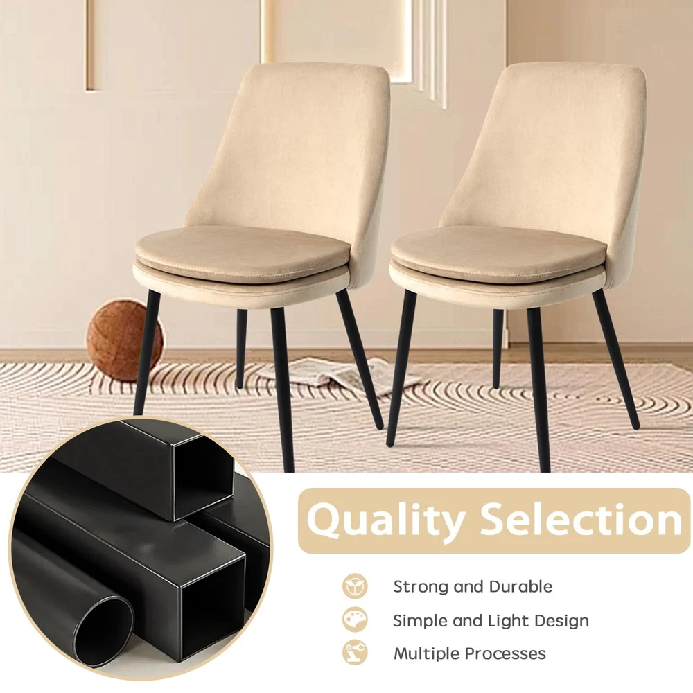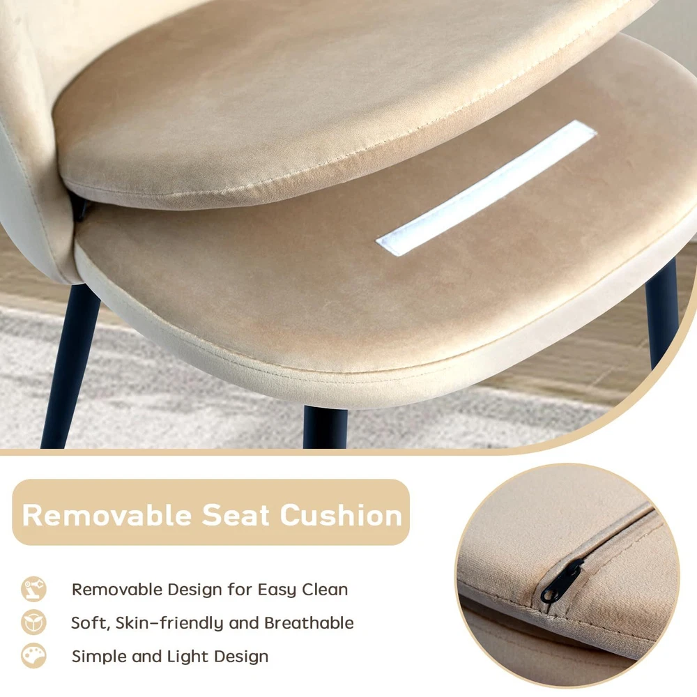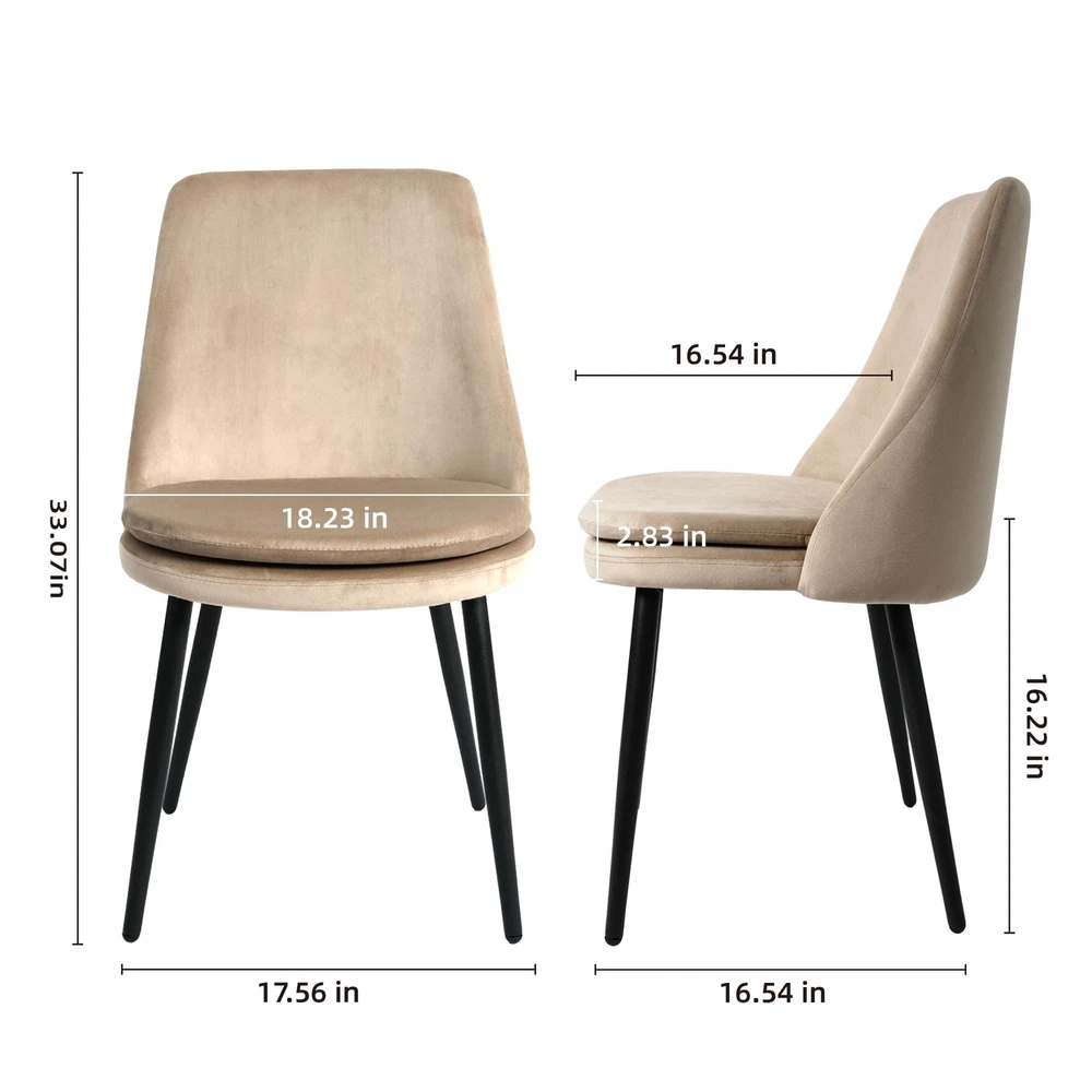 CangLong Upholstered Velvet Dining Chairs Set of 4 , High Back Armless Boucle Dinner Chairs with Metal Legs for Home Kitchen , Living Room & Meeting Room , Light Coffee Premium Quality materials:resistant steel frame, to last for many years of intensive daily use. The velvet seating upholstery and Slab foam filling of the cushion are of superior quality, while the tailored-stitching Backseat details add to the modern design of the chair This chair is developed having your comfort and health in mind. The comfortable seating and strong base are complemented by a well-designed metallic footpad, helping maintain and improve your posture while providing your lower back The support it requires Adorned with luxurious velvet for decorative appeal providing a plush comfort, the fluffy seat also boasts superb elasticity and strong resilience for snugness.Whether drawn up to a dining table for a stylish meal, a side chair like this is a versatile accent wherever you need it Multiple Usage: The Velvet Cushion chairs can be used in the dining room, kitchen room, living room, guest room, vacation house as a reading chair, tea corner chair or desk chair, etc If you have any questions, please feel free to contact us via email and we will give you a satisfactory solution immediately