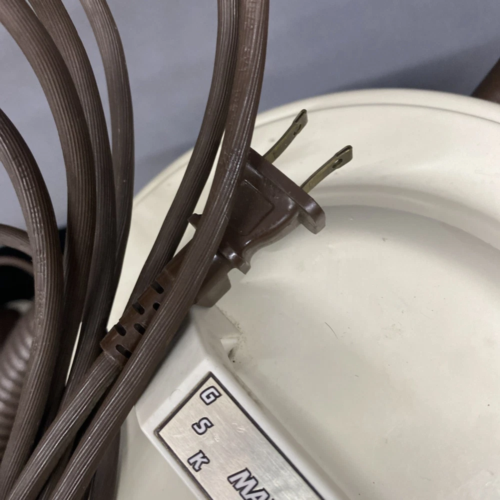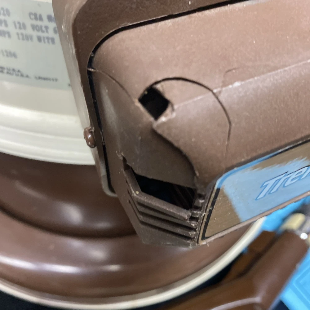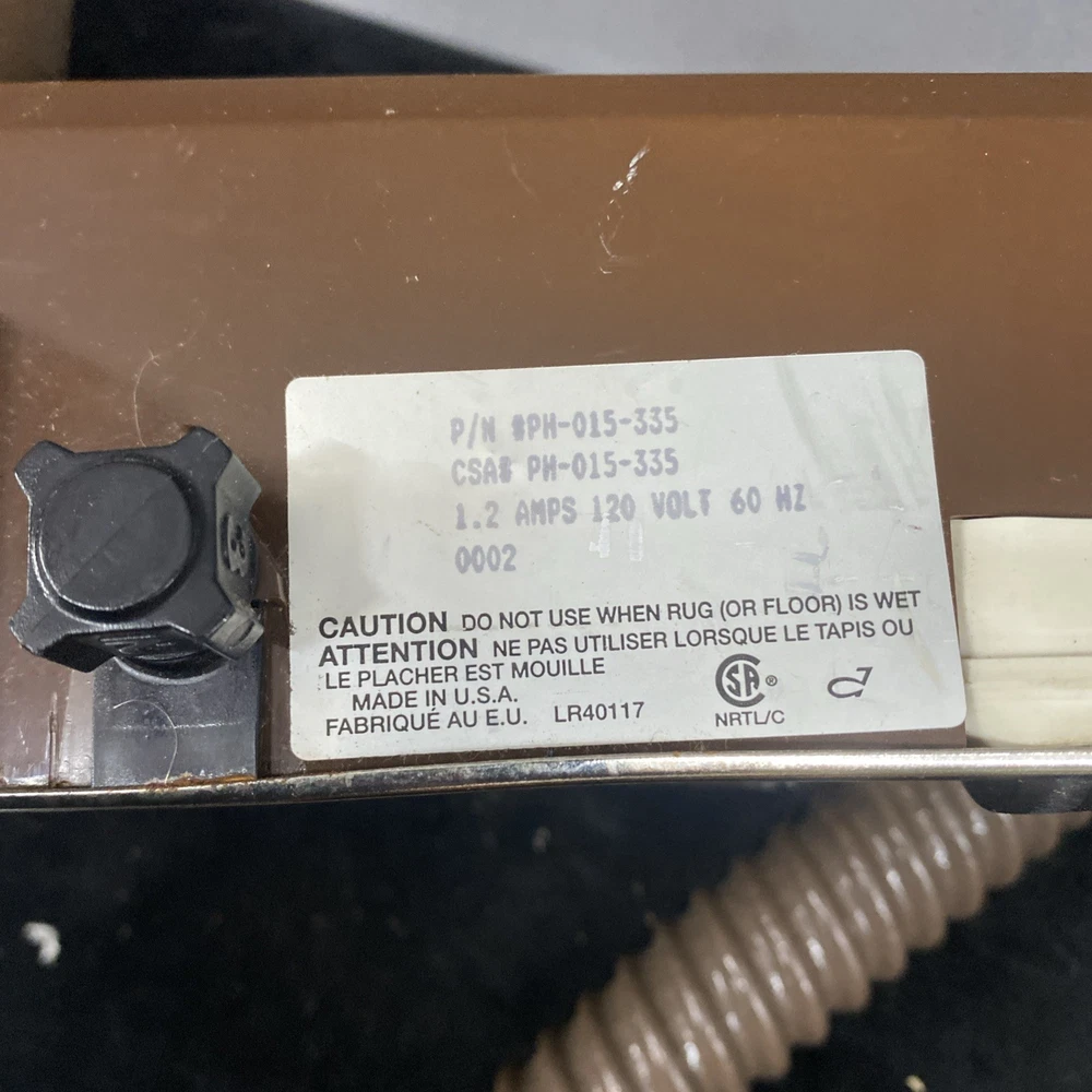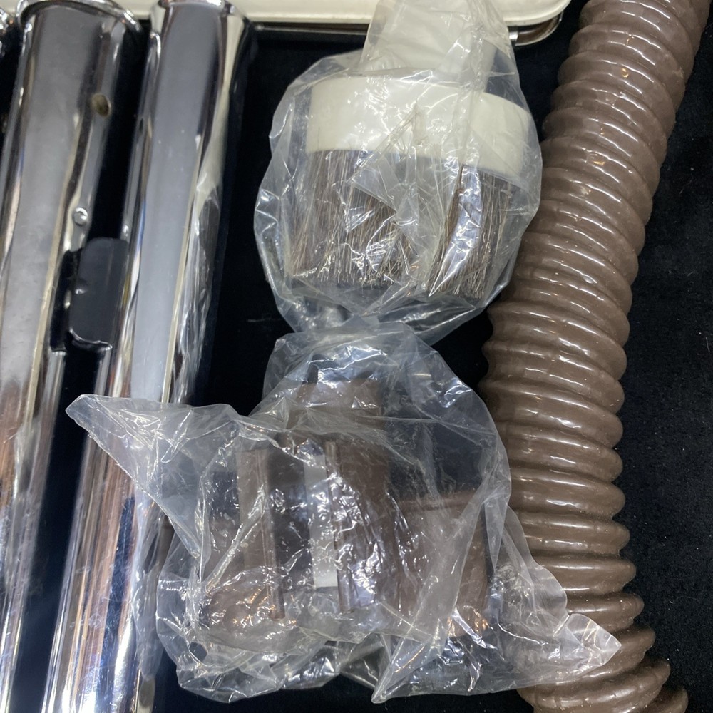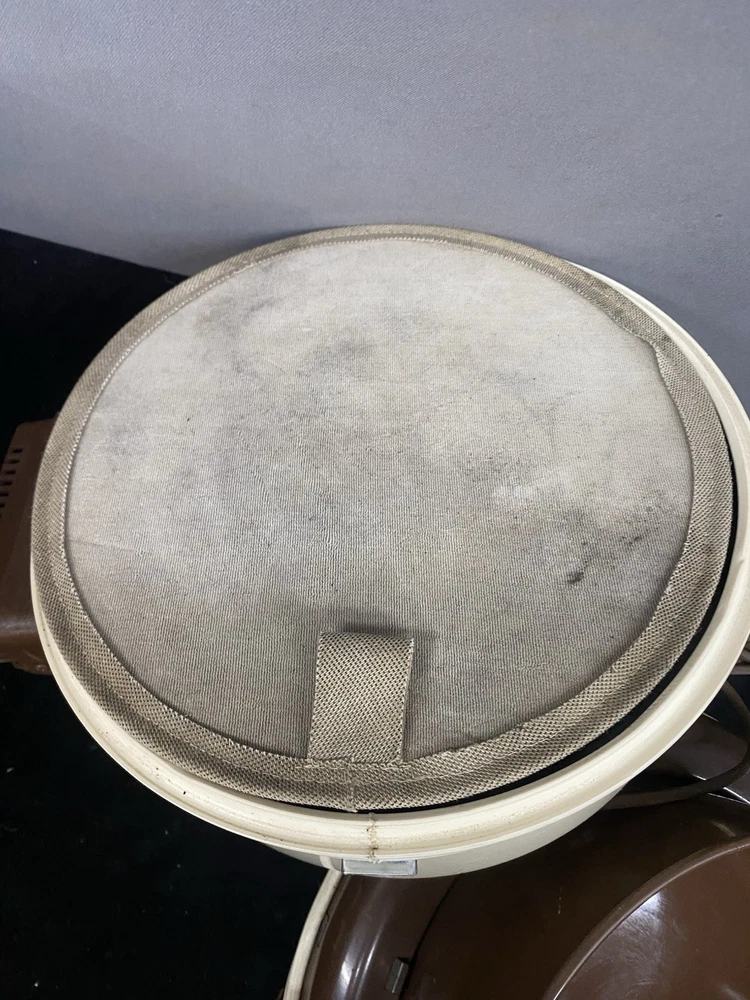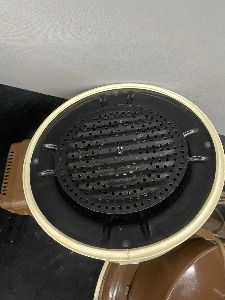 The Vintage TrendVac canister vacuum by GSK Industries is a stylish and functional cleaning tool in a tan brown color. This bagged vacuum cleaner includes a variety of accessories such as a nozzle, filter, extension wand, floor brush, upholstery brush, and crevice tool. With its portable design and rotating brushes, this corded vacuum is perfect for efficiently cleaning your home with ease. COMES WITH ONE PARTIALLY USED FILTER BAG SO YOU CAN REORDER MORE HAS A CRACK ON THE FILTER IZER ATTACHED OVER EXHAUST. WASHABLE FILTER INSIDE IS STAINED BUT STILL REUSEABLE. HAS OTHER SCRATCHES AND WEAR TO THE FINISH. STILL WORKS GREAT. EXCELLENT SUCTION. Instructions are damaged and half of book is missing.