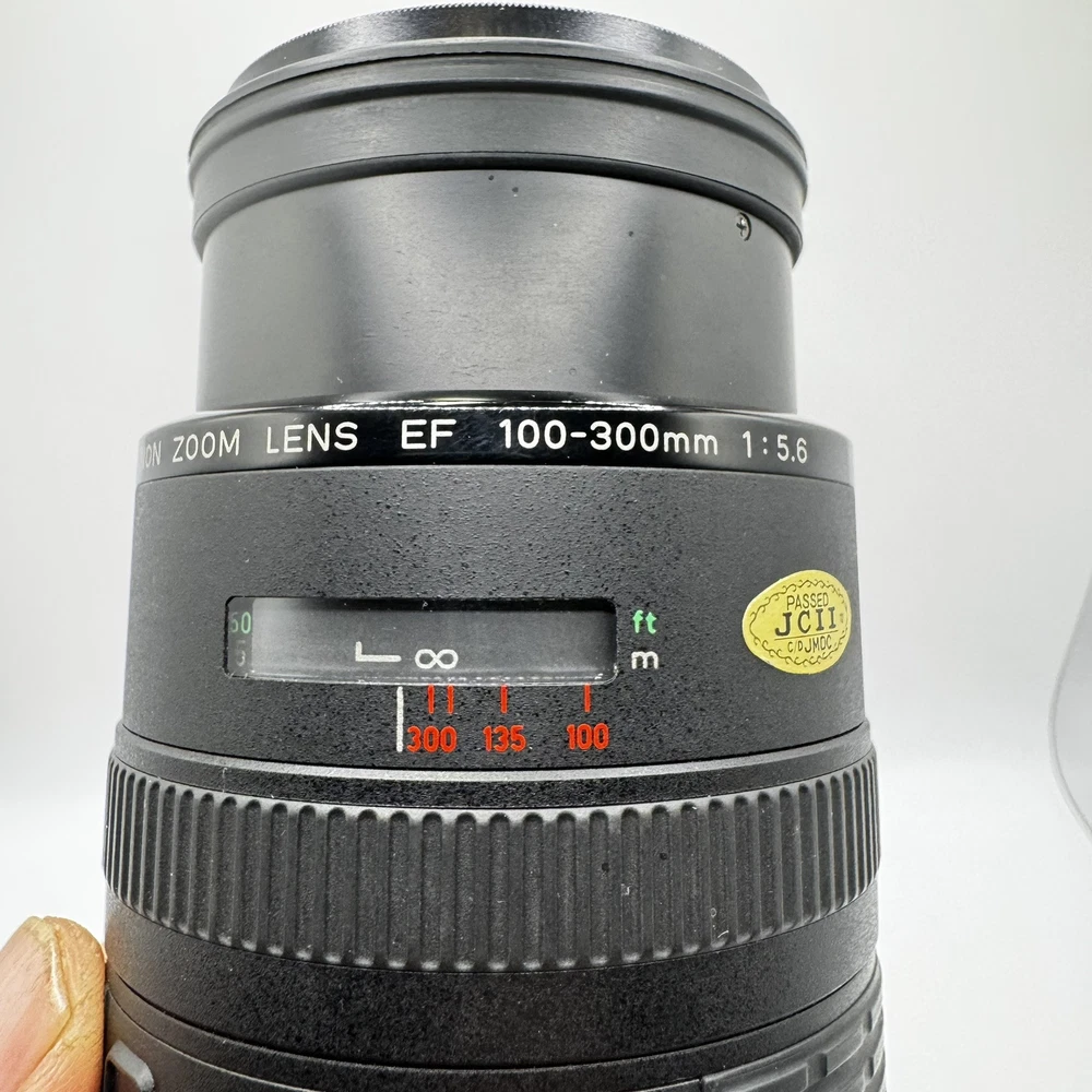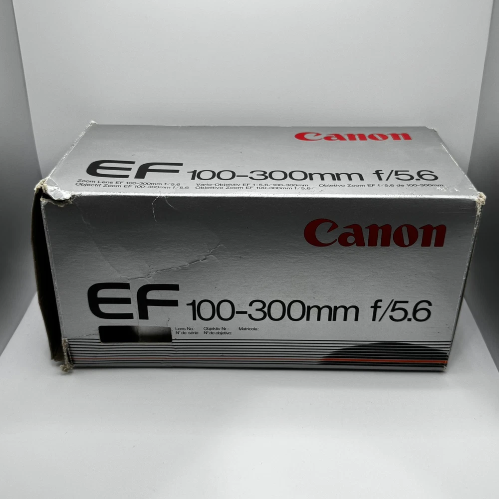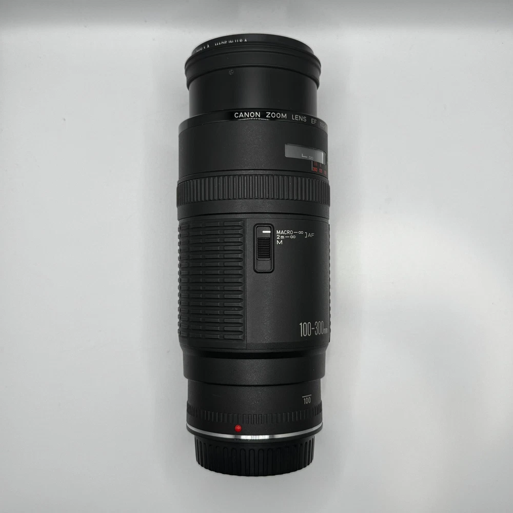 Canon EF 100-300mm f5.6 Macro Lens With Original Box This item is preowned and in good condition. Has some minor wear from use. It is missing the from lens cover. Box has some minor damage. See photos for details. Fast Shipping!!