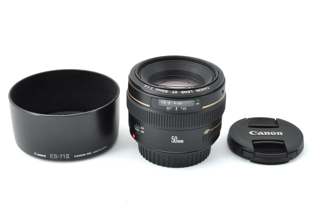 ::: Top-MINT ::: Canon EF 50mm f1.4 USM AF MF / Standard / Prime Lens / USM Item Description Appearance Condition: Beautiful in Top-MINT condition. It has mostly no signs of use. Very sharp. Photos are of the actual item for sale, please see the photos for the condition. You'll receive what you see. Optics Condition: The optics are very clear. [ Haze ] No [ Fungus ] No [ Scratch ] No [ Balsam Separation ] No [ Dust ] There is a little micro dust inside . Does not affect photography. Functional Condition: Tested: Works properly The focusing ring moves nicely Accessories: Hood Front Cap Rear Cap Shipping & Handling Our inventory is stored in a clean, climate-controlled warehouse. We sanitize and disinfect all of our products with rubbing alcohol before shipping. Your order will be packed carefully and shipped promptly with tracking from Japan. Shipping is available from Monday to Friday, except on public holidays. If you have any questions, please feel free to ask. Thank you. Return Policy Your satisfaction is essential to us. We accept returns if you contact us within 30 days of receiving the product. All returned items must be in their original condition. All returns must be made within 30 days of receipt of merchandise. To initiate your return, please contact us first before making a return request. A 15% restocking fee will be charged for returns for customer reasons. Import Duties & VAT Please Note: Customs duties, VAT, and other import fees are the responsibility of the buyer in accordance with eBay's Terms and Conditions. You may be billed separately by the shipping company handling customs clearance prior to delivery (only if applicable). Please contact your local tax authorities directly for details on taxes associated with your purchase from overseas. Why choose us? Quality Selection Our carefully selected collection of high-quality, well-maintained equipment ensures that you get the best value for your money. Wide Variety From top brands to specialized lenses, we offer a wide selection of cameras and lenses to suit your needs. Attentive Customer Service Our staff is trained to provide attentive, friendly, and caring service with decent English, ensuring that you have a positive experience with us. Secure Packaging & Fast Shipping All of our inventory is stored in a clean, climate-controlled, animal-free, and smoke-free warehouse. Orders are packed with the greatest care and shipped promptly with tracking from Japan.