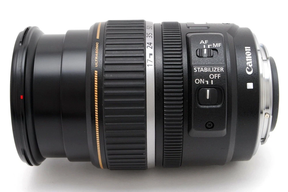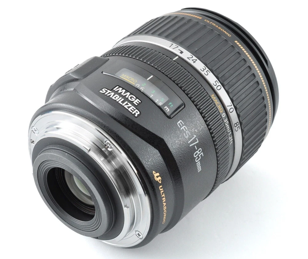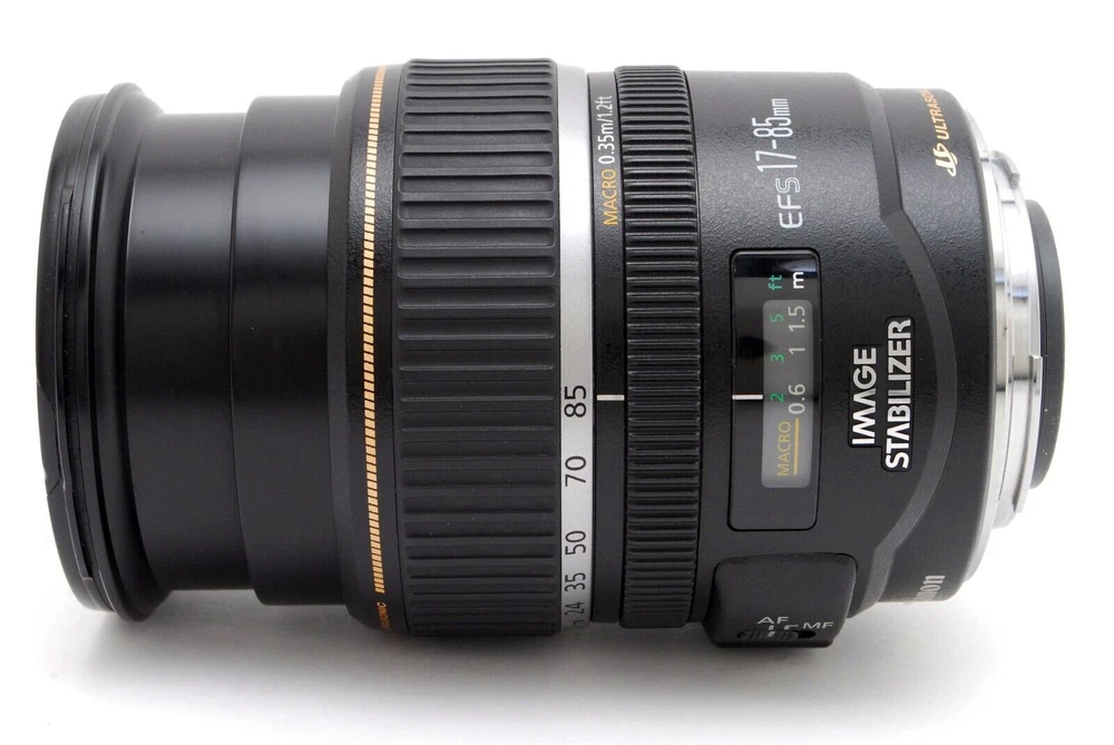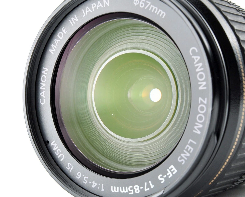 Package included: 17-85mm Lens *1 Lens front cover *1 Lens back cover *1 Whether you’re shooting landscapes, portraits, or spontaneous moments, the Canon EF-S 17-85mm f/4-5.6 IS USM is a versatile, reliable lens that delivers excellent results in various scenarios. Versatile Zoom for Everyday Photography: With a focal length equivalent to 27-136mm on full-frame cameras, this lens covers a highly practical range, perfect for capturing a wide variety of subjects. Whether it’s landscapes, portraits, or casual snapshots, this lens has you covered. Its lightweight and compact design make it an excellent companion for travel and everyday use. Built-In Image Stabilization: The lens features advanced image stabilization technology, providing up to 3 stops of shake correction. This allows for clear handheld shots in low-light settings or when using slower shutter speeds for creative effects. Advanced Optical Design: Optimized for APS-C sensors, the lens delivers a 5x zoom range with outstanding image quality. It’s the first EF lens to incorporate dual-sided aspherical elements, effectively reducing distortion and aberrations for sharp, high-contrast images throughout the zoom range. Product Highlights Versatile Focal Range: Covers 27-136mm (35mm equivalent) for a wide range of applications Lightweight and Compact: Weighing only 475g (1.05 lbs), it’s easy to carry on your adventures Image Stabilization: Compensates for up to 3 stops of camera shake for sharper images High-Quality Optics: 17 elements in 12 groups, including advanced aspherical elements for minimized distortion Close Focusing Distance: Minimum focusing distance of just 0.35m (13.8 inches) Specifications Lens Construction: 17 elements in 12 groups Focus Range: 0.35m (13.8 inches) to infinity Maximum Magnification: 0.20x Focal Length (35mm Equivalent): 27-136mm Filter Size: 67mm Dimensions: 78.5mm x 92mm (3.1 x 3.6 inches) Weight: 475g (1.05 lbs)