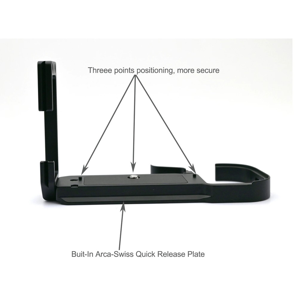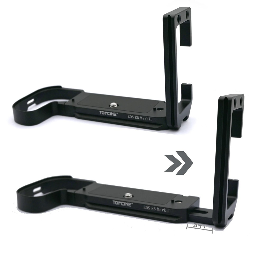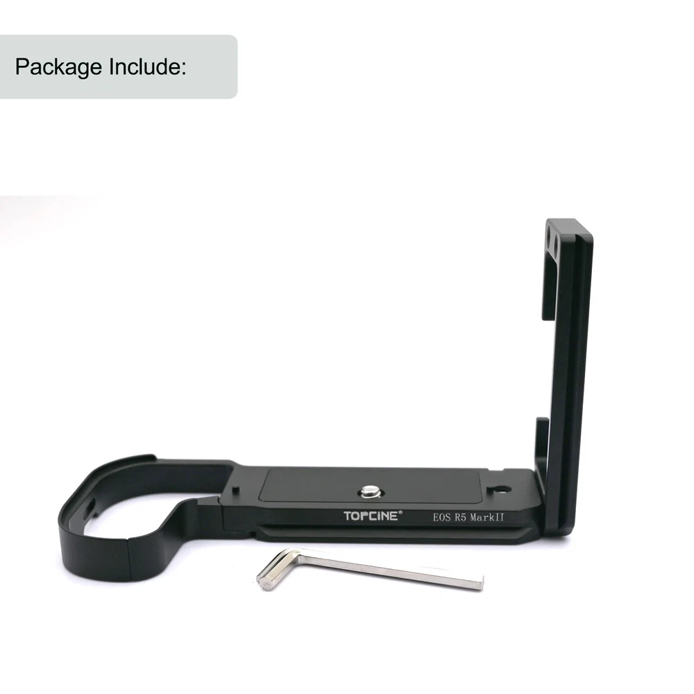 The EOS R5 Mark II Quick Release Vertical Arca Plate is designed for photographers who demand precision and versatility. This expertly crafted plate is tailored specifically for the EOS R5 Mark II, ensuring a perfect fit and seamless integration with your camera. Key Features: 1.Providing maximum stability and support while maintaining easy access to all camera functions. 2.Features a standard Arca-Swiss dovetail design, allowing for quick attachment to tripod heads and other accessories, making transitions between horizontal and vertical shooting effortless. 3.Made from high-quality aluminum materials, this plate is built to withstand the rigors of professional use while remaining lightweight and easy to carry. 4.Ergonomically designed for improved handling, ensuring a secure grip for comfortable shooting during long sessions. It includes multiple 1/4"-20 threaded holes for attaching additional accessories, such as external monitors or lights, giving you the flexibility to customize your setup. Whether you’re capturing stunning landscapes, dynamic portraits, or fast-paced action, this vertical Arca Plate is your essential companion for stable, precise, and creative photography.