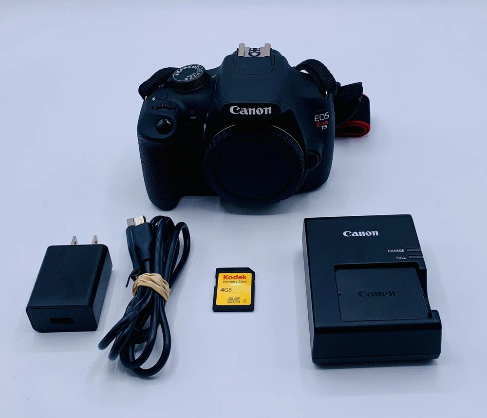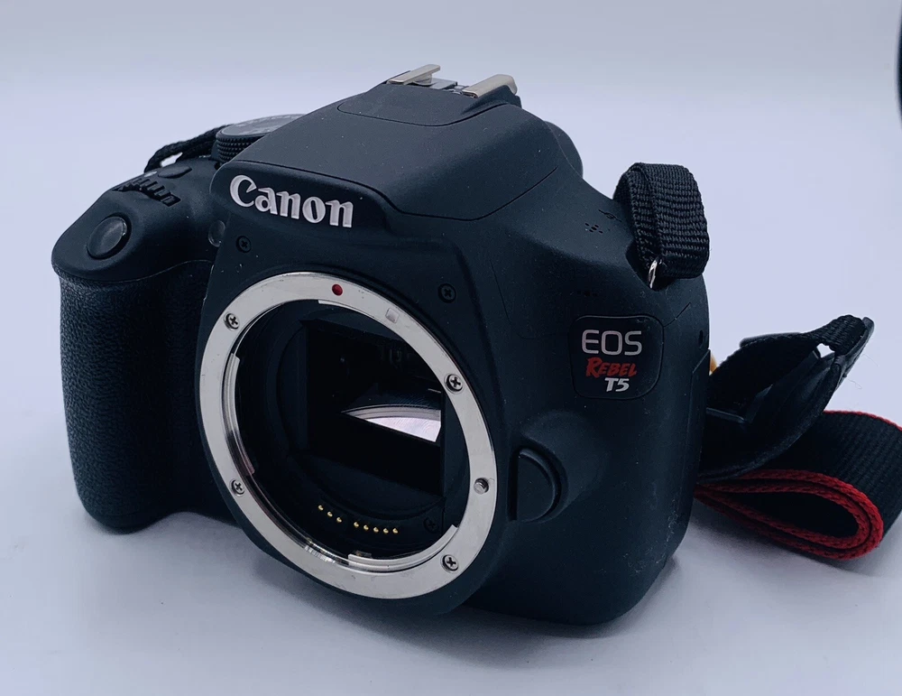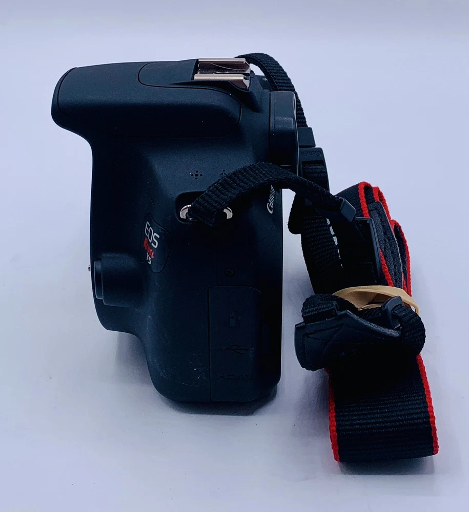 The Canon EOS Rebel T5 DSLR camera in black is a high-quality digital camera with a maximum resolution of 18.0 MP. It features a 3x optical zoom, 3-inch screen, and a lithium-ion battery. The camera includes various features such as interchangeable lenses, face detection, built-in flash, and 720p HD video recording capability. With a sleek black design and compact size, this Canon camera is ideal for photography enthusiasts looking for a versatile and reliable device for capturing high-quality images and videos.