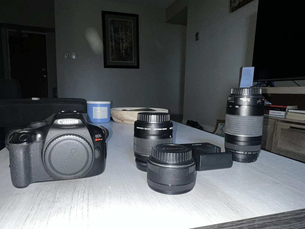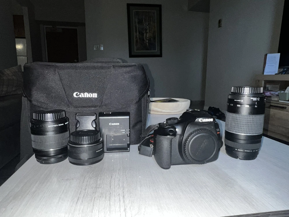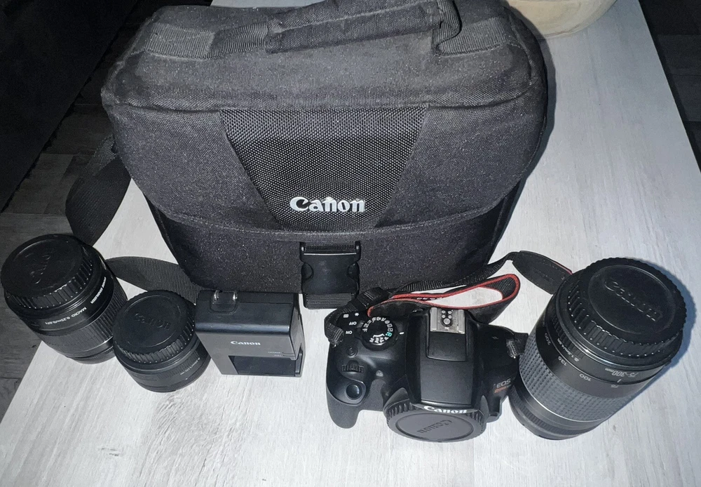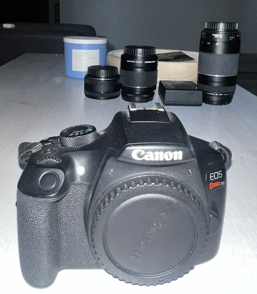 This listing is for a Canon EOS Rebel T6 DSLR Camera with an 18-55mm lens kit. Perfect for beginners or hobbyist photographers, this camera delivers excellent image quality and user-friendly features. It’s ready to capture stunning photos and videos right out of the box. Please note: the lens cap is not included. Condition: • The camera is in great working condition and has been tested. • There is minor wear consistent with regular use. • The lens functions perfectly but does not come with the protective lens cap (please see photos). Features: • 18MP APS-C CMOS sensor for sharp, high-quality images. • Full HD 1080p video recording. • Built-in Wi-Fi and NFC for easy sharing and remote control. • Includes an 18-55mm IS II lens for versatile shooting. • Intuitive controls and menu for ease of use. Included: • Canon EOS Rebel T6 DSLR Camera Body. • 18-55mm IS II Lens (no lens cap). • 128GB PNY Elite-X SD Card for ample storage. • Camera strap for easy carrying. • Rechargeable battery and charger (extras included). Not Included: • Original packaging or user manual.