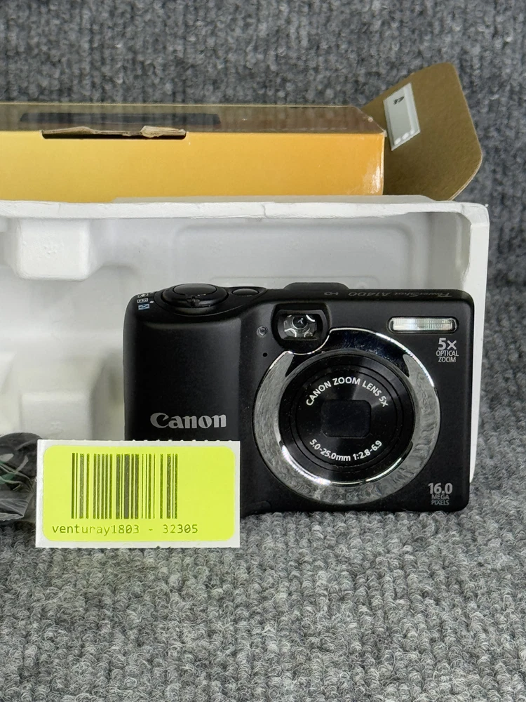 ๐ธ Canon PowerShot A1400 HD Camera - 16.0MP - 5x Optical Zoom - Black ๐ฅ Capture stunning photos and HD videos with the Canon PowerShot A1400 HD Camera . Featuring a 16.0MP sensor and 5x optical zoom, this camera is perfect for everyday photography. This unit is in excellent, almost like-new condition and comes with an 8GB SD card, original box, and user manual for a complete package. ๐น Key Features: Brand: Canon. Model: PowerShot A1400. Resolution: 16.0MP for sharp, high-quality images. Zoom: 5x optical zoom for detailed close-ups. Video: HD video recording for capturing memorable moments. Design: Compact and lightweight, easy to carry. Accessories Included: 8GB SD card, original box, and user manual. Condition: Used but in excellent condition; almost like new. ๐ฆ Condition Overview: This Canon PowerShot A1400 HD Camera is in used condition but has been well-maintained and is almost like new . The camera is fully functional and comes with an 8GB SD card, the original box, and user manual for a complete and convenient setup. Please review the photos for additional details on its condition. ๐๏ธ Why Choose the Canon PowerShot A1400? The Canon PowerShot A1400 offers a perfect combination of simplicity and quality. Its user-friendly design, powerful zoom, and HD recording capabilities make it ideal for capturing everyday moments. With its included accessories, this camera is ready for use or gifting. ๐ Shipping Information: Your Canon PowerShot A1400 will be securely packaged to ensure safe delivery. Fast and reliable shipping options are available for your convenience. ๐ Donโt Miss Out! Click "Buy It Now" to add this Canon PowerShot A1400 HD Camera with an 8GB SD card to your photography collection today!