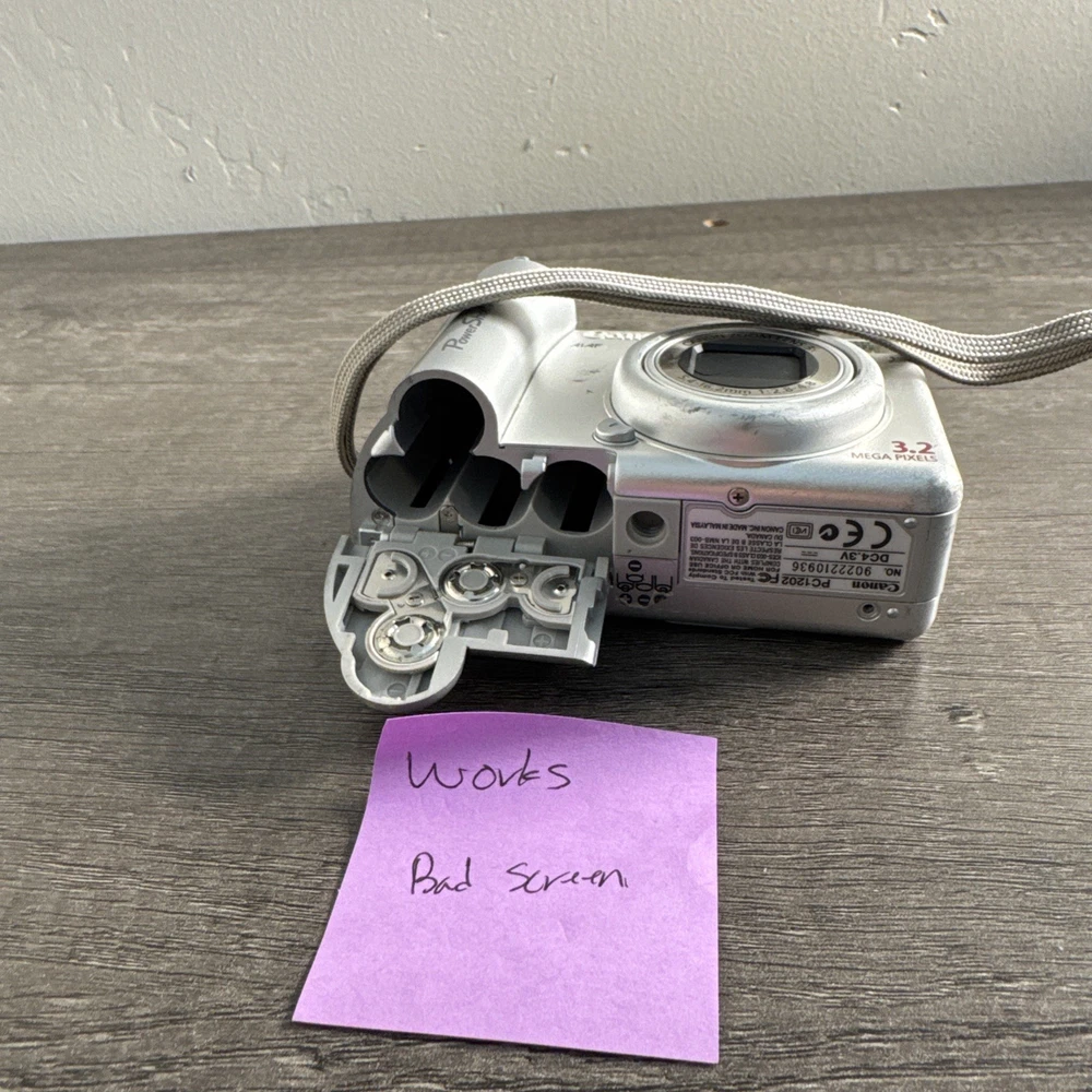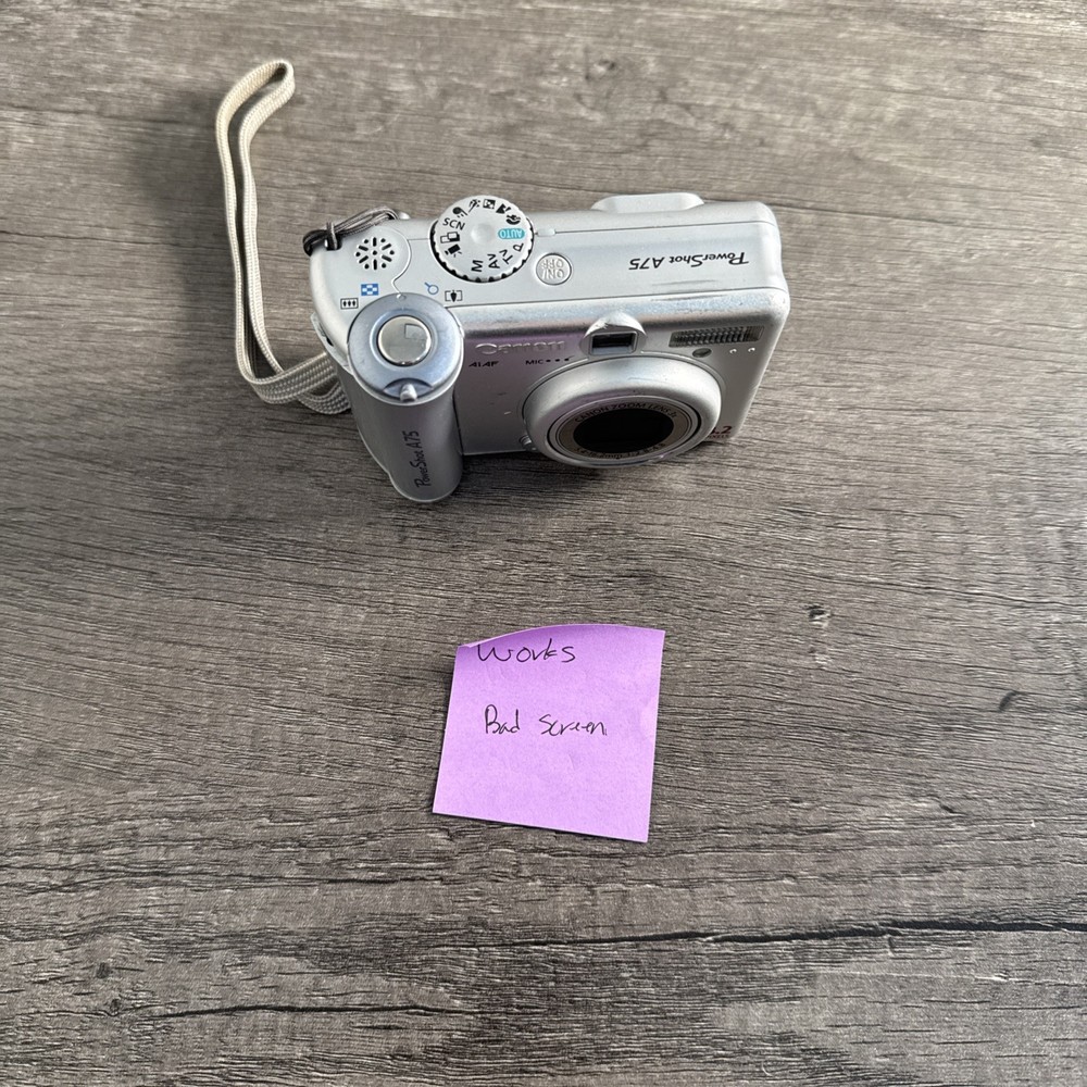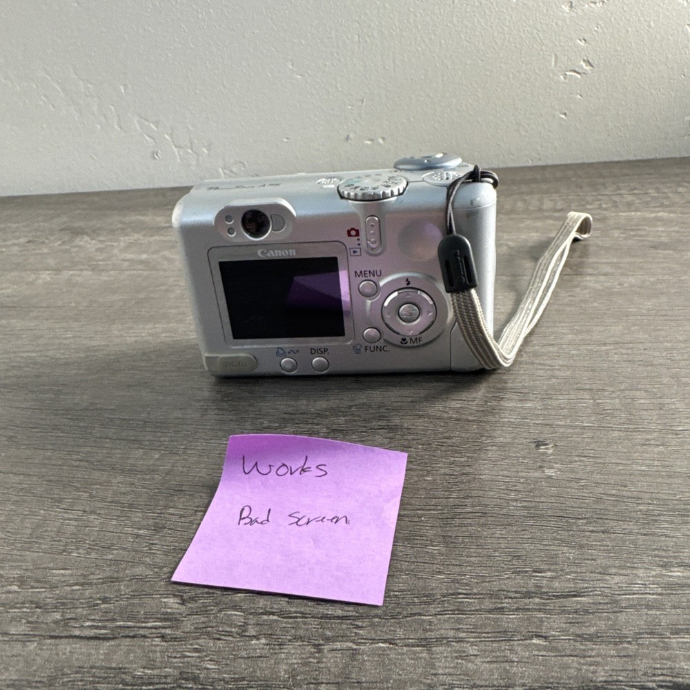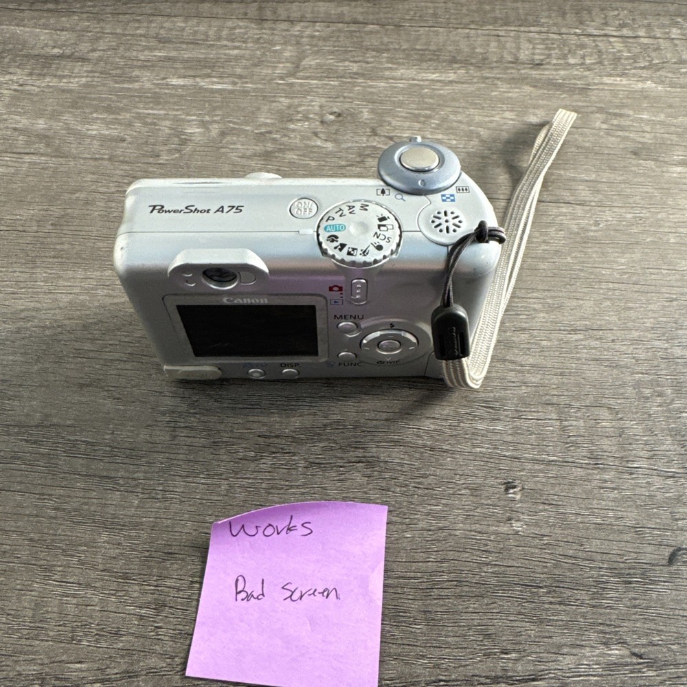 Canon PowerShot A75 3.2MP Digital Camera Silver 3x Optical Zoom WORKS BAD SCREEN
