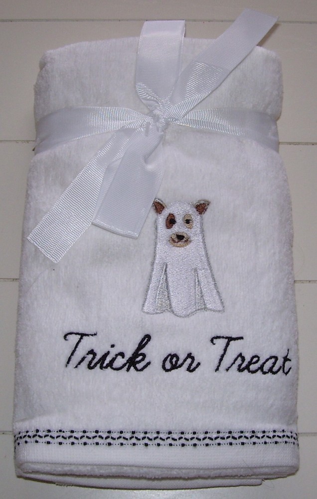 Canterbury Court Luxury Home Collection Set of 2 White Trick or Treat Dog in Ghost Costume Halloween Hand Towels. 100% Cotton. 16 in X 30 in. NEW. Smoke and Pet free home. Winning bidder to pay within 3 days listing end. Check out my other listings for more great deals! RETURN POLICY DETAILS Returns are accepted with prior approval ONLY if item is misrepresented in listing. You must contact me first before returning an item. I do NOT accept returns for buyer choosing the wrong size/item not fitting. There are NO returns/refunds on pageant and special occasion wear.
