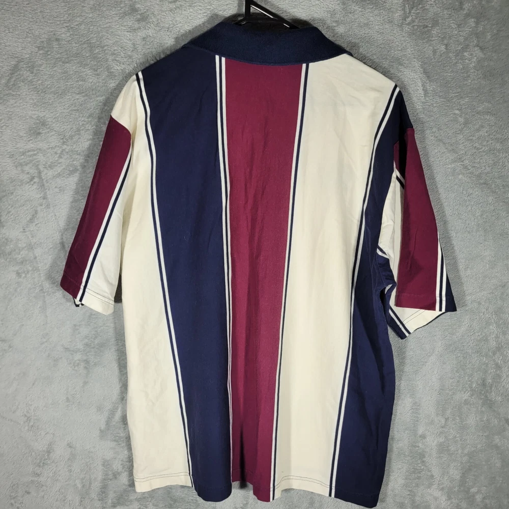 The Canterbury Men's Multicoloured Striped Collared Button Up Polo Shirt in size XXL is a versatile addition to any wardrobe. Made from 100% cotton jersey fabric, this shirt is machine washable and easy to care for. Featuring short sleeves, a button closure, and a classic wing collar, it is suitable for travel, parties, or casual wear. The shirt's vibrant multicoloured stripes, embroidered logo, and comfortable, lightweight design make it a stylish and practical choice for all seasons. Crafted in Australia, this Canterbury polo shirt is a classic piece with a modern twist. The double-sided fabric offers breathability and stretch for added comfort, while the preshrunk material ensures a perfect fit every time. Whether you're dressing up for a special occasion or keeping it casual, this button-up shirt is the perfect choice for the fashion-forward man who values both style and quality.