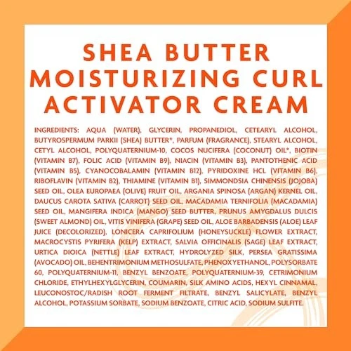 Cantu Shea Butter for Natural Hair Moisturizing Curl 12 Fl Oz, White Product Details 7 ESSENTIAL OILS: nourish hair with shea butter infused with 7 essential oils SMOOTH STYLE: define & add shine to natural curls, coils & waves GREAT FOR: Type 2 waves, Type 3 curls & Type 4 coils NO HARSH INGREDIENTS: formulated with no mineral oil, sulfates, parabens, silicones, phthalates, gluten, paraffin or propylene CRUELTY-FREE: absolutely no testing on animals It’s time to activate your waves, curls, coils, and twists with Cantu Shea Butter for Natural Hair Moisturizing Curl Activator Cream 12 oz. Elevate your curls with a shea butter formula infused with 7 essential oils that moisturize strands while defining your next style. The ideal formula for type 2 waves, type 3 curls, and type 4 coils. Use on damp hair and apply as needed so you can step out with confidence and shiny curls any time. We care for every curl, which means this cream was formulated with no mineral oil, sulfates, parabens, silicones, phthalates, gluten, paraffin or propylene. Since the beginning, you’ve pushed us to advance skin and hair science to honor your locs, your curls, your waves, your braids, your natural. At Cantu, we support your journey with care and we celebrate all the styles you rock!