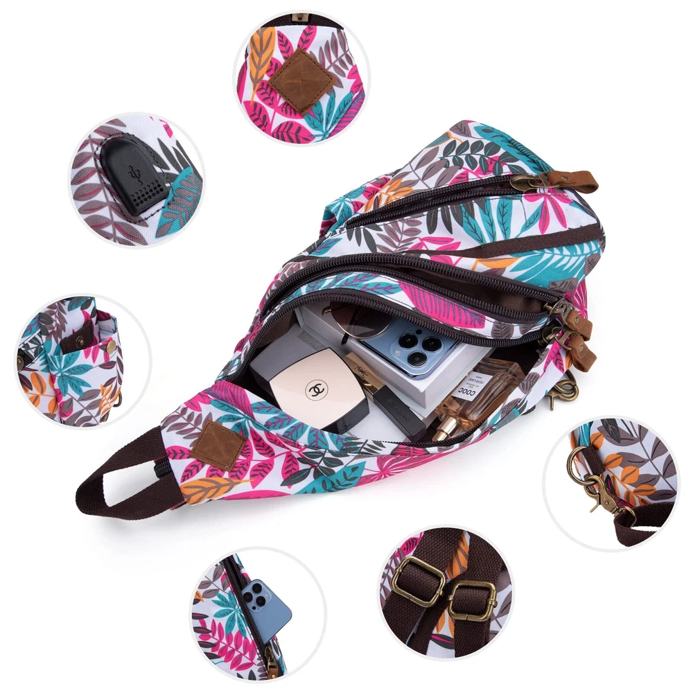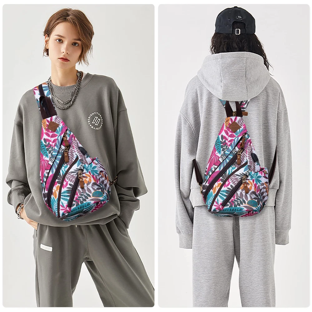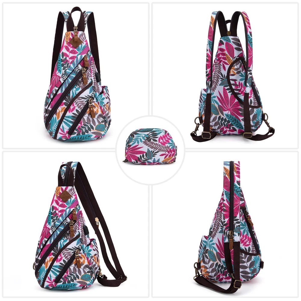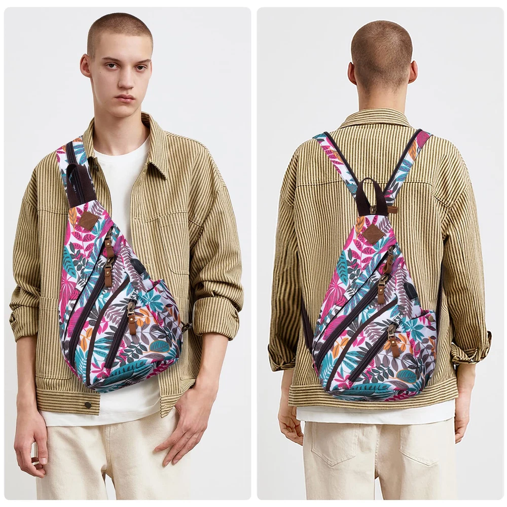 Material: canvas + imported leather Color: colorful stripes/retro colors/English army green/khaki Structure: main bag/side bag Purpose: Backpack, backpack, school bag A backpack that can be carried by both men and women The bottom of the cowhide edging is made of imported cowhide cowhide bottom, which will bring you a more perfect experience High quality: Multifunction sling backpack With the zippered andadjustable straps, this sling bag can be used as a small backpack, youcan also wear it as a chest bag, a crossbody bag, etc. Size: Multi-purpose canvas cross body bag has plenty of space forgadgets, books, cell phones, umbrellas, water bottles, makeup cases,etc. It's very light and portable. Pocket&Water Bottle holder: This shoulder casual daypack has oneeasy-reach hidden anti-theft pocket which for your phone and othefrequently-used small but important things. Lightweight Design: Made of durable, lightweight, water-resistantcanvas material with top-quality zippers and brass fittings, the smallcrossbody backpack dimension: 10 X 7 X 16 inches, weights 1.11lb. Easy to carry around. Elegant Appearance: Unique and elegant appearance makes you themost attractive person when you wear it to riding a bike, walking,hiking, dating or other outdoor activity. Washable material and easy to clean.