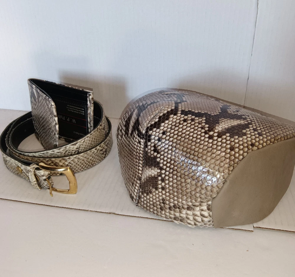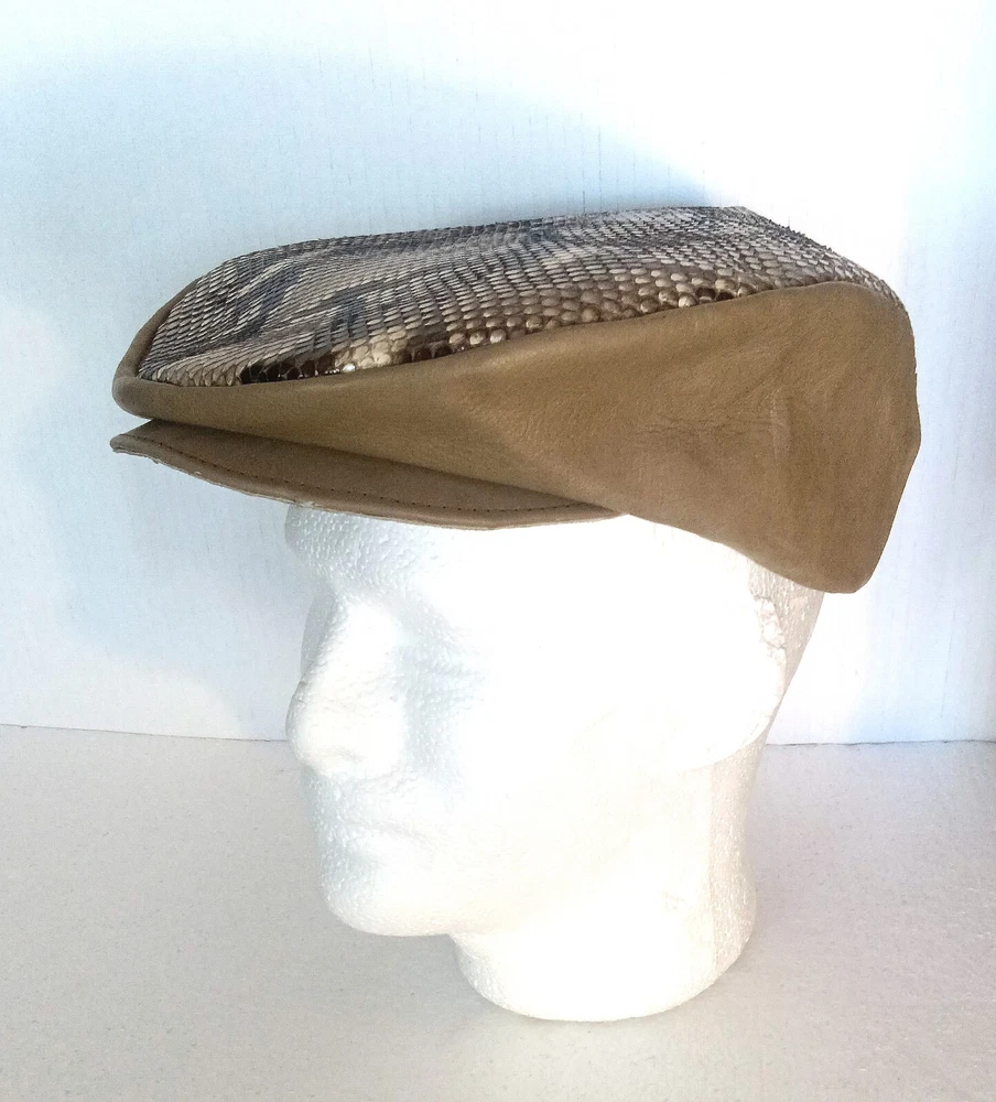 Elevate your style with this luxurious driver's cap from Pure Snakeskin Accessories. Crafted with high-quality beige leather and python skin, this cap is perfect for travel, casual outings, and formal events. The cap is designed to fit comfortably and features the brand's signature logo. This United States-made cap is a must-have for any fashion-forward man. It exudes sophistication and class, making it the perfect addition to any outfit. Whether you're dressing up or keeping it casual, this cap is sure to turn heads.