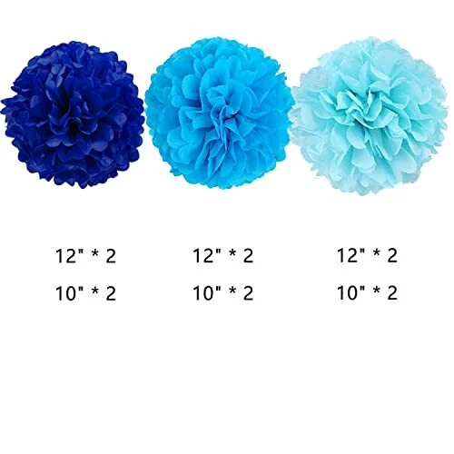 Return Policy Fast Delivery Trusted seller Capesaro Blue Paper Pom Poms - 10",12" Tissue Pom Poms Decorations for Baby Shower Boy Party Hanging Decor - 12 Piece Set Product Description TISSUE POM POMS DECORATION KIT:Great party decorations supplies, for wedding, birthday, baby shower, bridal shower, celebrations, valentine's, all kinds celebration and other theme parties Good quality materials: made of selected quality paper, bright colors.Each color has been carefully dyed to meet the latest color trends, giving an elegant, unique touch to your event Packed flat.Package includes: 3 color(Dark Blue,Royal blue,Lake Blue),4 Pieces of each color, each color with 2 different sizes(12inch, 10inch) Precut and folded, simply separate each pom pom paper layer and fluff. A hanging ribbon is included for each paper pom pom.It might be used for indoor and outdoor events, as photo backdrop, as room, table, or chair decoration, hung on ceilings, tents or trees Warning: This product is a paper product, Please keep away from flame and direct heat sources. For decorative use only. This is not a toy. Keep out of reach of children Shipping Returns Payment Shipping Shipping is FREE to all addresses other than APO/PO boxes in the lower 48 states. All our stock ships from US-based warehouses. Shipped via USPS or UPS (depending on location and package weight) Unless stated otherwise, all orders will ship within 24-72 hours of your payment being processed. Check our feedback to see the great reviews of FAST shipping we offer. Returns Seller does not accept returns Payment We currently accept payment via eBay managed payments only. Once payment is cleared, we will dispatch your shipment within 1-3 business days. Please refer to the "Shipping" tab for more information regarding shipping speed to your destination.