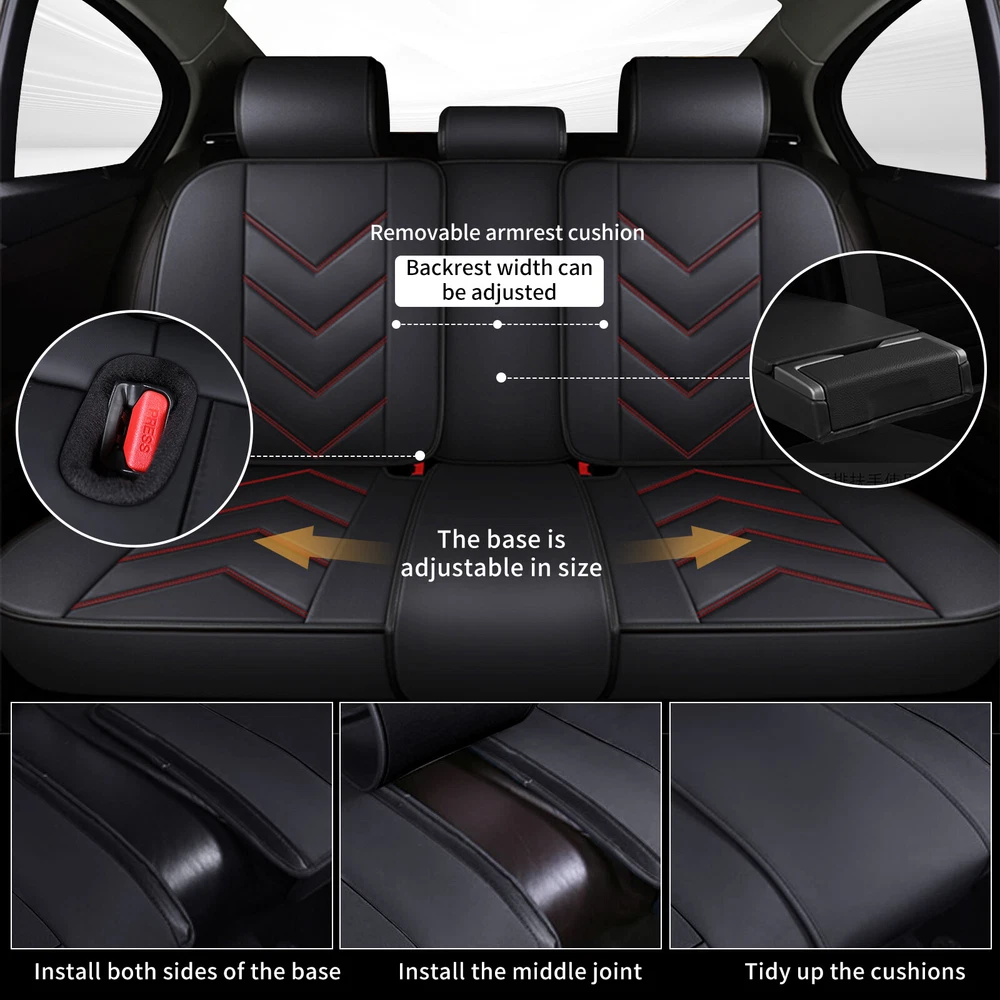 【Notice】 All the pictures have been professionally corrected, but due to the different ambient light and different display device settings, there may be some deviations in the pictures and items you see, please understand! 【Features】 1. We use a single-thread sewing process at the airbag mouth, ensuring that the airbags will do their job in an emergency. 2. We reserve a seat belt slot, which will not affect the use of the seat belt, ensuring your safety during driving. 3. Fixed by high-quality materials, the seat covers are firm and doesn't shift easily.The installation is convenient and simple. 4. The seat covers protect the seat from splashes, stains, pet hair and harmful ultraviolet rays. 5. The backrest has a pocket design, which can hold small things and magazines. 【Specification】 Product Type:Seat Cover Color:Black+Redline Material:Faux Leather Fitment: Fit For Nissan Murano 2011-2024 【Package Include】 2 Front Seat Covers 1 Set of Rear Seat Covers 1 Bag of Accessories for Installation On Nov 22, 2024 at 15:07:13 PST, seller added the following information: