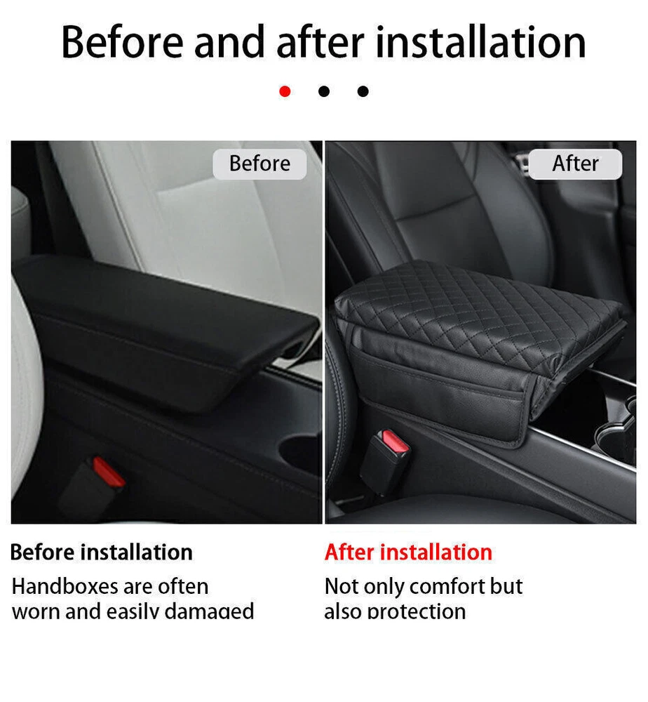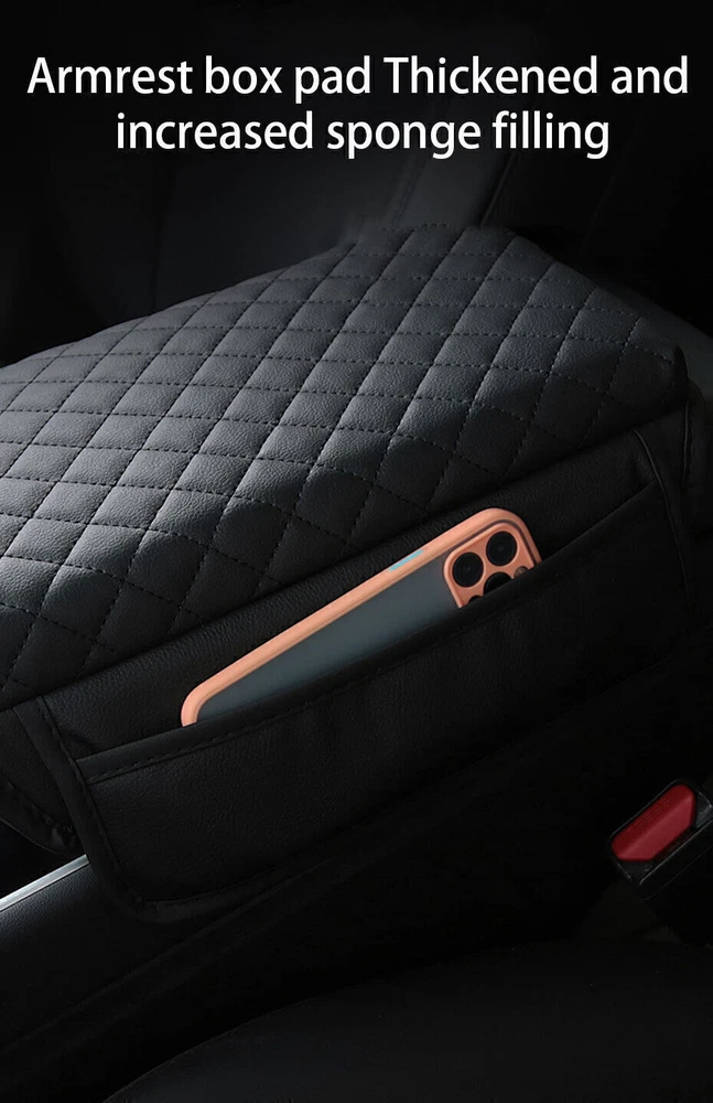 Car Armrest Cushion Elbow Support Cushion Arm Rest Box Pad with Both Side Storage Bag Inteiror Accessory Name: Car armrest box pad Material: Leather Installation mode: Direct installation Style: with storage bag Size: 35(L)*20(W)*3.5(H)CM/13.78(L)*7.87(W)*1.38(H)in Applicable model: Armrest box Width 16-24cm Package: 1PCS Note:Please check the size with your car armrest before buying Feature: 1. The central armrest box cushion is filled with thickened sponge, which is soft and comfortable. 2. Protect the leather of the car and prevent scratching and abrasion. 3. Adopt 3D scanning data to open the mold and fit with the vehicle. 4. Environmentally friendly leather material, waterproof and easy to clean, fashionable and beautiful. 5. Upgrade the side pockets, and the mobile phones, wallets, cards, etc. can be conveniently placed.