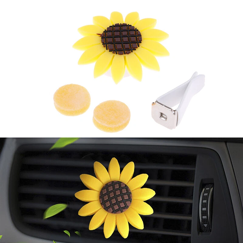 Description: Brand: 100% New and high quality! Material: Rubber Pattern: Sunflower Feature: Cute, High Quality Car Decoration: Auto Decoration Car Accessory: Outlet Fragrance Clip Free Gift: 2 Aroma Cotton For Free Features: 1.This cute and fashionable sunflowers air vent accessories will make every trip more enjoyable, by bringing color, positive vibes and a fresh, delightful scent to your ride.The best thing about it is that, after the included essence will end, you can pour any other perfume on the cotton pad, while keeping the sun flower accessory as a permanent decoration in your car. 2.Contains 1 sunflowers air vent decoration and comes with 2 fragrance cotton pad. 3.The clip is very resistant and easy to use, by just attaching it to your car vent. It will stick just perfectly, without falling during bumps. 4.The sunflower car accessory is for sure the perfect gift, which any driver will definitely enjoy. Its great quality, classy design, beautiful smell and joyfull colour will embelish the interior of any car. 5.How to use: Open the package, flip up the container, attach to your car vent by cliping and gently pushing it and you're ready to go. Package includes: 1x sunflowers air vent Freshener 2 x fragrance cotton pad Notes: 1. Due to the different monitor and light effect, the actual color of the item might be slightly different from the color showed on the pictures. Thank you! 2. Please allow 1-3mm measuring deviation due to manual measurement. Preview: