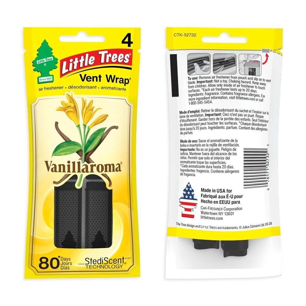UPC: Does not apply Type: Does not apply Weight: 0.15 Pounds Color: Vanillaroma Brand: LITTLE TREES Model: Does not apply Size: 4 Count (Pack of 4) MPN: Does not apply Package Dimensions LxWxH: 7.28x4.09x1.61 Inches gtin13: Does not apply