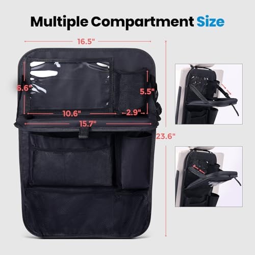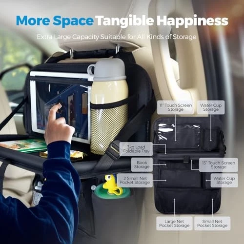 30 Days Return Policy Fast Delivery Trusted seller Car Backseat Organizer with Tablet Holder,9 Storage Pockets Foldable Table Tray Seat Back Protectors Kick Mats -600D Oxford 2 Pck Product Description 【 BACKSEAT ORGANIZER】Our car backseat organizer provides ample space for all your essentials with dimensions of 23.6*16.5*1.9inch when unfolded. Featuring a convenient tray, internal transparent bag, three-dimensional pockets, high-density mesh pockets, and touch screen transparent PVC pockets, it's designed to keep your belongings neatly organized on the go. 【DURABLE & EASY TO CLEAN】Crafted from high-quality 600D Oxford cloth, our organizer offers durability and wear-resistance. The reinforced design ensures longevity, making it an ideal choice for families with active lifestyles. The waterproof and breathable material is easy to clean, providing anti-kick protection to keep your car interior looking pristine. 【18KG LOAD-BEARING CAPACITY】With a remarkable load-bearing capacity of up to 18KG per unit and 3KG for the pallet, our backseat organizer is perfect for carrying a variety of items, from snacks and toys to electronic devices. The adjustable tray support strap, extending up to 150cm, adds extra stability, making it a reliable solution for your travel needs. 【THREE-STEP INSTALLATION】The organizer comes equipped with a buckle, pallet support belt, bottom hooks, and bottom straps to ensure a secure fit in your car. The installation is pretty easy, only takes less than 5 minutes to finish. And it's very easy to clean it up just with a cleaning cloth. 【AFTER-SALES SERVICES】 wants you to be absolutely happy with our car back seat organizer. You will get 100% customer support for this car organizer. For better shopping experience, if you have any questions, please feel free to contact us. Order with no worries! Shipping Returns Payment Shipping Shipping is FREE to all addresses other than APO/PO boxes in the lower 48 states. All our stock ships from US-based warehouses. Shipped via USPS or UPS (depending on location and package weight) Unless stated otherwise, all orders will ship within 24-72 hours of your payment being processed. Check our feedback to see the great reviews of FAST shipping we offer. Returns As our valued customer, we will do our best to make sure the product you receive arrives to you on time and as expected. If you are not satisfied with your purchase, please contact us within 30 days of receiving your order to process a return. Payment We currently accept payment via eBay managed payments only. Once payment is cleared, we will dispatch your shipment within 1-3 business days. Please refer to the "Shipping" tab for more information regarding shipping speed to your destination.