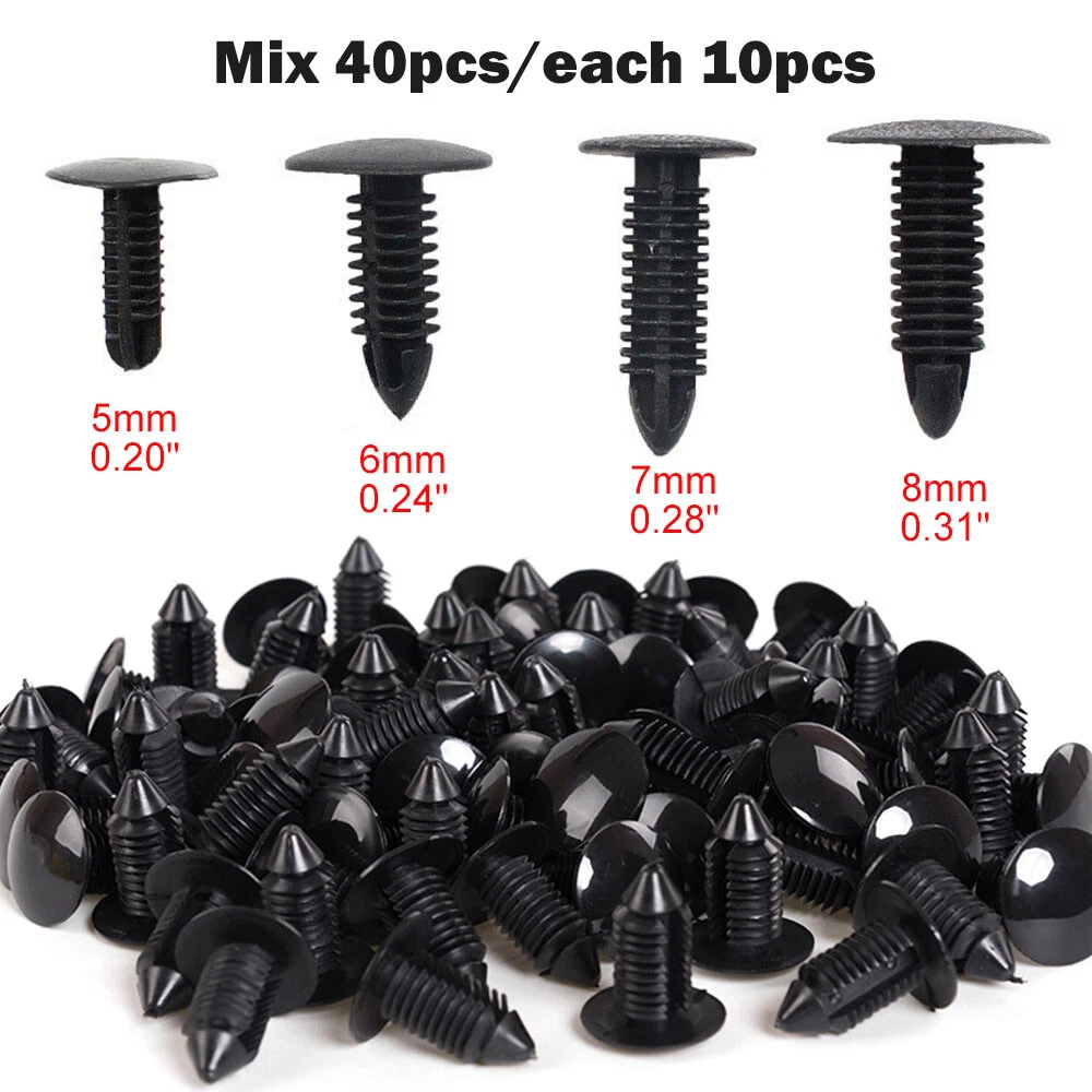 Car Body Push Pin Rivets Trim Panel Fastener Clip Moulding Assortment For 5-8mm Features: Size:As the picture shown Fits Hole: For 5mm 6mm 7mm 8mm Colour: Black. Material: Nylon. Quantity:40pcs Package List: 40pcs Fender & Bumper Shield Retainer Payment Delivery details Terms of sales About us Contact us Payment - We accept the payment through Payoneer only. - Payment must be fulfilled within 7 days after the end of auction. - Please make sure your Payoneer and ebay address is correct. Or not, please correct it before payment. - If you are a big customer, Please contact with us about the item's PRICE and SHIPPING. - Your feedback & suggestion is deeply appreciated, thanks. Delivery details All orders will be shipped out during our handling time after receiving payment. Please provide right detail address (include house number,Street name) to us in order to you ship the order to you as soon as possible! If you want ship the items by other way, please feel free to contact us. Thanks Terms of sales 1.You have 7 days to contact us and 30 days to return it from the date it was received. If this item is in your possession more than 7 days,it is considered used and WE WILL NOT ISSUE YOU A REFUND OR REPLACEMENT. There are NO EXCEPTIONS! 2. All returned items MUST BE in the original packaging and you MUST PROVIDE us with the shipping tracking number, specific reason for the return, and your eBay ID. 3. We will refund YOUR FULL WINNING BID AMOUNT, upon receipt of the item in its original condition and packaging with all components and accessories included,AFTER BOTH Buyer and Seller cancel the transaction from eBay. OR, you may choose to have a replacement. 4. Return shipping is to be paid by the Buyer. About us High quality product quality is our aim. Satisfying you is our happiest job. Therefore, we will try our best to provide you with the best products and services according to your requirements and deliver them on time. If we do not make enough improvements or need improvement, please send us an email suggestion. If you like our products and services, please provide us with positive feedback in advance so that we have more confidence and more opportunities to serve more client. Contact us 1. We greatly appreciate your POSITIVE feedback. 2. Negative or Neutral feedback does not resolve any underlying issues that you may be experiencing as a buyer. 3. Any question or unsatisfaction please contact us with ebay message, we will sincerely solve for you. Our Working Time is (GMT+8): 8:00AM -- 5:00PM (Monday to Friday)
