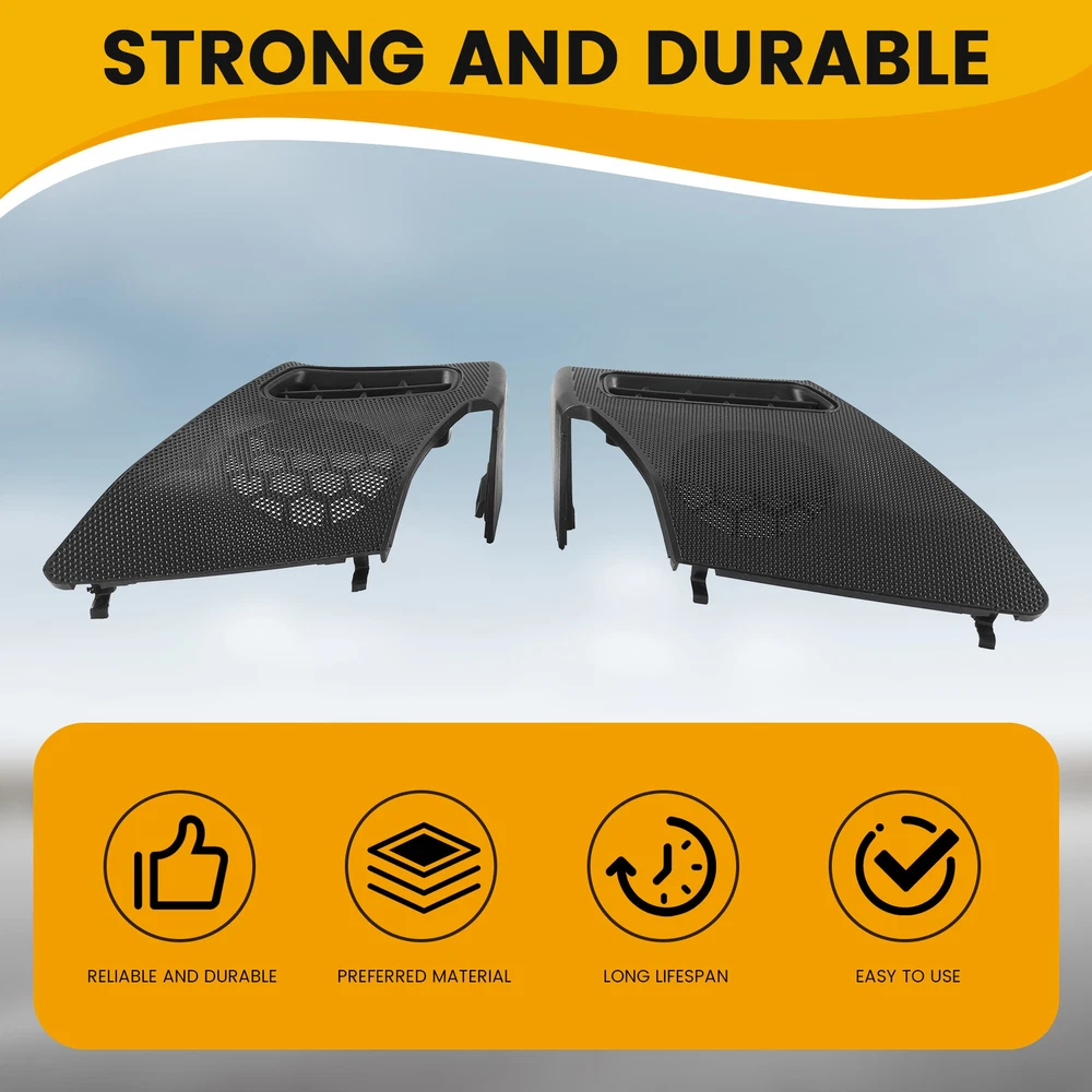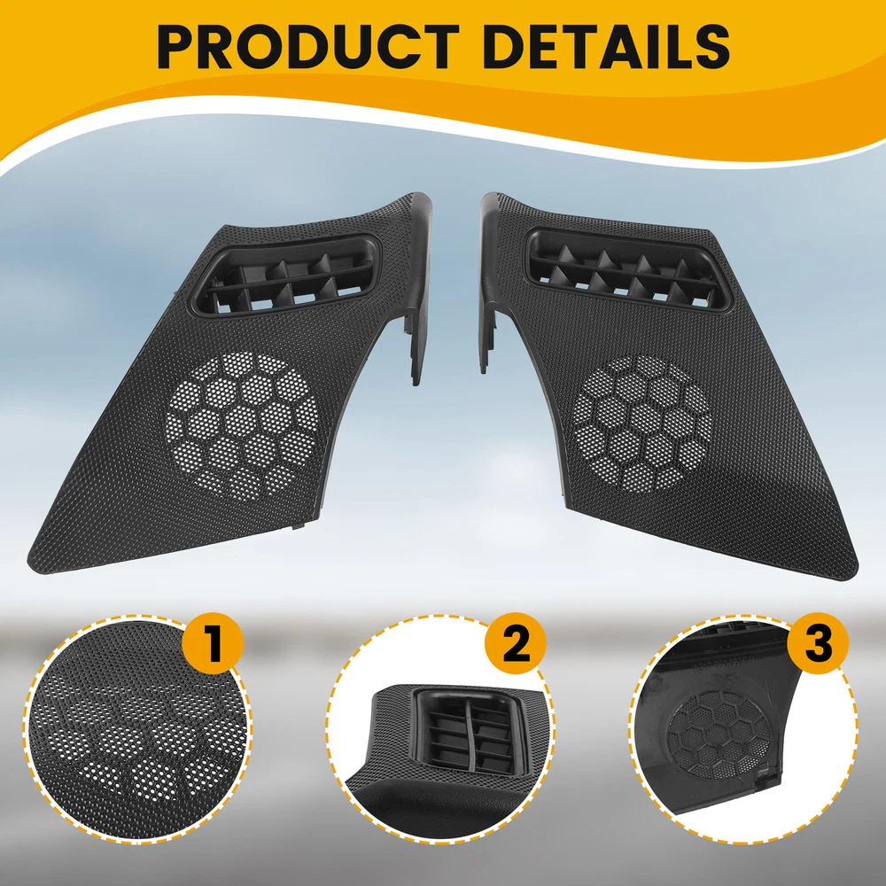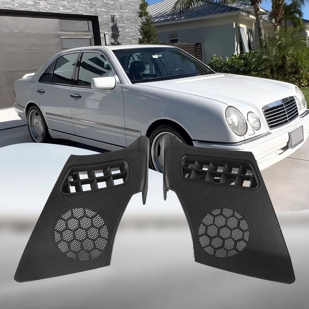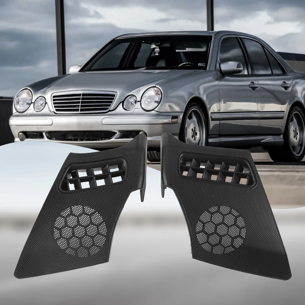 Car Dash Board R+L Side Air Vent Speaker Grill Cover for W2107571 , never been used. Easy to install and in use. Great quality and great fit. Direct Replacement Correct connector without cutting or splicing. quality control standards to build and test. Item Type:Dash Board Side Air Vent Speaker Grill Cover Part Number: A2106800539,A2106800639 Fitment: For W210 E-CLASS E320 E430 E55 1996-2002 colour:Black Material:ABS Package Contents: 2 x Speaker Grill Cover(L+R)