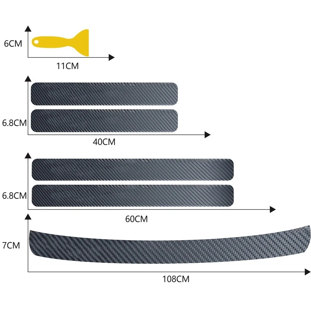 Product Description 4PCS Car Door Sill Anti Kick Stickers Scuff Anti Scratch 3D Carbon Fiber Auto Door Sticker +Rear Guard Plate Sticker Add our listing to Watchlist Or Add to Cart , you will get more discount Specifications: Material: 3D Carbon Fiber Color: Black Front Door Sticker Size: 60cm x 6.7cm / 23.6 x 2.6 inch Rear Door Sticker Size: 40cm x 6.7cm / 15.7 x 2.6 inch Rear Guard Plate Sticker: 108cmx7cm Function: Anti Scratch Occasion: Cars Product Type: Car Protect Stickers Features: Waterproof, easy to care. Installation is simple, convenient and fast. Protect your car so as not to be scratched. Applicable to most cars and can be cut. Package Content: 2 Pcs x Front Door Stickers, 2 Pcs x Rear Door Stickers Note: Due to the difference between different monitors, the picture may not reflect the actual color of the item. Package included: 2 Pcs x Front Door Stickers 2 Pcs x Rear Door Stickers 1 Pcsx Rear Guard Plate Sticker Note: Pictures are for reference only. The actual product shall prevail. Your satisfaction is our utmost concern. Please contact us to better resolve any issues before leaving a neutral or negative feedback. Thanks a lot! Payment Returns Contact Us Shipping We accept payment by PayPal only ! Payment should be completed within 5 days after buyer places the order,or else an unpaid case will be opened in order to cancel the transaction. If you can not pay in time, please contact us. e-check from PayPal will only be processed once the payment clears. All of the items will be shipped to buyer's EBAY address,please confirm your address on Ebay before you buy.Your order will be usually shipped out the same or next business days once the payment is made and cleared. 30-day Warranty with Exchange for defective, malfunctioned, incorrect or parts-missing items. Please notify us and return the item with all parts and accessories packed and marked "FOR EXCHANGE" within 14 days of receipt. If defective, malfunctioned or parts-missing items are no longer available, a refund may be issued. All returning postage costs will be the responsibility of the buyers under all circumstances. If you encounter any problems about anything, please feel free to contact us and we will do our best to assist you solve the issue. If you are not satisfied in anyway, please feel free to let us know and give us a second chance to correct it before you decide to leave any neutral or negative feedback. Please contact us through eBay link if you have any questions. We will reply you within 24- 48 hours. Please check you spam mail if no response for 48 hours. All items will be checked before packing. All items are new and of high quality. Item will be shipped within 1 business days upon receipt of payment, excluding weekends and public holidays. If to USA,we will ship your order by USPS,it will take about 8-12 working days to you,and you can track it on line. If to other country,we will ship your order by China Post or Singapore Registered Air Mail,it will take about 14-21 working days to you,you aslo can track it on line. Delivery time is about 14-28 business days and it may take up to 8 weeks . Payment We accept payment by PayPal only ! Payment should be completed within 7 days after buyer places the order,or else an unpaid case will be opened in order to cancel the transaction. If you can not pay in time, please contact us. eCHECK from PayPal will only be processed once the payment clears. All of the items will be shipped to buyer's EBAY address,please confirm your address on Ebay before you buy.Your order will be usually shipped out the same or next business days once the payment is made and cleared. Returns 30-day Warranty with Exchange for defective, malfunctioned, incorrect or parts-missing items. Please notify us and return the item with all parts and accessories packed and marked "FOR EXCHANGE" within 14 days of receipt. If defective, malfunctioned or parts-missing items are no longer available, a refund may be issued. All returning postage costs will be the responsibility of the buyers under all circumstances. Contact Us If you encounter any problems about anything, please feel free to contact us and we will do our best to assist you solve the issue. If you are not satisfied in anyway, please feel free to let us know and give us a second chance to correct it before you decide to leave any neutral or negative feedback. Please contact us through eBay link if you have any questions. We will reply you within 24- 48 hours. Please check you spam mail if no response for 48 hours. Shipping All items will be checked before packing. All items are new and of high quality. Item will be shipped within 1 business days upon receipt of payment, excluding weekends and public holidays. If to USA,we will ship your order by USPS,it will take about 7-10 working days to you,and you can track it on line. If to other country,we will ship your order by China Post or Singapore Registered Air Mail,it will take about 14-21 working days to you,you aslo can track it on line. Delivery time is about 14-28 business days and it may take up to 8 weeks . Welcome to our Store ~