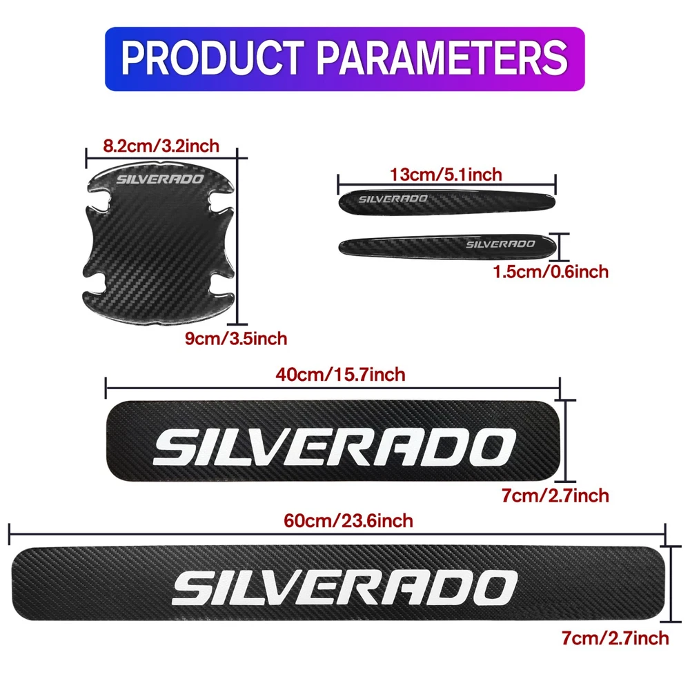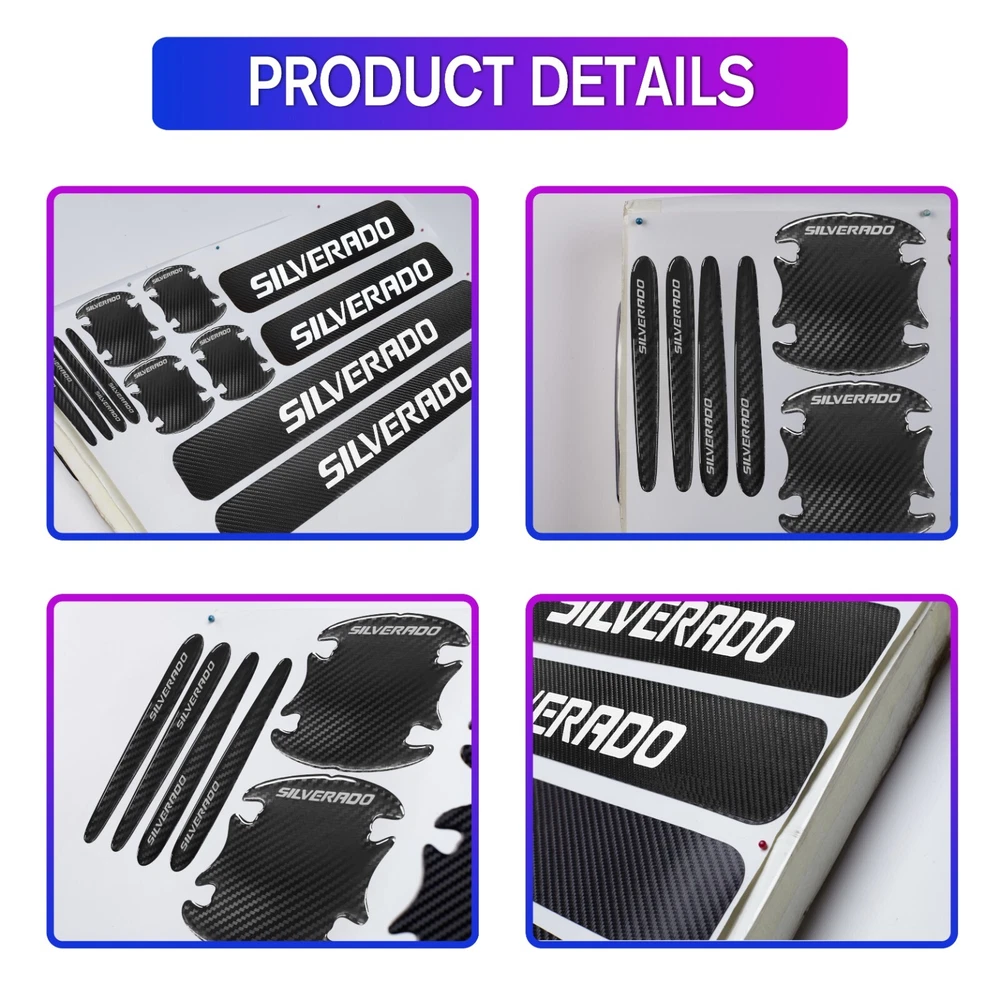 Type: Door Brand: Unbranded Color: Black&White Fit for: For Chevrolet Silverado Features: Easy Installation, Heat Resistant, No Drilling Required, Self-Adhesive, Waterproof Universal Fitment: Yes Finish: Matte Material: Carbon Fiber Texture Placement on Vehicle: Left, Right Attachment Type: Adhesive
