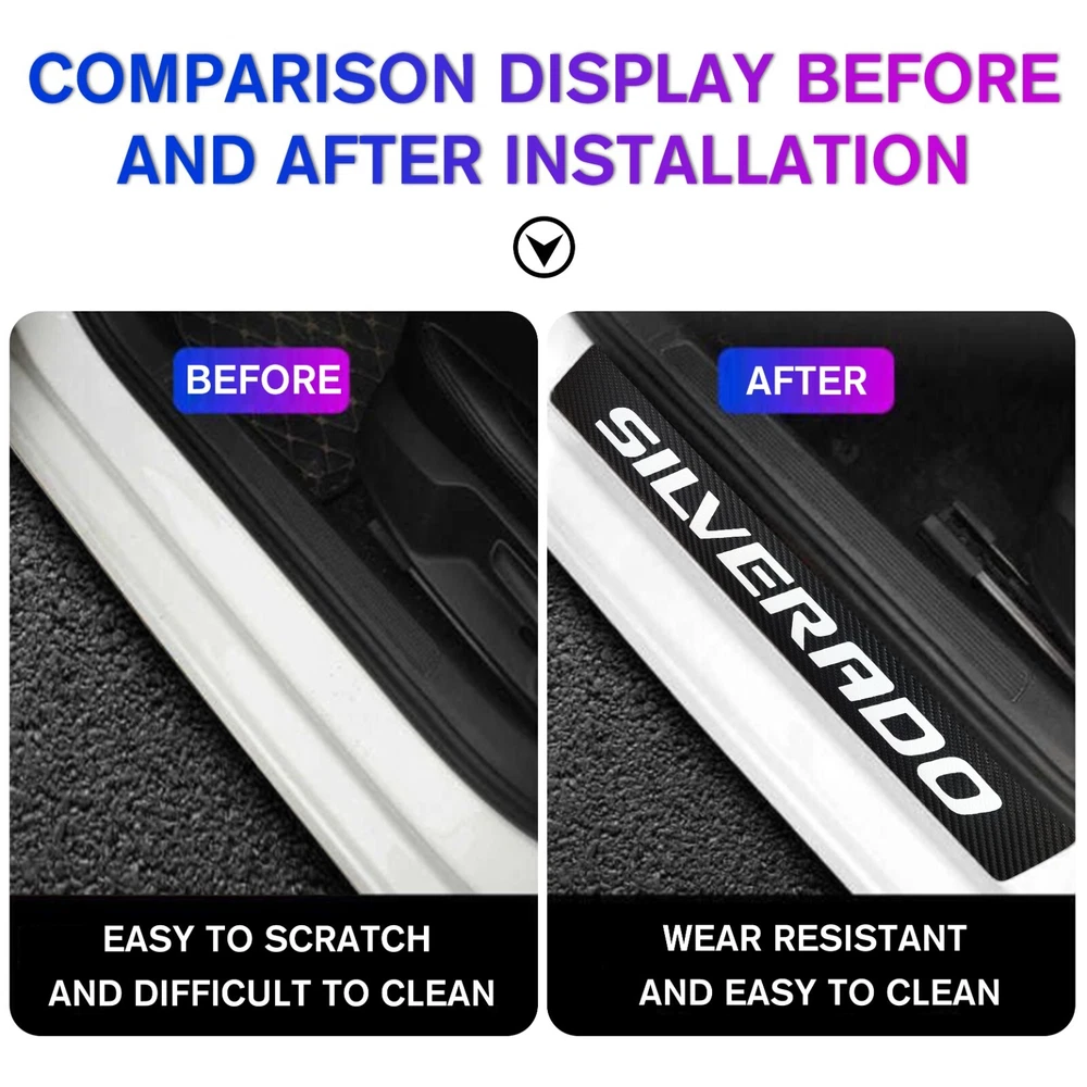 Car Door Sill Scuff Plate Cover Anti Scratch Stickers Protector For Silverado