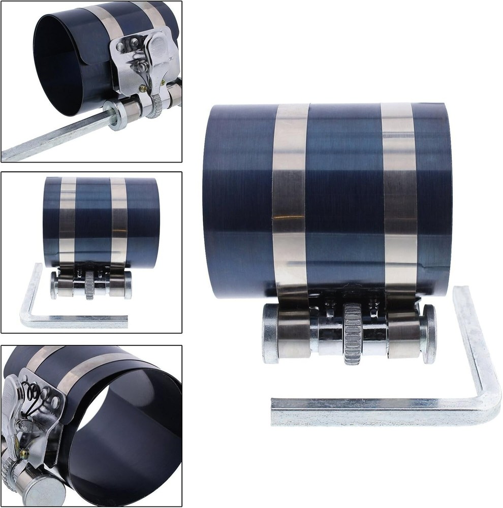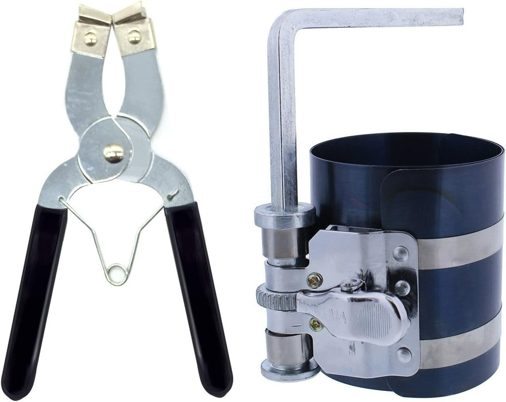 Car Engine Piston Ring Installer Removal Kit - Piston Ring Compressor 2 /8" to 7" & Adjustable Piston Installer Plier Use to install pistons on most passenger cars Band Diameter Sizes: 2-/8" to 7" (53mm - 75mm) Piston Installer Plier for use on the most common piston and ring diameters ranging in thickness from 3/64-inch to /4-inch ( to Positive compression and adjustable friction brake Professional installation recommend Feature: Material: Carbon Steel (Plier) / Strong Spring Steel (Compressor) Finish: Nickel plated Plier Total length: 7cm/" Range: .2 - - " Compressor Height: 3''(75mm) Compressor Fits Size: 2-/8" to 7" (53mm - 75mm) Packaged included: * Piston Ring Plier * Piston Ring Compressor * Wrench