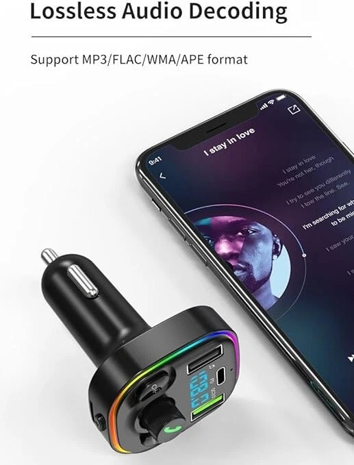 Colorful Atmosphere Lights Enhance your driving experience with this car Bluetooth adapter featuring customizable seven-color ambient lighting. Perfect for adding a dynamic touch to your night drives, simply switch off the lighting if it's not to your liking. One Button For Hands -free Calls For driving safety, this bluetooth transmitter features a one-touch phone answering function, allowing you to easily answer incoming calls by pressing a button. Unrivaled Charging Efficiency This car bluetooth adapter supports super-fast charging, with a maximum charging efficiency of PD20W, providing lightning-fast charging speeds to alleviate any concerns about device battery life.