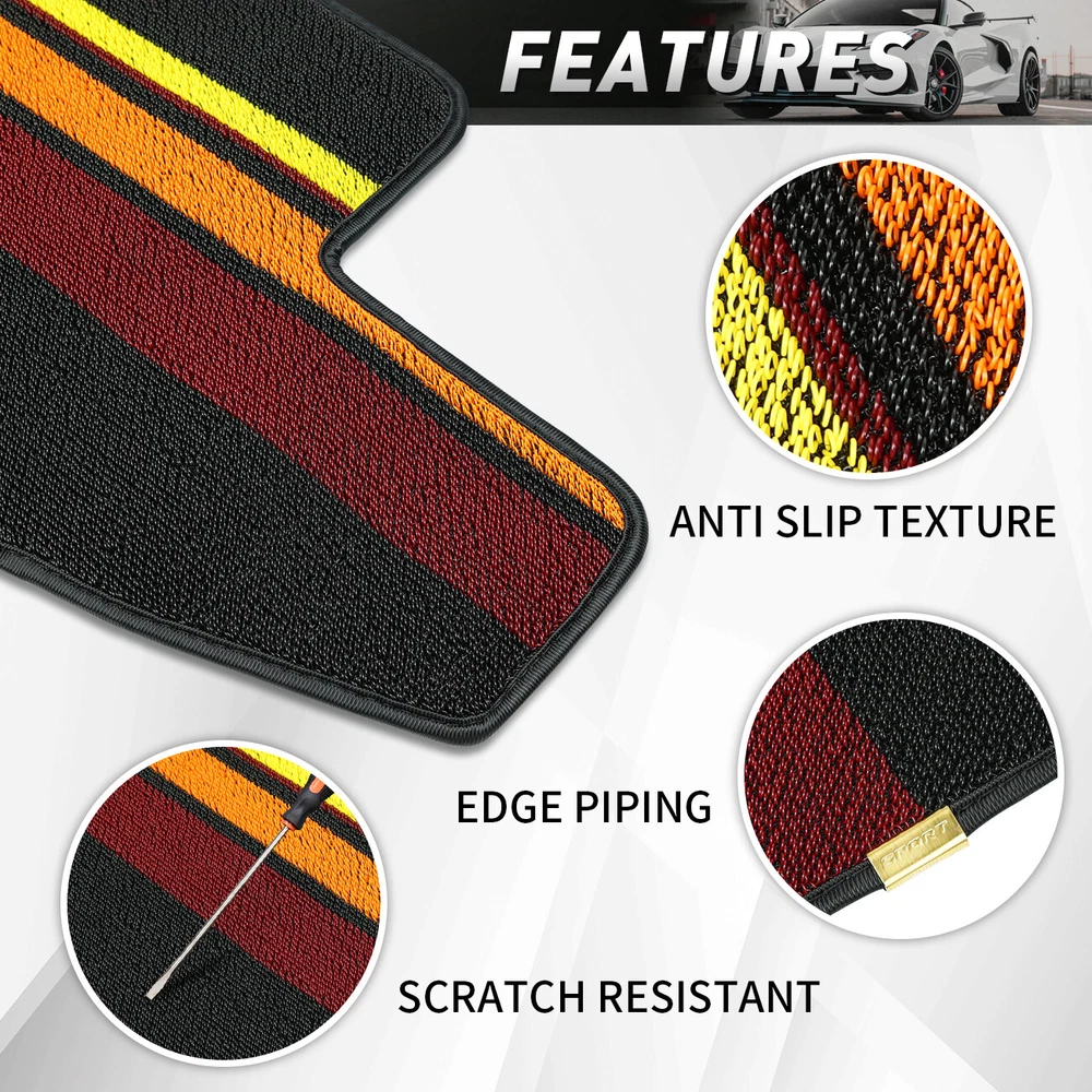 Car Floor Mats Floor Carpet Fit for Corvette C8 Z51 Z06 Stingray Coupe 2020-2024 Features 【Fitment】These floor pads have been specially designed and cut to fit for Corvette C8 Coupe 2020, 2021, 2022, 2023, 2024, and are easy to install. 【Material】The mat is meticulously crafted from high-strength polyester filament, featuring a sophisticated anti-slip texture on its underside to ensure a steadfast installation within your vehicle. The harmonious fusion of three striped colors not only accentuates the aesthetic allure of your car interior but also adds a captivating charm, transforming it into a visual delight. 【Function】Whether you're embarking on a starlit camping adventure, or exploring the rugged terrain off-road, these mats serve as a vigilant guardian, effectively shielding your car floor from the soil, sand, rainwater, snowflakes, and dust clinging to your shoe soles. 【Features】Cleaning these mats is a hassle-free experience – simply disassemble them and rinse with water to swiftly eliminate any accidental spills, liquids, debris, or stains. 【Installation】The carpet is easy to install and remove, perfectly matching the original car. Just replace it directly. No modifications are required. Specification Condition: New Colour: Black Material: High-Strength Polyester Filament Fitment For Corvette C8 Coupe 2020-2024 Package Included 2X Floor Mats Declaration ⭐ This item is not a licensed Honda/Yamaha/Suzuki/Polaris/Can Am/Kawasaki/Arctic Cat/Jeep/Kymco/John Deere Gator/Bobcat/Mercedes Benz/BMW/Porsche/Toyota/Dodge/Harley Davidson/ product . ⭐ We do not claim ownership and have no affiliation with above-mentioned brands, copyrights and trademarks belong to the respective owners. ⭐ Unless specifically identified as such, our use of third party trademarks does not indicate any relationship, sponsorship, or endorsement between us and above-mentioned brands. ⭐ Any references by us (or company name) (or the seller) to third party trademarks is to identify the corresponding third party's goods and shall be considered nominative fair use under the trademark law. Payment ⭐ We accept credit, debit,discover Visa and PayPal,among other locally accepted forms of payment. ⭐ Please pay as soon as possible after odering , as that we can ship your item to you sooner! ⭐ Refund will be issue back to the account which paid from,please be know that. Delivery details ⭐ We offer FREE shipping on all orders!And offer world wide Shipping . ⭐ We ship within Three business days of payment, usually sooner .(work off on weekend and Holidays). ⭐ Delivery is typically within 8-21 days,the delivery date varies by shipping destinations, and may take a little longer during holiday peak season or encounter force majeure. Returns Accepted ⭐ This product comes with 30-day returns or replacment . ⭐ If the item is be damaged, defective, or not as described in the listing, We will provide you with a replacement or a full refund. ⭐ Any product you return must be in the same condition you received it and in the original packaging. Please keep the receipt. Quality Assurance ⭐ If you are satisfied with our item,could you kindly give us 5 stars feedback?Thanks a lot. ⭐ If there are any problems when you received the package, please feel free to message us, we will definitely give you a satisfying solution , please don't leave neutral or negative feedback without any communication.Thank you for your cooperation! Contact US ⭐ We are manufactuer ,the warehouse was located in US/China ,DO NOT worry about the shipping time. ⭐ Customer satisfaction is very important to us. ⭐ If you meet any question,Please do not hesitate to contact us via eBay message,we will reply you ASAP. ⭐ Our Working Time: 8 pm - 5 am(From Monday to Saturday,Not working on statutory holidays) . QUALITY AUTO PARTS