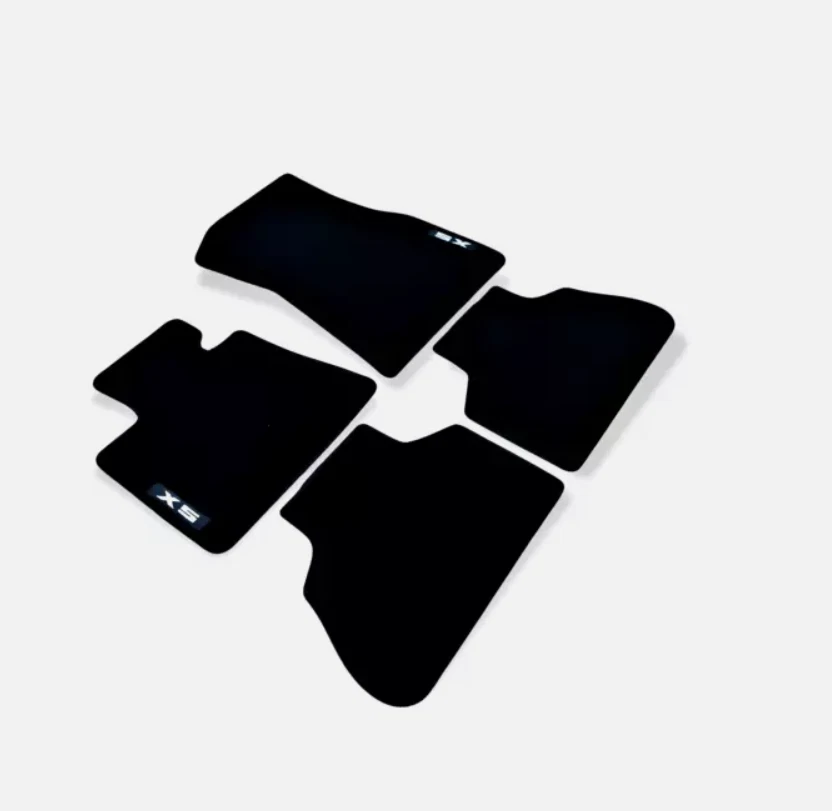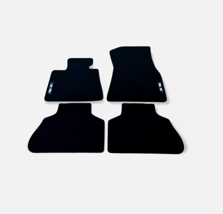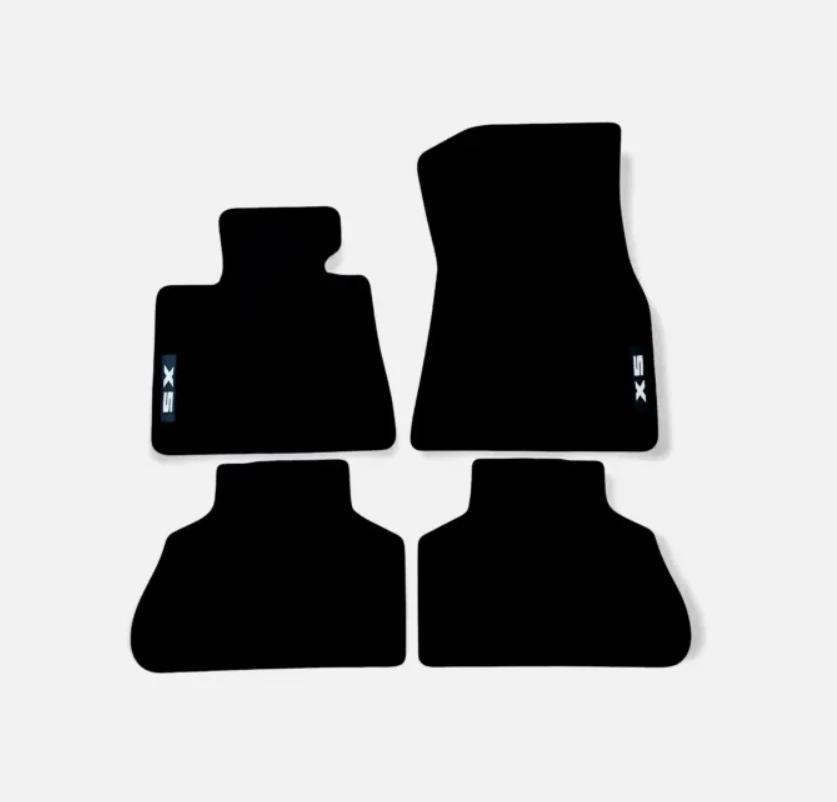 All Weather Black Heavy Duty Rubber Backing All Season Car Floor Mats For: BMW Series X5 G05 2018 - 2023 Car floor mats compatible with BMW X5 series G05 11.2018--> for all types of equipment, like M X5 , M Performance , Luxury etc. Made of high quality tufted velour - carpet, 850gr/1m2 - made in Netherlands. Rubber Backing Edge stripe Velcro stickers Embroidery logo X5 Anti Slip Long Lasting Waterproof Long lasting Perfect fitting Soft surface for driving comfort Easy to clean One set contains: Driver mat Co-Driver mat Rear left mat Rear Right mat