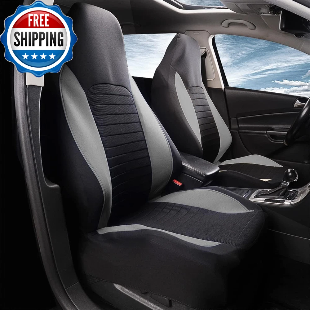 Car Front Seat Covers, Bucket One-Piece Auto Front Seat Protectors, 2PCS Premium Breathable Vehicle Seat Cushions Airbag Compatible, Car Accessories Universal for Suvs, Trucks, Car (Gray) 【Design & Material】: This car seat cover is made of soft stretchable fabric with a sporty graphic design, 100% breathability and a superb finish. High quality multi-layer mesh with 3mm foam padding inside protects your car seat from spills, stains, tears and other damage. 【Airbag Compatible】: The seat cover is compatible with all vehicle side airbags and the advanced stitching technology allows the airbag to deploy through the seat cover seams. Keeps you safe in the event of an emergency. 【Universal Fit】: Ideal for almost all cars, trucks, vans and SUVs, our seat covers feature an advanced universal design, so no matter what you drive, these seat covers will add a little refinement to your car in minutes. 【Easy to Install & Clean】: No tools required, no need to remove or raise the seat, just easy installation in 15 minutes and no slippage when properly installed. It is very easy to clean, just wipe with a wet towel, convenient and non-fading, scratch-resistant, providing protection for the original seat while beautifying the car interior accessories. 【Best Service】: These car seat cover has a simple and elegant design, which not only brings convenience to your journey, but is also an exquisite gift! If you have any questions, please feel free to contact us. We will solve your problem in the first time to ensure your best shopping experience. Features: - Unique airbag stitching seam, safe seam technology allows cover stitching to separate for side airbag deployment in the event of an accident. - Stripe design, this fashionable design freshes your vehicle interior with sporty look. - Durable use, feel very comfortable when driving. Full protection for your car seat covers. - Made from 2 layered meshes, highly breathable and stretchable fabric, inside with 3mm foam padding. - Multiple colors and designs available. If you don't see what need we have full sets to protect the back of car as well. - Our universal seat covers are fully compatible with side airbags and armrests. Universal fit for most vehicles including cars, trucks, vans and SUV. Please check dimensions before installation. What makes our product unique? - We are a car accessories series brand that dedicated to providing innovative, cost-effective and quality products. We have been specialized in automotive products and parts for many years. - We manage every step of production and apply strict quality controls to bring the most reliable products without compromising on quality. - We are always committed to provide you with quality product and the best customer service, your satisfaction is our first priority. If you have any questions or concerns, please get in touch with us, our team will respond and solve problems for you asap. Item model number -2Front Seat Covers Material Stretchable Fabric, Mesh Auto Part Position Inside Color Gray Manufacturer Part Number -2Front Seat Covers Mirror Adjustment Manual Item Weight 15.8 ounces Package Dimensions 14.61 x 13.35 x 2.28 inches Fit Type Universal Fit Shipping Fast shipping is very important for us. Our standard US shipping service is FREE. Your order will be shipped within 2-3 business days upon full payment received. Your order will be delivered within 2-3 business days after the handling time. We only ship to the confirmed PayPal address. We reserve the right to cancel any order for any reason at any time. We are not responsible for undeliverable addresses. Returns and payment We offer a 30 days return policy from checkout winning date. We allow only PayPal as payment method FeedBack Your feedback very important to us, after you get your package and you are satisfied with our service please leave us positive feedback If you have any problem with your order / any questions please before leave any type of feedback Please visit our eBay store to check out other items for sale! Thank you for shopping at our store.