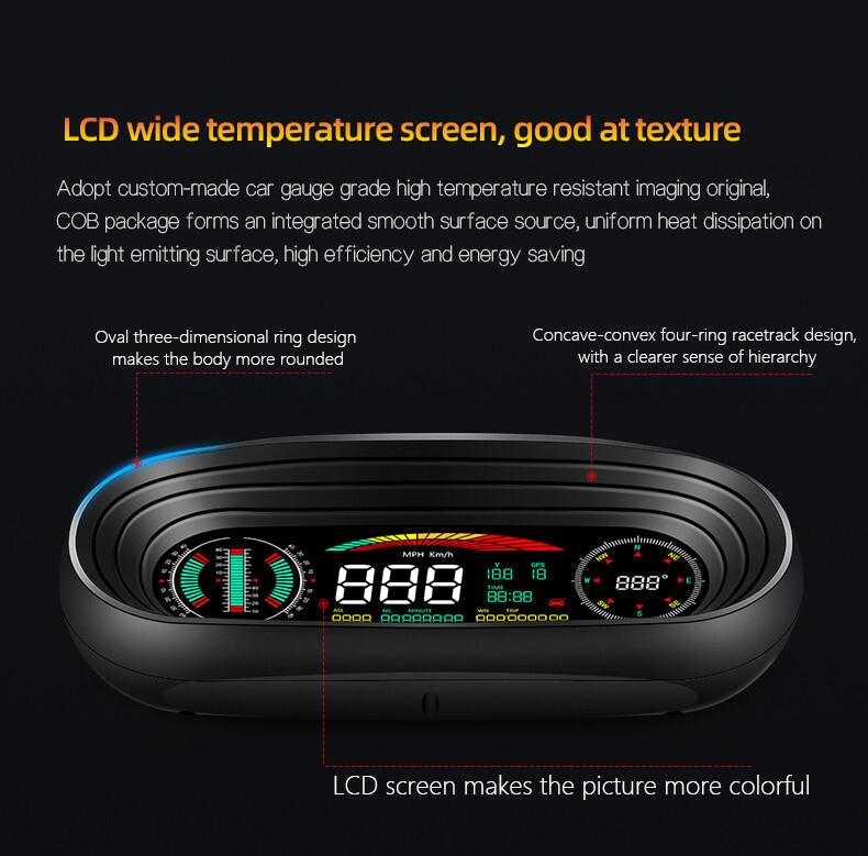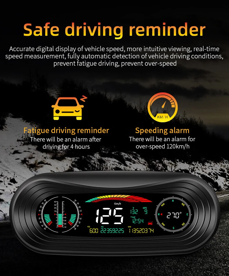 GPS Car HUD Speedometer with Overspeed Alarm & Fatigue Alert