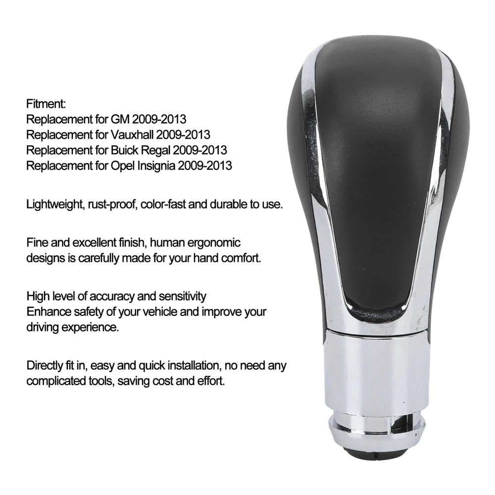 Featrues: 1、Replacement for GM, replacement for Vauxhall, replacement for Buick Regal, replacement for Opel Insignia 2009?2013. 2、High level of accuracy and sensitivity, enhance safety of your vehicle and improve your driving experience. 3、Fine and excellent finish, human ergonomic design is carefully made for your hand comfort. 4、Directly fit in, easy and quick installation, no need any complicated tools, saving cost and effort. 5、Manufactured by high?quality ABS materials, lightweight, rust?proof, color?fast and durable to use. Specification: Item Type: Shift Knob Material: ABS Fitment: Replacement for GM 2009-2013 Replacement for Vauxhall 2009-2013 Replacement for Buick Regal 2009-2013 Replacement for Opel Insignia 2009-2013 Package_list: 1 x Shift Knob