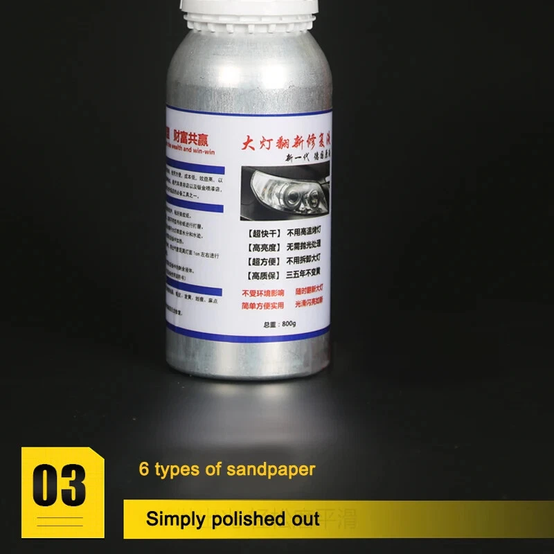 features 03: Anti-Scratch Hydrophobic features 01: headlight polish Item Weight: 2.5 features 05: Regeneration of car lamps Type: car headlight repair Brand: Unbranded features 02: car headlight restoration kit features 04: Car Headlight Polish restoration Ki
