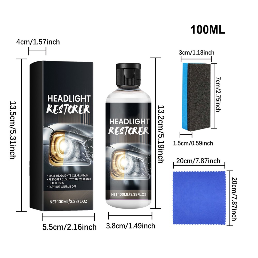 Car Headlights Polish Car Scratch Repair Fluid Liquid Lamp Renovation Cleaner Revive Your Headlight's Glow: Employing a high-quality formula, this repair fluid not only easily removes scratches, oxidation, and yellowing but also progressively restores your headlights to their original shine. Professional Performance: Experience crystal-clear driving visibility with our professional headlight repair fluid; it's designed for lasting protection and improved road safety. Convenient Usage: Our car headlight repair fluid is incredibly simple to apply, just apply a small amount to a clean cloth or sponge, then gently wipe the surfaces of the headlights for a brilliant, crystal-clear finish. Lasting Visibility: Our revolutionary car headlight repair fluid goes more than prevention; ensuring a safer and engaging driving experience with improved vision and stylish appearance. Enjoy long-term advantages and prevent damage with its lasting effect. Practical in Use: Our car headlight repair fluid doesn't just work on headlamps, it can also rejuvenate tail lights, fog lights, and even motorcycle windprotects, providing good clarity and protection. This innovative headlight repair polish effectively restores your headlights and provides long-lasting protection. Designed for professionals and easy to use, this versatile product helps prevent future damage. Specification. Product Name: Car Headlight Repair Fluid Gross weight: 158g Product Size: Product: 13.2x3.8cm|5.19x1.49 inches Cloth: 20x20cm|7.87x7.87 inch Sponge: 3x1.5x7cm|1.18x0.59x2.75 inches Package size: 5.5x4x13.5cm|2.16x1.57x5.31 inches Shelf life: three years Pack List. 100ML Car Headlight Repair Fluidx1 Cloth x1 Sponge x1 1.PayPal is a preferred Payment method. 2.You can make a Credit payment via Paypal.Paypal will let you use MasterCard,Visa to pay. 3.Payment should be completed within 3 days after auction closed, or unpaid dispute will be filed for an closing auction.An unpaid case will be filled after 4 days. ● We strive for 100% customer satisfaction ! ● Positive Feedback is very important to us. ● We hope that you contact us immediately BEFORE you give us neutral or negative feedback, so that we can satisfactorily address your concerns. ● We promise to offer the lowest price and high quality produce. Our working time: Monday to Friday (9:00 am to 18:00pm)(Beijing Time) Saturday (9:00 am to 12:00am),except International Holiday. 1.If you’re in any way dissatisfied or any question with your purchase, please feel free to contact us via ebay messages. And will response within 48 hours. We will try our best to solve it for you. We are committed to ensuring that you are completely satisfied with every transaction. Your satisfactory is our goals 2.Please allow 1-2 business days for us to response. If you do not receive any reply from us, please check your email ensuring your mailbox has not reached full size. 3.Due to some ISP SPAM filter settings, you may not be able to receive our replies; if you have problems receiving our emails, you may need to use a different email account to contact us.
