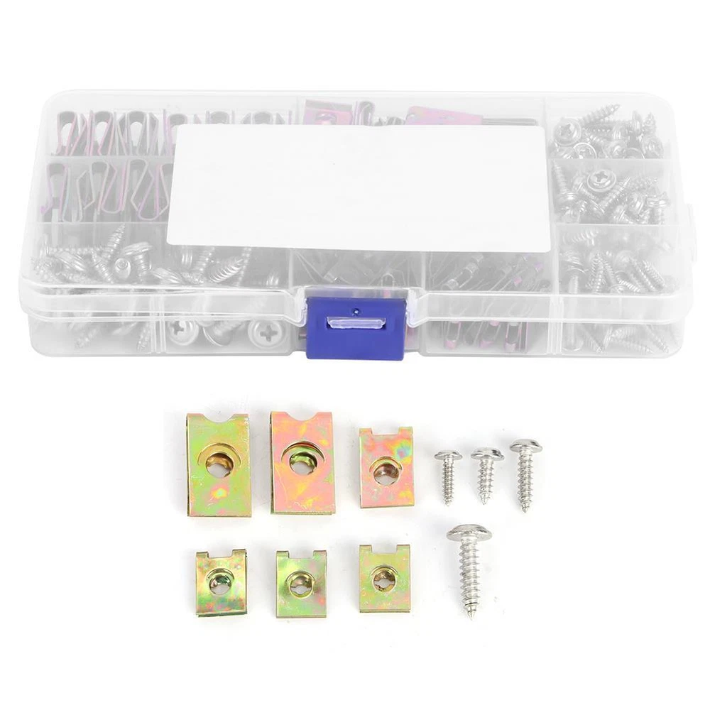 Condition: 100% Brand New Item Type: U-Clips Material: 65 Manganese Steel + 304 Stainless Steel Color: As picture shown Specification: No.6-25pcs M3x12-25pcs No.8-25pcs M4x12-25pcs No.10-25pcs M4x16-25pcs No.12-25pcs M5x20-25pcs Application: Suitable for motorcycles, automobiles, etc.