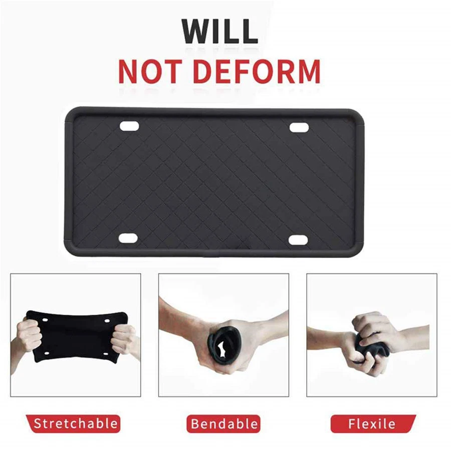 Car License Plate Frame Front Rear Holder Soft Silicone Rubber Black Accessories