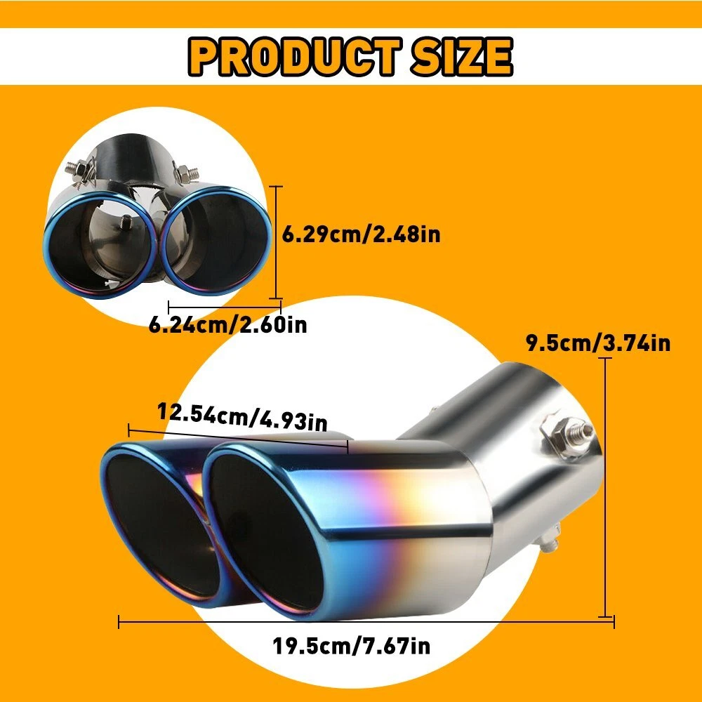 Product Description: Name: Blue Burnt Dual Exhaust Pipes Material: Polished Stainless Steel Size: Total length: 16cm Inner diameter: 6.5cm Outer diameter: 12.6cm Color: bright silver + blue Applicable models: universal Car Muffler Tip Rear Dual Tail Exhaust Pipe Blue Titanium Stainless Steel Cool Product Description: Name: Blue Burnt Dual Exhaust Pipes Material: Polished Stainless Steel Size: Total length: 16cm Inner diameter: 6.5cm Outer diameter: 12.6cm Color: bright silver + blue Applicable models: universal Feature: -Made of high quality stainless steel, exquisite workmanship, no fading, no rust; High temperature bluing, three-color natural gradient, not rigid, dynamic; beautiful and durable; Protect the original car exhaust pipe. -Double bolt fastening, double secure -Good finish edge, protect your hand and paint -Drain hole is reserved, avoid extra water and protect the tail pipe. -High-quality installation buckle design, easy installation and can firmly hold the original car exhaust pipe, not easy to fall off. Package Included: 1 x Dual Exhaust Pipes Item Specifics Brand AUXITO Manufacturer Part Number Does Not Apply Type Exhaust Pipe Material Polished Stainless Steel Applicable Models Universal Tip Inlet Diameter 2.5in. Length 6.3in. Pipe Outlet Diameter 5in. Color bright silver, blue Fitment Type Direct Replacement Applicable models universal Fitment Type Direct Replacement FAQ ♥ If you have a decoding problem or any other problems, please contact us first, we will help you with it. We will reply you within 24 hours in working days. I'm a new seller, thanks a lot for your trust and convince! I will serve you with all my heart. ♥ Q1: Will this bulb fit my vehicle? A: We can match almost any vehicle to one of our bulb sizes. eBay only lets us include some vehicle fitments per listing, but if your vehicle does not show up on the compatibility table at the top of our listings, welcome you to contact us for free consulation before purchasing a product. Q2: My item has not arrived, what's taking so long? A: Sometimes items take longer than expected, especially if it’s going far or to rural area. Check with your post office to see if your item has been held up. Sometimes Royal Mail will not update a tracking number until it has arrived at its destination. If your item still don't arrive after a few days, let us know so we can double check for you and help solve it asap. Q3: My bulbs won't fit, help! A: Special bulb holder may be required. See if you can take the holder from the stock bulb. If not, let us know. The bulb size may be wrong, double check the item you received with the item you ordered. Do you have an aftermarket lighting housing? These may not be perfectly fitted for aftermarket bulbs and will require some manual modifications. Q4: Neither side lighting up? Both sides flicker, hyper flash, or work inconsistantly. A:Check the light fuses, and then check the ballast plugs to insure correct installation. If this doesn't work, there may be a voltage problem with the vehicle. You probably just need a relay or capacitor. Even though some bulbs are builtin resistors, they may still need a decoder. Pay & Ship (1). We gladly accepts payment via PayPal, We will ship your item(s) within 24 hours. (2). Before payment, please keep the consistency of Paypal address and ebay address. (3). Quantity orders are welcome! Returns (1). We offer 60 days free return policy. Please contact us within 60 days from the date you receive your order if you have any issues with the product or want return. Refund will be send after we got your resend package. (2). All returned items should be in the original packaging , return tracking information should be provided . Contact Us (1).Negative feedback will not help resolve any problems you have, please contact us via eBay messages before leaving negative feedback , our customer service will make best effort to help you with the issues. (2).We maintain high standards of excellenceand strive for 100% customer satisfaction! Feedback is very important to us. We request that you contact us immediately before you give us neutral or negative feedback, so that we can satisfactorily address your concerns. About us We're professional in car and motorcycle accessories, especially in LED bulbs. We have our own factory and R&D team. Our belief is to sell top quality items that fit your car and serve you with our heart. Anything please feel free to contact us! Our customer service is very responsibility. Come and follow us! DESCRIPTION NEW ARRIVED HOT SALE CONTACT US SAVE US Store Category Store Home Other Hot Item Windshield Reveal Surround Molding Trim For 2006-2011 Honda Civic 73150-SNA-003 USD 12.98 For Dodge Charger 2011-2021 6pc Black Pillar Posts Set Door Trim Piano Cover Kit USD 12.99 4x Car Accessories Universal Front Rear Mud Flap Flaps Splash Guard Mudguards US USD 24.99 Car Trunk Organizer Oxford Interior Accessories Back Seat Storage Bag 4 Pocket USD 15.89 Fire Extinguisher Holder,Car Accessories for Jeep Wrangler Tj Jk Jl 1997-201 USD 9.79 New List Item For 2019 20 21 22 2023 Toyota RAV4 Front Bumper Tow Hook Eye Cover Cap Pair USA USD 11.99 4x Window Visor Vent Rain Sun Deflector Guard For 17-21 Honda civic HatchBack US USD 38.99 Fuel Filler Door Housing & White Gas Cover For 2015-23 Ford Transit Van 150 250 USD 63.79 Black Pillar Posts for Chrysler 300C & Magnum Dodge 2005-2010 6pc Set Door Trim USD 13.99 Carbon Fiber Interior Steering Wheel Moulding For Trim 15+ Ford F150 Accessories USD 18.99 Picture Car Muffler Tip Rear Dual Tail Exhaust Pipe Blue Titanium Stainless Steel Cool Product Description: Name: Blue Burnt Dual Exhaust Pipes Material: Polished Stainless Steel Size: Total length: 16cm Inner diameter: 6.5cm Outer diameter: 12.6cm Color: bright silver + blue Applicable models: universal Feature: -Made of high quality stainless steel, exquisite workmanship, no fading, no rust; High temperature bluing, three-color natural gradient, not rigid