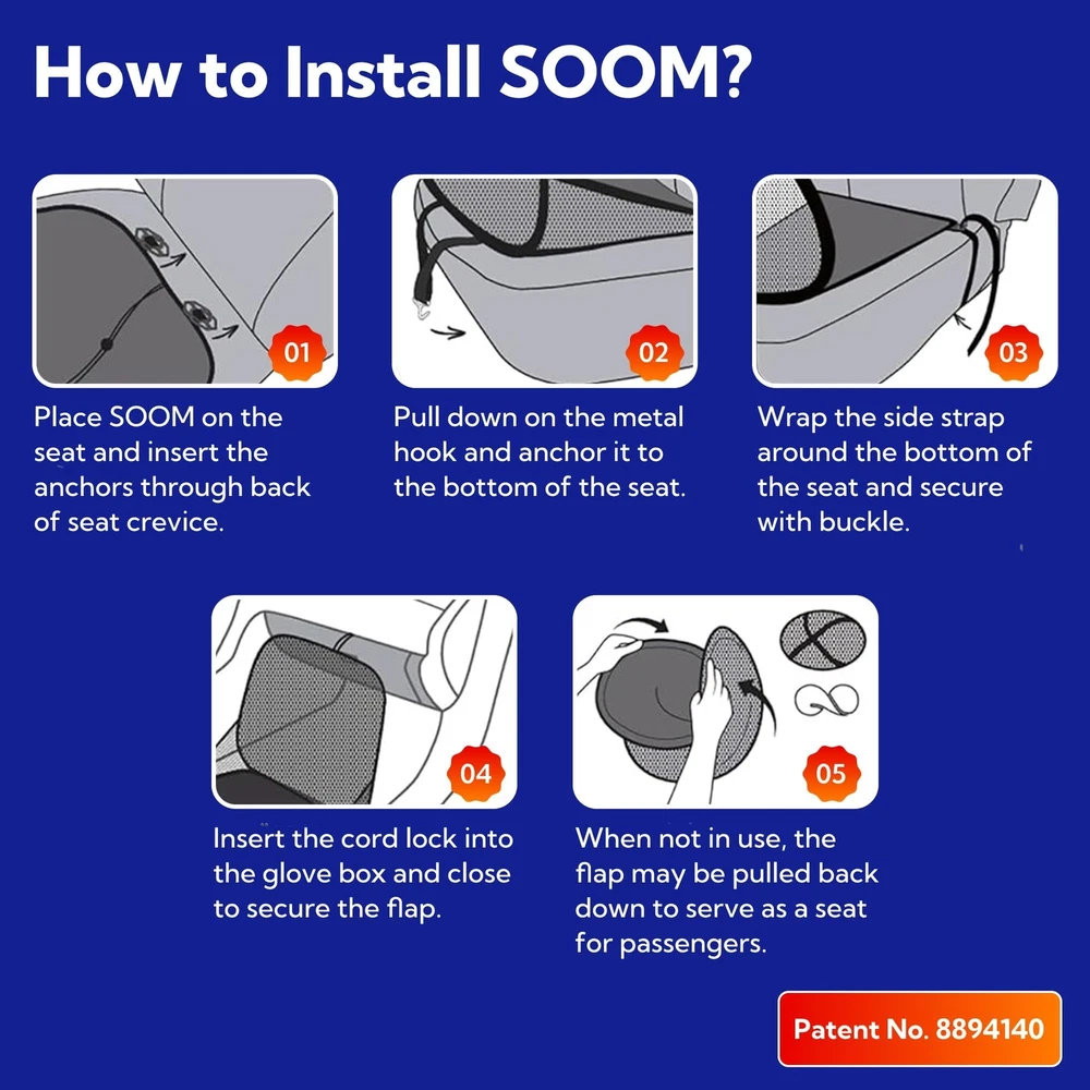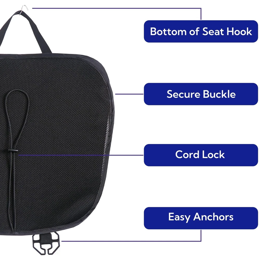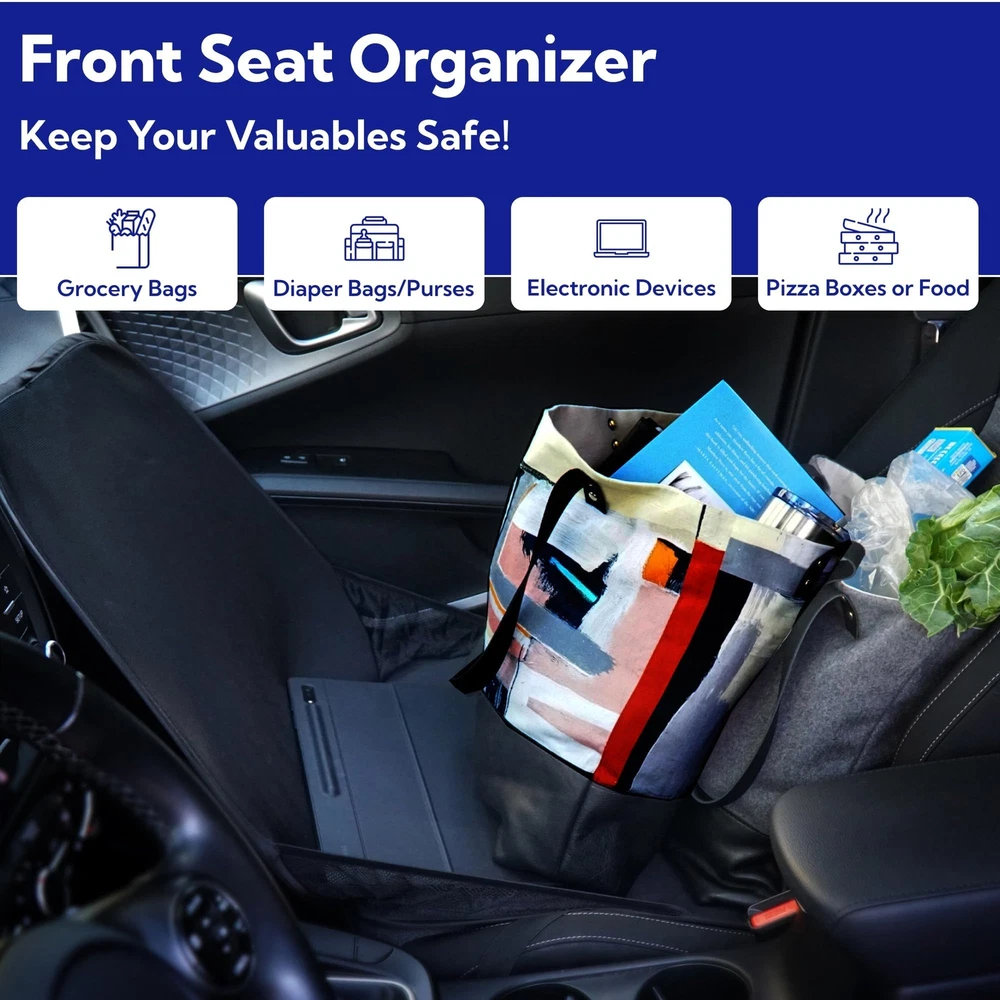 STOP YOUR CARGO FROM FALLING OFF THE PASSENGER SEAT WTIH "" Foldaway Seat Storage is great for: Handbag / Purse Holder Work Bag Baby Bag Laptop / Cell / Electronics Groceries Shopping Bags Food and More FEATURES: Streamlined, minimalistic design Universal design to fit most vehicles Anti-slip protective barriers on all sides prevents cargo from falling off the seat Ability to use the entire seat area for storage Breathable Mesh Extremely simple, -handed open/close flap Passenger able to sit comfortably on top of when not in use Water Proof clean measures 19" L x 21" W and lays flat when not in use folds to an 8" diameter x 3" H when removed from seat Product weight - 12 ounces Great for personal vehicles or semi trucks SAFE DRIVING: helps reduce distracted driving by providing easy access to your cargo without taking your eyes off the road. INSTALL ONCE: unlike other car organizers, install once and keep it on your seat. is a passenger seat cushion when not in use. FRONT SEAT CAR ORGANIZER: helps prevent cargo from falling off the seat. cargo protector is easy to install, anti-slip, water proof, with breathable mesh. Universal fit should work with any car seat. KEEP VALUABLES SAFE: leave low-profile valuables safely on the seat and close the flap when you exit your car. Your valuables will be from view, minimizing the risk of break-ins. Efficient Car Organization - Keep your car interior tidy and clutter-free with this front seat organizer. Our car organizer for front seat helps prevent cargo from falling off the seat while driving. Secure your items with our car storage organizer. Streamlined and Durable Design - Our car organizer for the front seat integrates into your car's interior, optimizing seat space for storage. It is made from high-quality materials, ensuring long-lasting use. You can install a purse holder for the car once and keep it on your seat. Easy Installation & Maintenance - Enjoy a -free experience with our car and truck seat organizer – effortless setup with adjustable straps and buckles, no tools needed. It's a breeze to keep the car office organizer for front seat clean, ensuring your car stays organized. When not in use - fold it, and it doubles as a comfortable seat cushion for your passenger. Safety First with - We prioritize your safety on the road. With quick and easy access to your items without taking your eyes off the road, this holder for cars is a valuable tool in reducing distraction. Front and back seat organizer keeps your items secure on the seat, preventing your things from falling onto the floor. Universal Fit for All Occasions - Our car seat organizer for front seat is designed to fit most car models, trucks, and SUVs. When installed, it measures 19" L x 21" W, folded down it lays flat. Weighing just 12 ounces, is also water-resistant and perfect for road trips, daily commutes, or family outings.