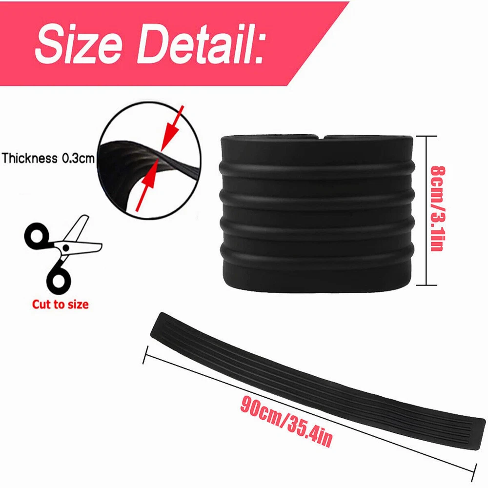 Feature: High performance ,racing style. No special tool, no drilling or screws required. Direct fit. Easy installation with double side Automotive tape at the back of covers for a strong and secure bond. Flexible enough to conform to different types of bumper/car body. Protect your car from scratches and and add style to your vehicle. Groove design surface matte effect with non-slip function Specification: Colour: Black Size: length 90cm/ width 8cm Material: PVC rubber Process: Extrusion Hardness: 50-90 Shore hardness Size: Various shapes, customizable Uses: Protection Collision Protection Color: Black PVC sealing strip performance characteristics: 1. Good insulation, a certain degree of flame retardancy, small compression deformation, strong elasticity; 2. The surface is flat, 3. Alkali-resistant, anti-aging, non-toxic; 4. A good surface is not sticky; 5. Adopt 100% high-quality rubber raw materials and undergo rigorous testing to meet environmental protection requirement Specifications: Often move things to the car after the car, do not be careful to scratch the car,leaving a scar. This time, we need to put on the protection of the trunk. To prevent damage to the trunk, which left scars. Can also prevent the fall of goods. Package Included: 1* scratch bar