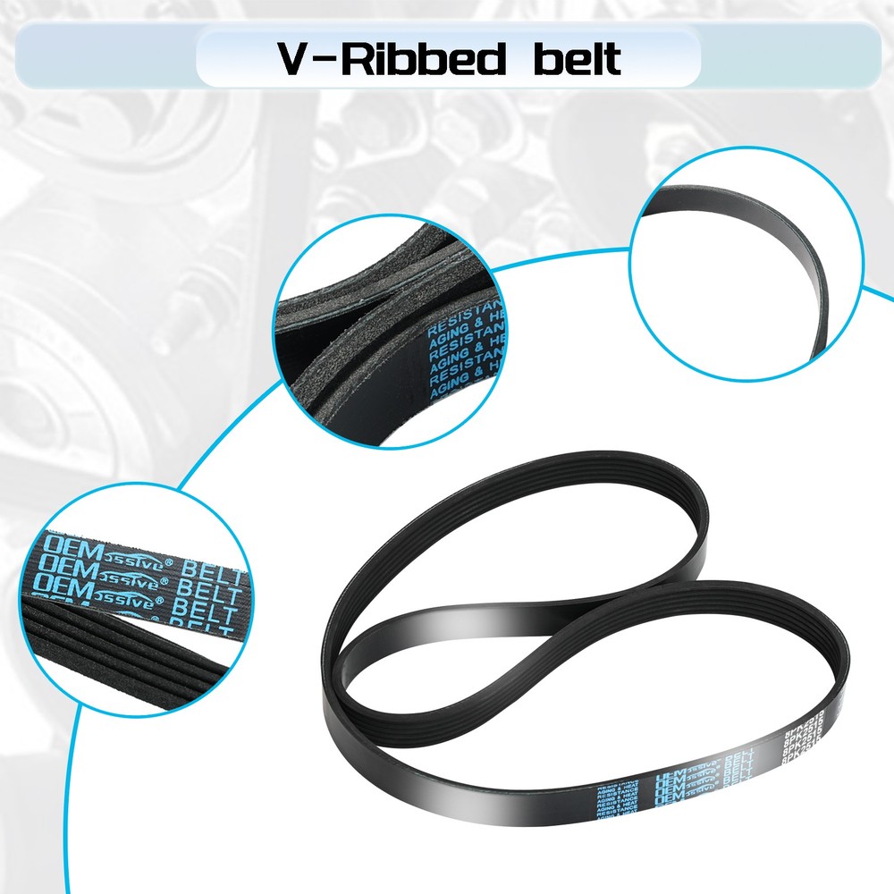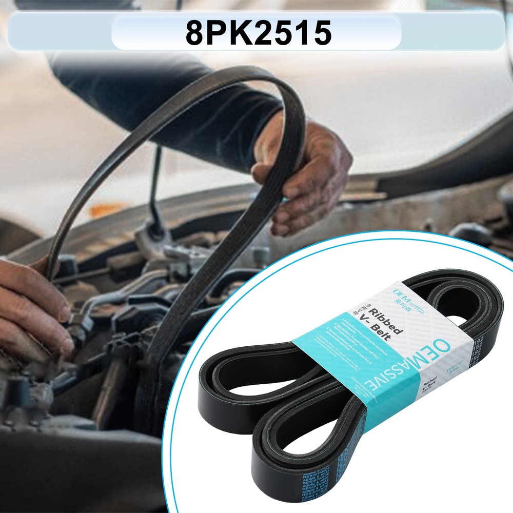 Car Ribbed V-Belt Multi Drive Belt Serpentine Belts 8PK2515 For Ford LAND ROVER Description: Brand: OEMASSIVE Type: Ribbed V-Belt Material: EPDM Color: Black OE Reference Number: YC2E-8620-DA, YC2E-8620-EA, YC2Z-8620-DA, YC2Z-8620-EA, YC3E- 862-BA, YL3E-8620-FA, YL3Z-8620-FA, 1C2Z-8620-DB, F65E-8620-JA, F65Z-8620-JA, F65Z- 8620-JB, F75E-8620-FA, F7UE-8620-EB, F7UZ-8620-EA, F7UZ-8620-EAA Interchange Part Number: 8PK2513, 8PK2514, 8PK2515, 8PK2516 Fitment: For For Ford E-150 Econoline 4.6L 281Cu. In. V8 GAS SOHC Naturally Aspirated (Water Pump, Alternator, Air Conditioning and Power Steering; w/ Air Conditioning) 1997-2001 For Ford E-150 Econoline 5.4L 330Cu. In. V8 BI-FUEL SOHC Naturally Aspirated (Water Pump, Alternator, Air Conditioning and Power Steering; w/ Air Conditioning) 1998 For Ford E-150 Econoline 5.4L 330Cu. In. V8 GAS SOHC Naturally Aspirated (Water Pump, Alternator, Air Conditioning and Power Steering; w/ Air Conditioning) 1997-2001 For Ford E-150 Econoline Club Wagon 4.6L 281Cu. In. V8 GAS SOHC Naturally Aspirated (Water Pump, Alternator, Air Conditioning and Power Steering; w/ Air Conditioning) 1997-2001 For Ford E-150 Econoline Club Wagon 5.4L 330Cu. In. V8 BI-FUEL SOHC Naturally Aspirated (Water Pump, Alternator, Air Conditioning and Power Steering; w/ Air Conditioning) 1998 For Ford E-150 Econoline Club Wagon 5.4L 330Cu. In. V8 GAS SOHC Naturally Aspirated (Water Pump, Alternator, Air Conditioning and Power Steering; w/ Air Conditioning) 1997-2001 For Ford E-250 Econoline 5.4L 330Cu. In. V8 BI-FUEL SOHC Naturally Aspirated (Water Pump, Alternator, Air Conditioning and Power Steering; w/ Air Conditioning) 1998-1999 For Ford E-250 Econoline 5.4L 330Cu. In. V8 CNG SOHC Naturally Aspirated (Water Pump, Alternator, Air Conditioning and Power Steering; w/ Air Conditioning) 1998-2001 For Ford E-250 Econoline 5.4L 330Cu. In. V8 GAS SOHC Naturally Aspirated (Water Pump, Alternator, Air Conditioning and Power Steering; w/ Air Conditioning) 1998-2001 For Ford E-350 Econoline 5.4L 330Cu. In. V8 BI-FUEL SOHC Naturally Aspirated (Water Pump, Alternator, Air Conditioning and Power Steering; w/ Air Conditioning) 1998 For Ford E-350 Econoline 5.4L 330Cu. In. V8 CNG SOHC Naturally Aspirated (Water Pump, Alternator, Air Conditioning and Power Steering; w/ Air Conditioning) 1998 For Ford E-350 Econoline 5.4L 330Cu. In. V8 GAS SOHC Naturally Aspirated (Water Pump, Alternator, Air Conditioning and Power Steering; w/ Air Conditioning) 1998-2000 For Ford E-350 Econoline 6.8L 415Cu. In. V10 GAS SOHC Naturally Aspirated (Water Pump, Alternator, Air Conditioning and Power Steering; w/ Air Conditioning) 1998 For Ford E-350 Econoline Club Wagon 5.4L 330Cu. In. V8 BI-FUEL SOHC Naturally Aspirated (Water Pump, Alternator, Air Conditioning and Power Steering; w/ Air Conditioning) 1998-1999 For Ford E-350 Econoline Club Wagon 5.4L 330Cu. In. V8 CNG SOHC Naturally Aspirated (Water Pump, Alternator, Air Conditioning and Power Steering; w/ Air Conditioning) 1998-2001 For Ford E-350 Econoline Club Wagon 5.4L 330Cu. In. V8 GAS SOHC Naturally Aspirated (Water Pump, Alternator, Air Conditioning and Power Steering; w/ Air Conditioning) 1998-2001 For Ford E-350 Econoline Club Wagon 6.8L 415Cu. In. V10 GAS SOHC Naturally Aspirated (Water Pump, Alternator, Air Conditioning and Power Steering; w/ Air Conditioning) 1998-2001 For Ford E-450 Econoline Super Duty 5.4L 330Cu. In. V8 CNG SOHC Naturally Aspirated (Water Pump, Alternator, Air Conditioning and Power Steering; w/ Air Conditioning) 2000-2001 For Ford E-450 Econoline Super Duty 5.4L 330Cu. In. V8 GAS SOHC Naturally Aspirated (Water Pump, Alternator, Air Conditioning and Power Steering; w/ Air Conditioning) 2000-2001 For Ford E-450 Econoline Super Duty 6.8L 415Cu. In. V10 GAS SOHC Naturally Aspirated (Water Pump, Alternator, Air Conditioning and Power Steering; w/ Air Conditioning) 2000-2001 For Ford E-450 Super Duty 6.8L 415Cu. In. V10 GAS SOHC Naturally Aspirated (Water Pump, Alternator, Air Conditioning and Power Steering; w/ Air Conditioning) 2003-2004 For Ford Econoline Super Duty 5.4L 330Cu. In. V8 CNG SOHC Naturally Aspirated (Water Pump, Alternator, Air Conditioning and Power Steering; w/ Air Conditioning) 1999 For Ford Econoline Super Duty 5.4L 330Cu. In. V8 GAS SOHC Naturally Aspirated (Water Pump, Alternator, Air Conditioning and Power Steering; w/ Air Conditioning) 1997-1998 For Ford Econoline Super Duty 6.8L 415Cu. In. V10 GAS SOHC Naturally Aspirated(Water Pump, Alternator, Air Conditioning and Power Steering; w/ Air Conditioning) 1997-1999 For Ford Excursion 5.4L 330Cu. In. V8 GAS SOHC Naturally Aspirated (Water Pump, Alternator, Air Conditioning and Power Steering; w/ Air Conditioning) 2000-2001 For Ford Excursion 6.8L 415Cu. In. V10 GAS SOHC Naturally Aspirated (Water Pump, Alternator, Air Conditioning and Power Steering; w/ Air Conditioning) 2000-2001 For Ford Expedition 5.4L 330Cu. In. V8 GAS SOHC Naturally Aspirated (Water Pump, Alternator, Air Conditioning and Power Steering; w/ 99; BELT) 1997 For Ford F-150 4.6L 281Cu. In. V8 GAS SOHC Naturally Aspirated (Water Pump, Alternator, Air Conditioning and Power Steering; w/ Air Conditioning) 1997-2001 For Ford F-150 5.4L 330Cu. In. V8 BI-FUEL SOHC Naturally Aspirated (Water Pump, Alternator, Air Conditioning and Power Steering; w/ Air Conditioning) 1998-2001,2003 For Ford F-150 5.4L 330Cu. In. V8 CNG SOHC Naturally Aspirated (Water Pump, Alternator, Air Conditioning and Power Steering; w/ Air Conditioning) 1998-2001,2003 For Ford F-150 5.4L 330Cu. In. V8 GAS SOHC Naturally Aspirated (Water Pump, Alternator, Air Conditioning and Power Steering; w/ Air Conditioning) 1997-2001,2003 For Ford F-150 5.4L 330Cu. In. V8 GAS SOHC Supercharged (Water Pump, Alternator, Air Conditioning and Power Steering; w/ Air Conditioning) 1999-2001,2003 For Ford F-150 Heritage 4.6L 281Cu. In. V8 GAS SOHC Naturally Aspirated (Water Pump, Alternator, Air Conditioning and Power Steering; w/ Air Conditioning) 2004 For For
