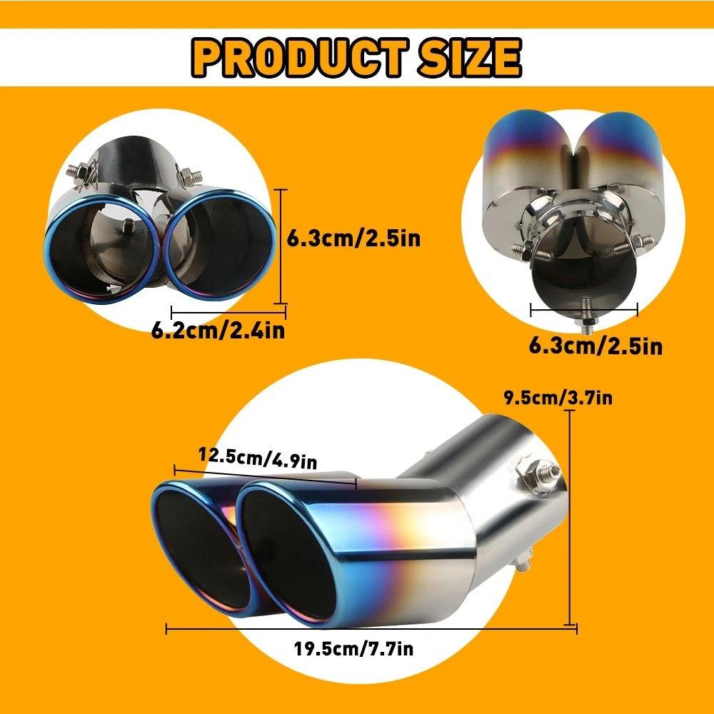 Product Description: Name: Blue Burnt Dual Exhaust Pipes Material: Polished Stainless Steel Size: Total length: 16cm Inner diameter: 6.5cm Outer diameter: 12.6cm Color: bright silver + blue Applicable models: universal Feature: -Made of high quality stainless steel, exquisite workmanship, no fading, no rust; High temperature bluing, three-color natural gradient, not rigid, dynamic; beautiful and durable; Protect the original car exhaust pipe. -Double bolt fastening, double secure -Good finish edge, protect your hand and paint -Drain hole is reserved, avoid extra water and protect the tail pipe. Car SUV Rear Dual Exhaust Pipe Tail Muffler Tip Throat Tailpipe Sporty Type 1To2 Product Description: Name: Blue Burnt Dual Exhaust Pipes Material: Polished Stainless Steel Size: Total length: 16cm Inner diameter: 6.5cm Outer diameter: 12.6cm Color: bright silver + blue Applicable models: universal Feature: -Made of high quality stainless steel, exquisite workmanship, no fading, no rust; High temperature bluing, three-color natural gradient, not rigid, dynamic; beautiful and durable; Protect the original car exhaust pipe. -Double bolt fastening, double secure -Good finish edge, protect your hand and paint -Drain hole is reserved, avoid extra water and protect the tail pipe. -High-quality installation buckle design, easy installation and can firmly hold the original car exhaust pipe, not easy to fall off. Package Included: 1 x Dual Exhaust Pipes Warm Tips: 1. The distance between the pipe and the bumper should be more than 2cm, so that the high temperature produced by the pipe will not burn the bumper. 2. Wear gloves to avoid hurt when installing. 3. Do not install this product when the car has just stopped or started to avoid being burned by the exhaust pipe 4.Please allow minor deviation due to manual measurement. 5.Due to the difference between different monitors, the picture may not reflect the actual color of the item. Thank you! your kind understanding will be much appreciated. Item Specifics Brand AUXITO Manufacturer Part Number GZPQG-1C2-KL-EAA-Dual Color Silver/BLUE Placement on Vehicle Front Manufacturer Warranty Yes Interchange Part Number UNIVERSAL FITMENT Suitable For 1.0-3.0T Material Stainless Steel MATERIAL Stainless Steel Payment We only accept PayPal payment, should be received within 3 days from the date of purchase. Please keep the consistency of Paypal address and ebay address. Payment should be made within 4 days once you won a item ,or ebay will launch Unpaid Reminder agaist you and there will be bad record on your ebay account . Buyers are responsible for import duties, custom fees and taxes.Please check with your country's custom office to determine the additional costs before you finally make the purchase Shipping All items will be shipped in 48 hours after receiving your payment . We ship this item to US only via USPS first class mail. It usually takes 3-6 working days to deliver. Returns We offer 30 days return policy. Please contact us within 30 days t from the date you receive your order if you have any issues with the product or want return .Refund will be send after we got your resend package. All returned items should be in the original packaging , return tracking information should be provided .. Buyer is responsible for return shipping cost due to the problem not caused by item quality itself . Contact Us Our office hours are MONDAY - FRIDAY 9:00PM - 6:00PM PST, but we will response you once we get your message .There will be some delay on response if you send message or E-Mail on weekend. FAQ Q1: Will this bulb fit my vehicle? A: We can match almost any vehicle to one of our bulb sizes. eBay only lets us include partial vehicle fitments per listing, but if your vehicle does not show up on the compatibility table at the top of our listings, welcome you to contact us for free consulation before purchasing a product. Q2: My item has not arrived, what's taking so long? A: Sometimes items take longer than expected, especially if it’s going far or to rural area. Check with your post office to see if your item has been held up. Sometimes USPS will not update a tracking number until it has arrived at its destination. If your item still has not arrived after a few days, let us know so we can double check for you and help solve it asap. Q3: Do I need to mention the Year, Make and Model in the notes when place order? A: YES. Please include the Year, Make, and Model in the notes section during checkout to ensure you receive everything needed for your kit! Q4: My bulbs won't fit, help! A: Special bulb holder may be required. See if you can take the holder from the stock bulb. If not, let us know. The bulb size may be wrong, double check the item you received with the item you ordered. Do you have an aftermarket lighting housing? These may not be perfectly fitted for aftermarket bulbs and will require some manual modifications. Q5: Neither side lighting up? Both sides flicker, flash, or work inconsistantly. A:Check the headlight fuses, and then check the ballast plugs to insure correct installation. If this doesn't work, there may be a voltage problem with the vehicle. You probably just need a relay or capacitor. Q6: WARNING ABOUT POLARITY Unlike halogen bulbs, LED are polarity sensitive. BEFORE you start your LED kit installation, verify the polarity on your vehicle by simply plugging the LED bulb into your vehicle socket. - if your light turns on, please proceed to install both bulbs onto your vehicle. - if your light DOES NOT turn on, disconnect the bulb and flip the socket in order to reverse the polarity (this will not damage your vehicle electrical system in any way). Once you made sure the LED bulb turns on, please proceed to install both bulbs onto your vehicle. Note: There is no convention when it comes to polarity. Different car manufactures have different polarity setup, even within the car model the polarity setup on your low beams and high beams might be differe