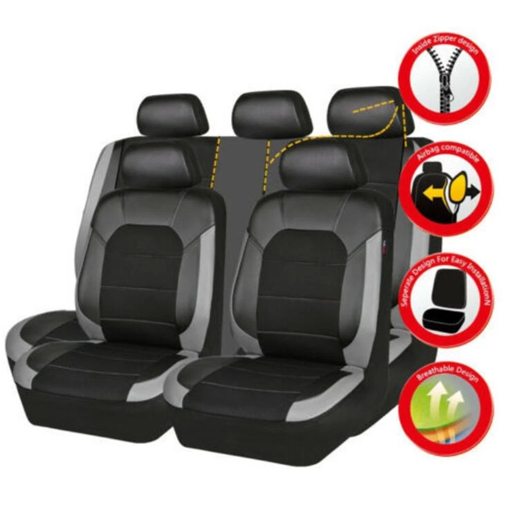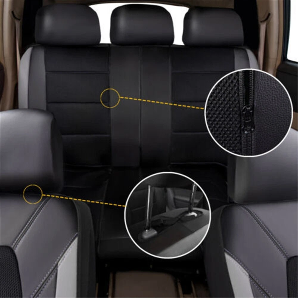 Product Description PU Leather Black/Gray Car Seat Covers Full Set Airbag Compatible Automobile Seat Cushion Protector Interior Accessories Fit Five Seat Cars Add our listing to Watchlist Or Add to Cart , you will get more discount This seat covers fits most Detachable Headrest seats . Seat covers can extend the life of your vehicle and keep your seats looking brand new and clean. These seat covers fit most of the standard vehicles including sedan, SUV, truck, van and minivan. 1, Universal application fits almost all five seats Cars 2, Helps Protect a Nice Seat or Disguise an Old One 3, Airbag compatible 4, Easy to install Features: 100% Brand new and high quality! Easy Installation Durable and Long Lasting Comfortable in Four Season Color: Black/Gray Material: PU Leather (The middle part is not leather ) Description: 1.The car seat cover is full set. 2.It is very easy to install the car seat cover, doesn't need to dismantle the seats, a person can complete it in 20 minutes. 3.The car seat cover doesn't affect the airbag, doesn't affect the child safty seat, doesn't affect the seat belts,too. 4.The car seat cover is universal,it is suitable for most of cars,If you are unsure if this cover is right for your vehicle, please contact us before buying. Package Included: 5 seat head covers: 30*27cm 2 front seat covers: 118*56cm 1 backrest: 135*76cm 1 rear seat cushion: 135*56cm Accessories: one pack of hooks Payment Returns Contact Us Shipping We accept payment by PayPal only ! Payment should be completed within 5 days after buyer places the order,or else an unpaid case will be opened in order to cancel the transaction. If you can not pay in time, please contact us. e-check from PayPal will only be processed once the payment clears. All of the items will be shipped to buyer's EBAY address,please confirm your address on Ebay before you buy.Your order will be usually shipped out the same or next business days once the payment is made and cleared. 30-day Warranty with Exchange for defective, malfunctioned, incorrect or parts-missing items. Please notify us and return the item with all parts and accessories packed and marked "FOR EXCHANGE" within 14 days of receipt. If defective, malfunctioned or parts-missing items are no longer available, a refund may be issued. All returning postage costs will be the responsibility of the buyers under all circumstances. If you encounter any problems about anything, please feel free to contact us and we will do our best to assist you solve the issue. If you are not satisfied in anyway, please feel free to let us know and give us a second chance to correct it before you decide to leave any neutral or negative feedback. Please contact us through eBay link if you have any questions. We will reply you within 24- 48 hours. Please check you spam mail if no response for 48 hours. All items will be checked before packing. All items are new and of high quality. Item will be shipped within 1 business days upon receipt of payment, excluding weekends and public holidays. If to USA,we will ship your order by USPS,it will take about 8-12 working days to you,and you can track it on line. If to other country,we will ship your order by China Post or Singapore Registered Air Mail,it will take about 14-21 working days to you,you aslo can track it on line. Delivery time is about 14-28 business days and it may take up to 8 weeks . Payment We accept payment by PayPal only ! Payment should be completed within 7 days after buyer places the order,or else an unpaid case will be opened in order to cancel the transaction. If you can not pay in time, please contact us. eCHECK from PayPal will only be processed once the payment clears. All of the items will be shipped to buyer's EBAY address,please confirm your address on Ebay before you buy.Your order will be usually shipped out the same or next business days once the payment is made and cleared. Returns 30-day Warranty with Exchange for defective, malfunctioned, incorrect or parts-missing items. Please notify us and return the item with all parts and accessories packed and marked "FOR EXCHANGE" within 14 days of receipt. If defective, malfunctioned or parts-missing items are no longer available, a refund may be issued. All returning postage costs will be the responsibility of the buyers under all circumstances. Contact Us If you encounter any problems about anything, please feel free to contact us and we will do our best to assist you solve the issue. If you are not satisfied in anyway, please feel free to let us know and give us a second chance to correct it before you decide to leave any neutral or negative feedback. Please contact us through eBay link if you have any questions. We will reply you within 24- 48 hours. Please check you spam mail if no response for 48 hours. Shipping All items will be checked before packing. All items are new and of high quality. Item will be shipped within 1 business days upon receipt of payment, excluding weekends and public holidays. If to USA,we will ship your order by USPS,it will take about 7-10 working days to you,and you can track it on line. If to other country,we will ship your order by China Post or Singapore Registered Air Mail,it will take about 14-21 working days to you,you aslo can track it on line. Delivery time is about 14-28 business days and it may take up to 8 weeks . Welcome to our Store ~