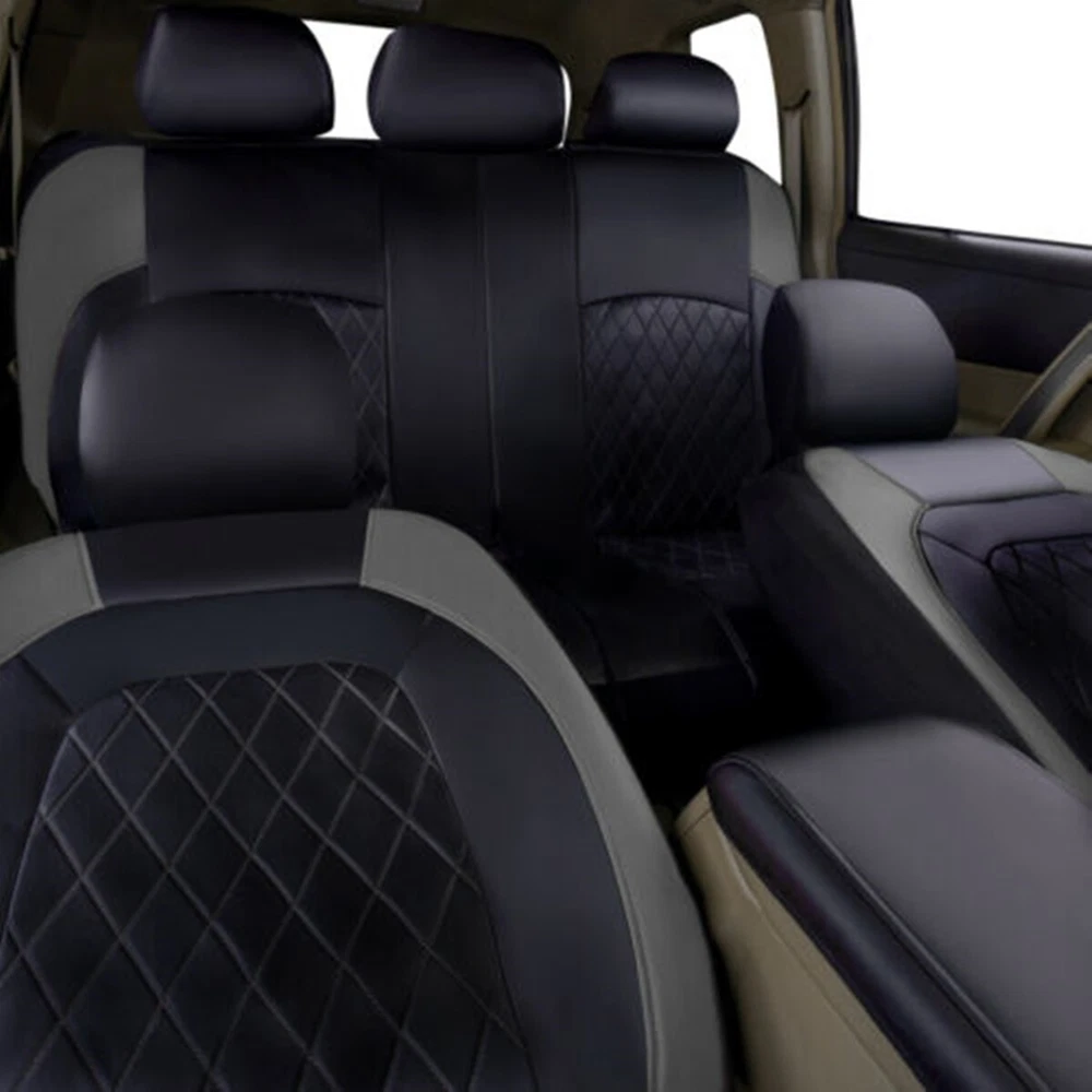 Product Description 9Pcs Full Set Universal PU Leather Diamond Lattice Car Seat Covers Quanlity Waterproof Automobile Seat Protector Interior Accessories Add our listing to Watchlist Or Add to Cart , you will get more discount 1. Universal application fits almost all seats ( Cars, Trucks, Vans, & SUV ) 2. Helps Protect a Nice Seat or Disguise an Old One 3. compatible 4. Easy to install Features: 100% Brand new and high quality! Easy Installation Durable and Long Lasting Comfortable in Four Season Color: Black/Gray Material: PU Leather Placement on Vehicle: Front and rear Applicable Season: Autumn Winter Spring Summer Headrest Covers Size: 30*27cm Front Seat Covers Size: 118*56cm backrest size : 135*76cm rear seat cushion size : 135*56cm Description: 1.The car seat cover is full set. 2.It is very easy to install the car seat cover, doesn't need to dismantle the seats, a person can complete it in 20 minutes. 3.The car seat cover doesn't affect , doesn't affect the child safty seat, doesn't affect the seat belts,too. 4.The car seat cover is universal,it is suitable for most of cars,If you are unsure if this cover is right for your vehicle, please contact us before buying. Package Including:(Full Seat Cover Set) - 2pcs front seat covers -1pcs rear backrest cover - 1pcs rear bottom bench cover - 5pcs separate headrest covers NOTE: 1. As different computers display colors differently, the color of the actual item may vary slightly from the above images. 2. Please allow 1-2 CM differs due to manual measurement. Thanks for your understanding. Payment Returns Contact Us Shipping We accept payment by PayPal only ! Payment should be completed within 5 days after buyer places the order,or else an unpaid case will be opened in order to cancel the transaction. If you can not pay in time, please contact us. e-check from PayPal will only be processed once the payment clears. All of the items will be shipped to buyer's EBAY address,please confirm your address on Ebay before you buy.Your order will be usually shipped out the same or next business days once the payment is made and cleared. 30-day Warranty with Exchange for defective, malfunctioned, incorrect or parts-missing items. Please notify us and return the item with all parts and accessories packed and marked "FOR EXCHANGE" within 14 days of receipt. If defective, malfunctioned or parts-missing items are no longer available, a refund may be issued. All returning postage costs will be the responsibility of the buyers under all circumstances. If you encounter any problems about anything, please feel free to contact us and we will do our best to assist you solve the issue. If you are not satisfied in anyway, please feel free to let us know and give us a second chance to correct it before you decide to leave any neutral or negative feedback. Please contact us through eBay link if you have any questions. We will reply you within 24- 48 hours. Please check you spam mail if no response for 48 hours. All items will be checked before packing. All items are new and of high quality. Item will be shipped within 1 business days upon receipt of payment, excluding weekends and public holidays. If to USA,we will ship your order by USPS,it will take about 8-12 working days to you,and you can track it on line. If to other country,we will ship your order by China Post or Singapore Registered Air Mail,it will take about 14-21 working days to you,you aslo can track it on line. Delivery time is about 14-28 business days and it may take up to 8 weeks . Payment We accept payment by PayPal only ! Payment should be completed within 7 days after buyer places the order,or else an unpaid case will be opened in order to cancel the transaction. If you can not pay in time, please contact us. eCHECK from PayPal will only be processed once the payment clears. All of the items will be shipped to buyer's EBAY address,please confirm your address on Ebay before you buy.Your order will be usually shipped out the same or next business days once the payment is made and cleared. Returns 30-day Warranty with Exchange for defective, malfunctioned, incorrect or parts-missing items. Please notify us and return the item with all parts and accessories packed and marked "FOR EXCHANGE" within 14 days of receipt. If defective, malfunctioned or parts-missing items are no longer available, a refund may be issued. All returning postage costs will be the responsibility of the buyers under all circumstances. Contact Us If you encounter any problems about anything, please feel free to contact us and we will do our best to assist you solve the issue. If you are not satisfied in anyway, please feel free to let us know and give us a second chance to correct it before you decide to leave any neutral or negative feedback. Please contact us through eBay link if you have any questions. We will reply you within 24- 48 hours. Please check you spam mail if no response for 48 hours. Shipping All items will be checked before packing. All items are new and of high quality. Item will be shipped within 1 business days upon receipt of payment, excluding weekends and public holidays. If to USA,we will ship your order by USPS,it will take about 7-10 working days to you,and you can track it on line. If to other country,we will ship your order by China Post or Singapore Registered Air Mail,it will take about 14-21 working days to you,you aslo can track it on line. Delivery time is about 14-28 business days and it may take up to 8 weeks . Welcome to our Store ~