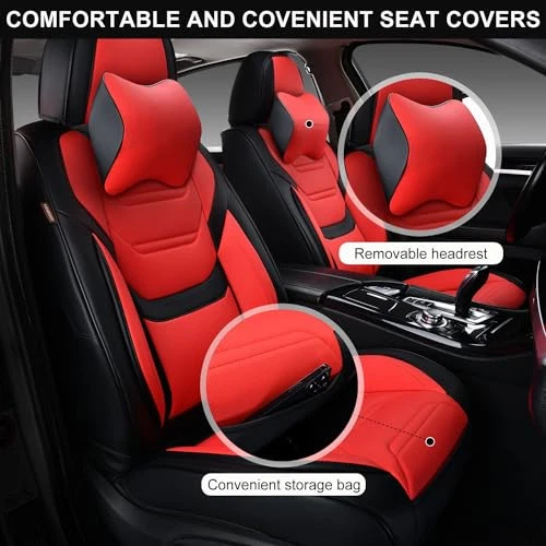 Return Policy Fast Delivery Trusted seller Car Seat Covers Full Set, Breathable Leather Automotive Front and Rear Seat Covers & Headrest for Reduce The Driving Fatigue, Compatible with Most Vehicles, Cars (Black&Red, Front Pair) Product Description 【Memory Headrest】We have placed a removable memory headrest for the seat cover, which will provide a support for your neck as the car moves forward, it will protect your spine and also reduce the fatigue of driving. 【Zipper Installation】Designer has adopted the design of side zipper installation, which makes the seat covers more convenient to install and more solid. T are airbag pop-up designs on the side of the seat covers, and the rear seat covers also have safety buckles reserved for safer driving. 【Ergonomic Design】Made of nappa leather, it is ergonomically designed with a special thickening treatment at the waist to provide you with better lumbar support and can relieve driving fatigue. We combine fashion and sports aesthetics to ensure comfort while taking into account breathability, allowing you to enjoy driving more. 【Upscale Materials】All car seat covers are made of high-grade composite nappa leather, five layers of different materials with different functions (Suede, PP cotton, Nowoven, Sponge, Leather), not only breathable and moisture-proof but also waterproof and easy to clean. 【Dimension and Compatible】The headrest measures 9.8''x10.2'', the backrest measures 19.6''x26'' at its widest point, and the cushion measures 20.9''x20.5''. And seat cover also supports up to 6 inches of stretch and can be matched with most models, you can refer to the product description below. Shipping Returns Payment Shipping Shipping is FREE to all addresses other than APO/PO boxes in the lower 48 states. All our stock ships from US-based warehouses. Shipped via USPS or UPS (depending on location and package weight) Unless stated otherwise, all orders will ship within 24-72 hours of your payment being processed. Check our feedback to see the great reviews of FAST shipping we offer. Returns Seller does not accept returns Payment We currently accept payment via eBay managed payments only. Once payment is cleared, we will dispatch your shipment within 1-3 business days. Please refer to the "Shipping" tab for more information regarding shipping speed to your destination.