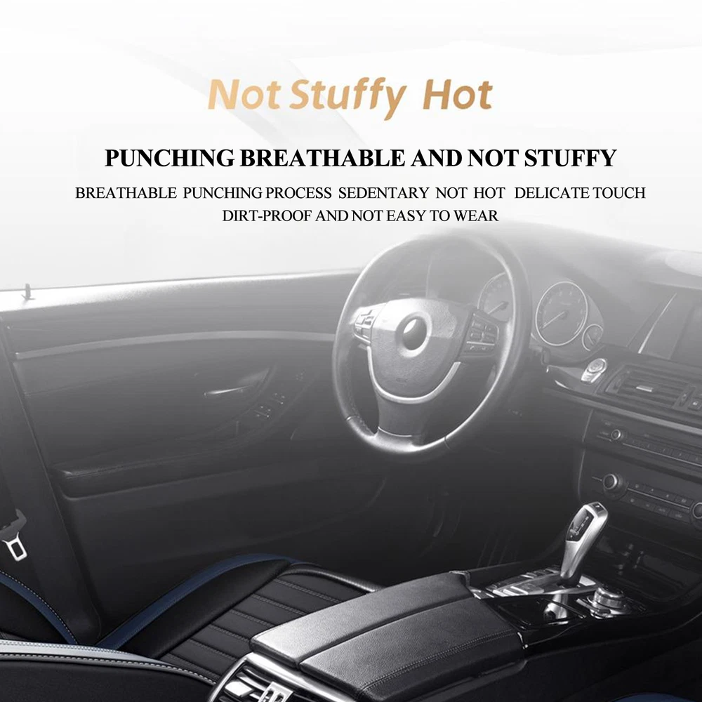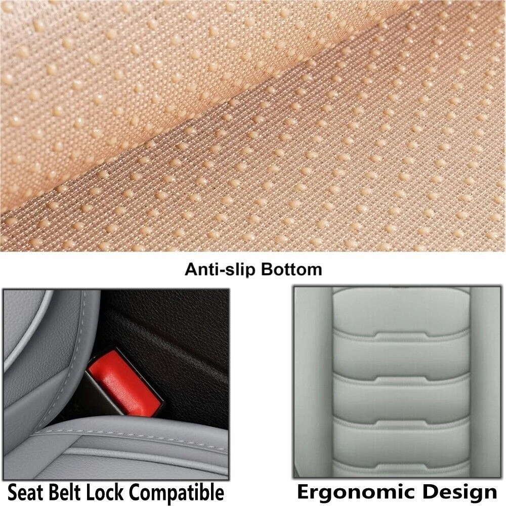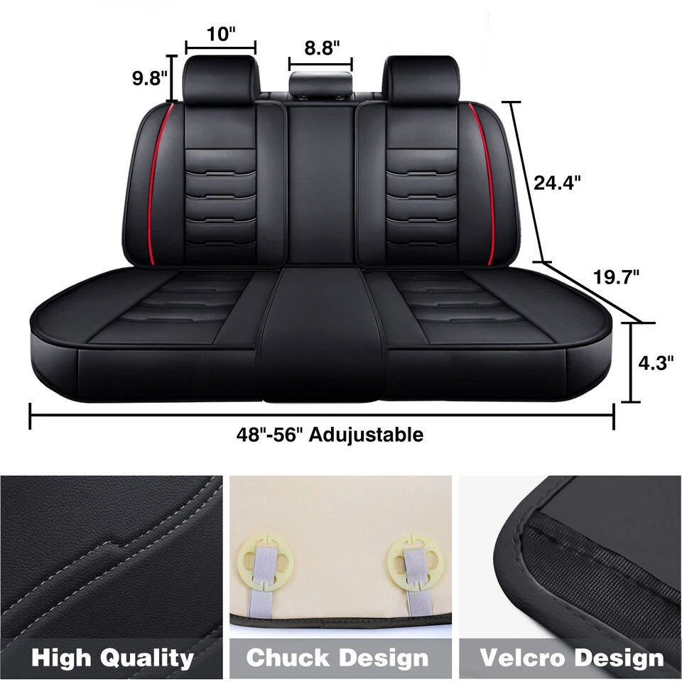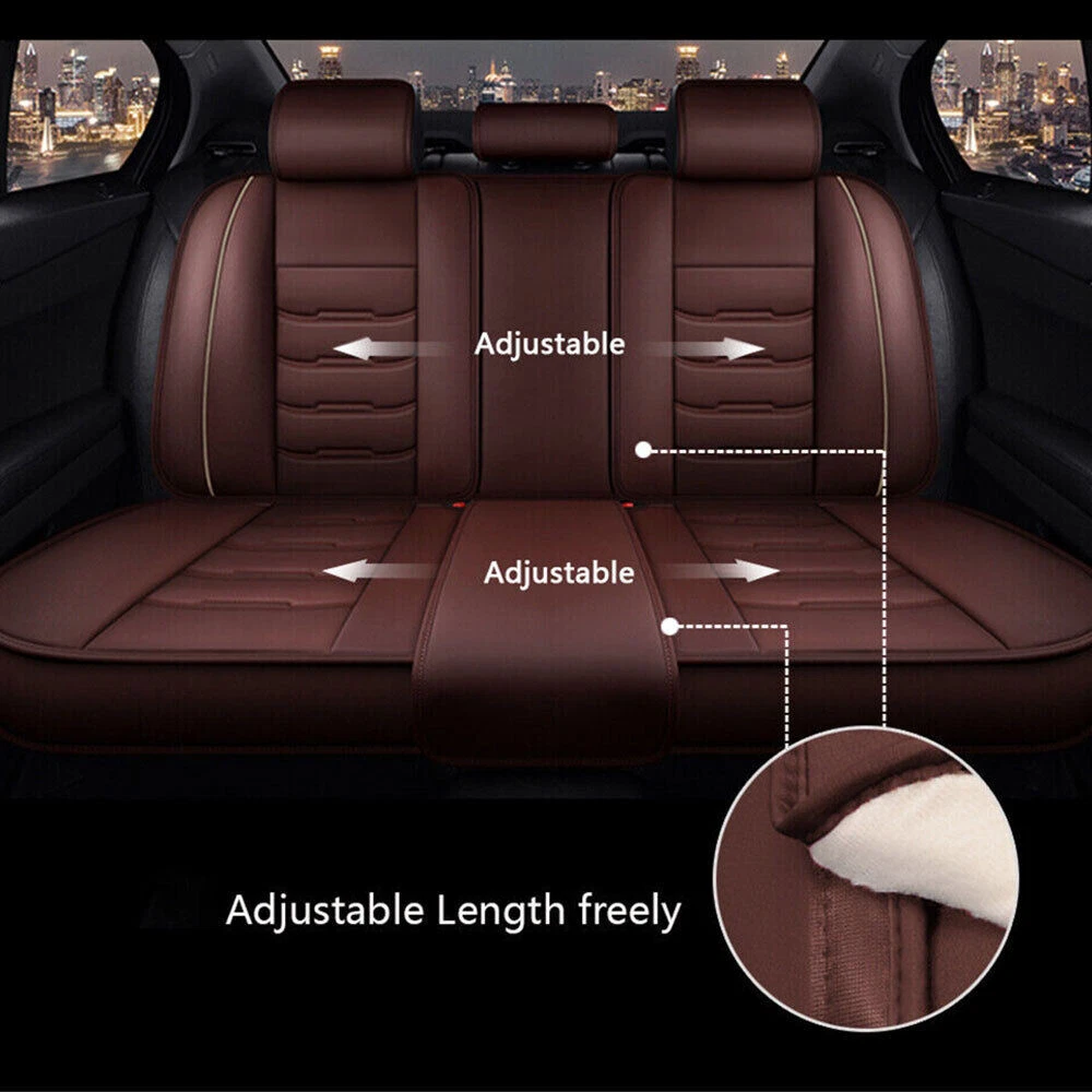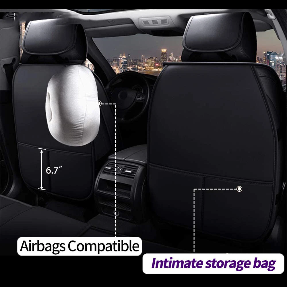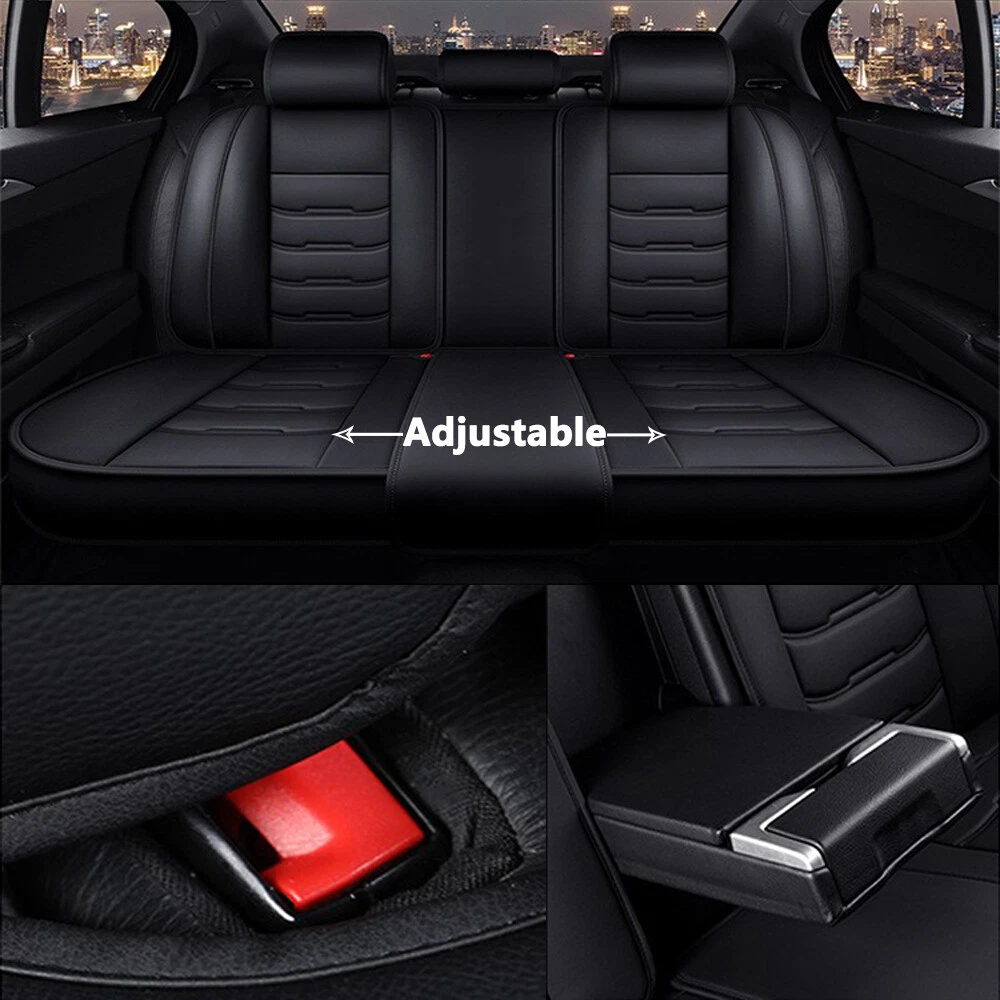 Package Included: 2pcs Front seat cushion 2pcs Back row backrest 1pc Back row seat cushion 1pc Rear armrest box pad Features: Premium PU leather, breathable and wear resistant. Soft touch and easy to wash with wet cloth. Airbag compatible and seat belt buckle reserved, no deploying block, enhance your driving safety. Full surround design, better protect your car seat against dirt, spills, stains, crumbs and pet hairs. Big content bag to enable storage convenience, keep your car interior clean and tidy. Detachable armrest cover, free to install and take off, practical to use. Adjustable and detachable rear bench, free to fit different seat sizes. Universal fit most 5-seat cars, SUVs, trucks and vans. Specification: Material: PU leather Fit:Universal fit 4 Season use Package Included: please select from the drop menu , thanks Notes: Please allow 1-3cm due to the manual measurement. There might be slight color deviation due to different displays. Please check the size of your car seat before purchase.