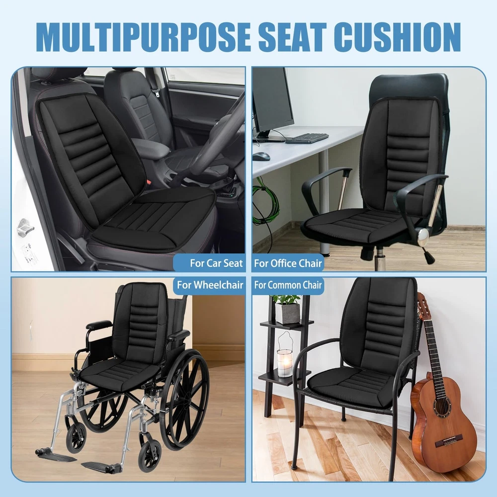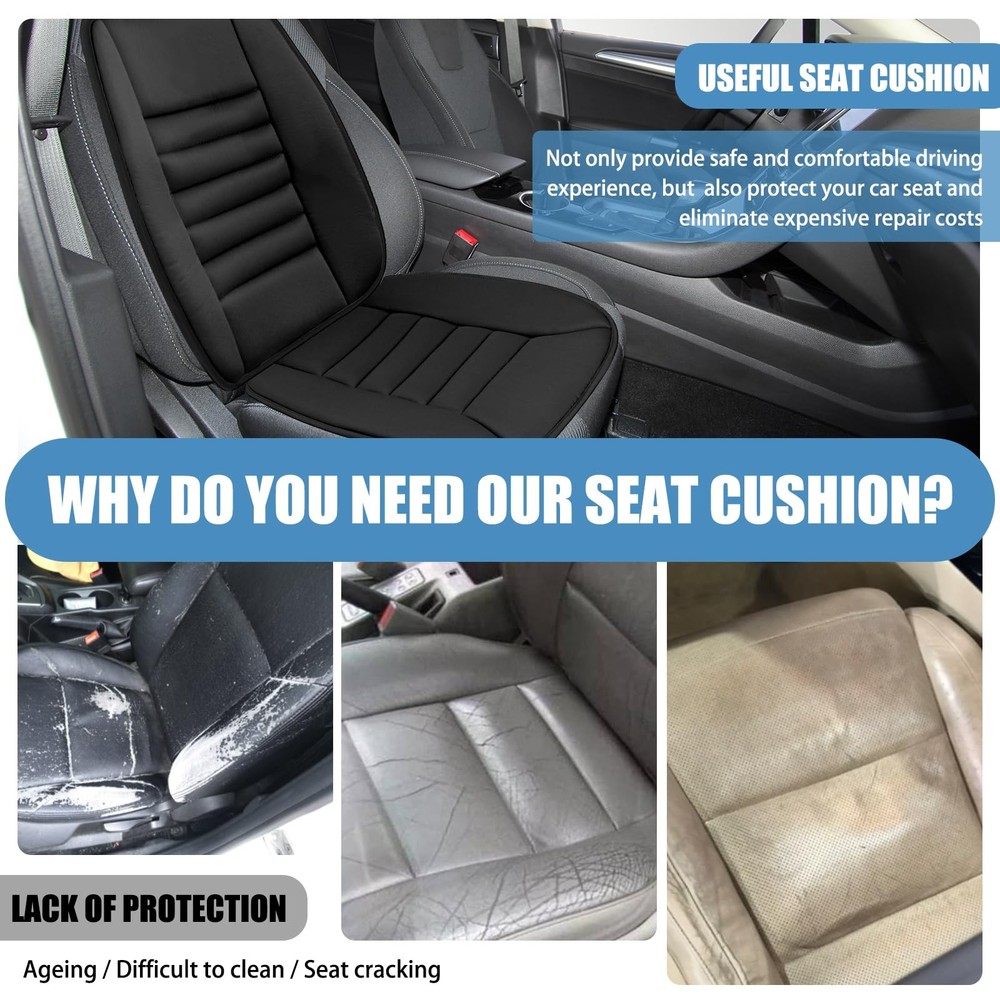 This auto seat cushion is made of high-density memory foam material, providing not only excellent comfort but also maintaining its shape even after long-term use. In addition, the drivers seat cushion uses breathable materials, offering a comfortable and well-ventilated touch. In terms of safety design, the lumbar support for car is equipped with anti-slip rubber and straps to securely fix it in place, preventing any unexpected movement or sliding while driving. Besides providing comfort and safety benefits, this car seat back support also offers long-term protection for car seats. Lastly, memory foam car seat cushion is suitable for various types of seats such as cars, trucks, office chairs, or airplane seats. Whether you want to improve your driving experience or find a practical gift option for friends or family members who spend a lot of time sitting in vehicles or at desks - this car seat cushion is an excellent choice! Strong Support: Our car cushions for driving are made with high-density memory sponge to maintain their shape and prevent deformation even after extended use. The combination of the backrest and seat cushion effectively reduces stress on your hips, waist, and back, alleviating fatigue from prolonged sitting or driving. Stay Comfortable: The car back support is constructed with a breathable material, providing a comfortable touch and excellent air permeability. This effectively prevents discomfort caused by sweat and heat accumulation, ensuring enhanced comfort during long drives or commutes. Safety Design: Adopting an anti-slip silicone bottom cloth design, the automotive seat cushion does not slide and fits better with the original car seat. The elastic band strap design allows for easy access to the safety plug without obstruction, while also not obstructing the airbag. Long-term Protection: The car seat back cushions for driving is designed to maintain their supportive function without distortion for an extended period of time, ensuring exceptional durability. The car driver seat cushion effectively safeguards against dust, wear, wrinkles, scratches, and other potential damages of your car seat. Widespread Use: The car lumbar support for driving seat is suitable for a wide range of seating options, including car seats, truck seats, office chairs, home chairs, game chairs, wheelchairs and more. One pad, multiple uses, convenient and comfortable. They significantly enhance comfort and make an excellent considerate choice for both family members and friends.