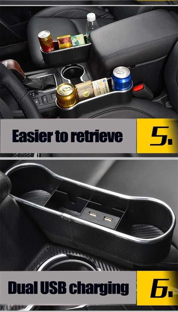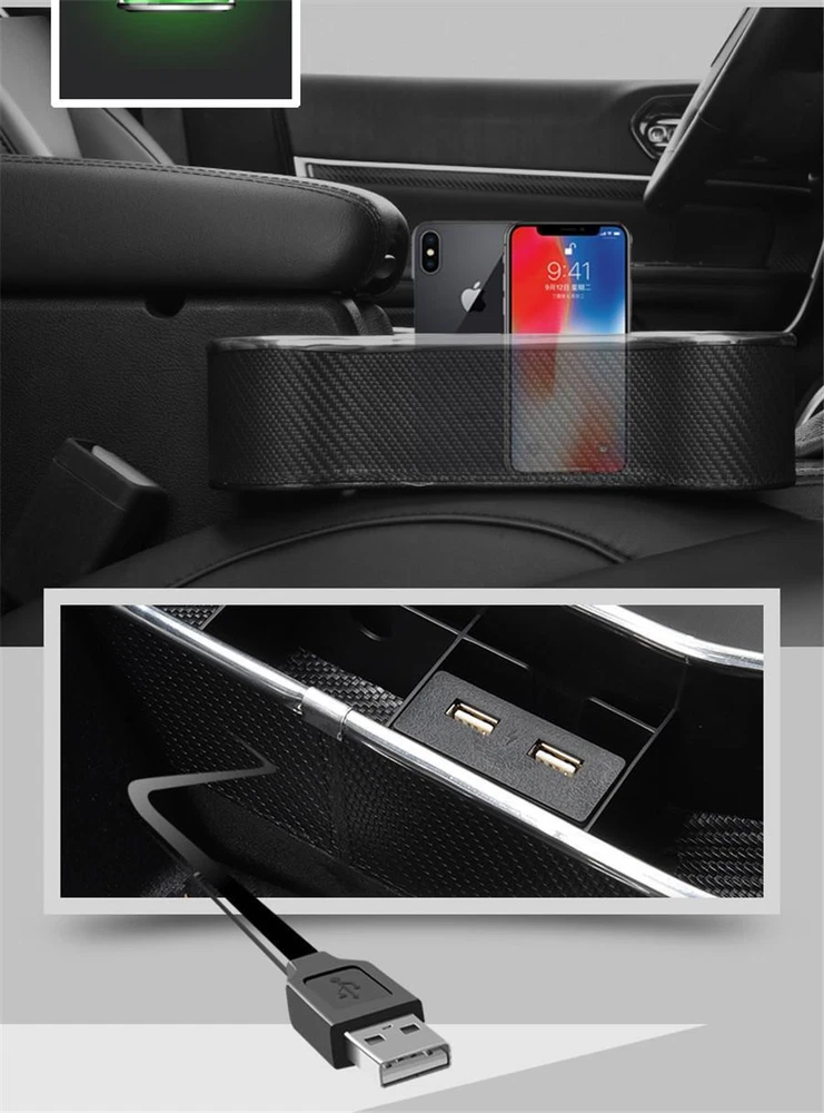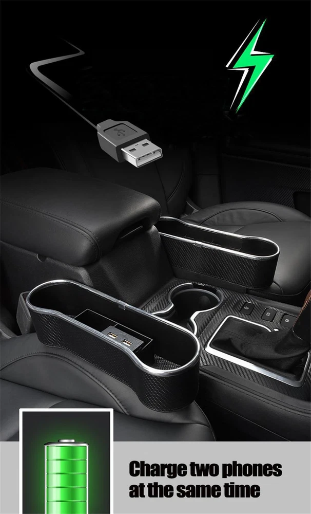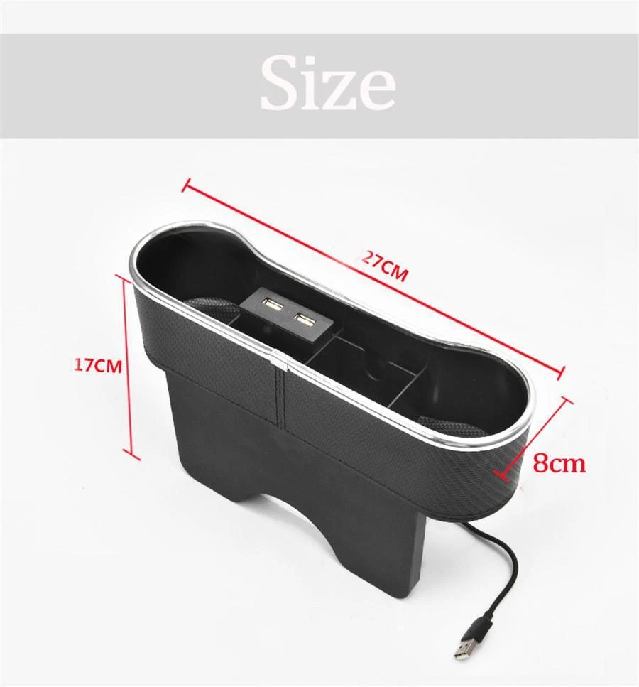 Add our listing to Watchlist Or Add to Cart , you will get more discount Features: 1. Classic fashion, elegant appearance. 2. General design, suitable for most cars, easy installation. 3. Durable and long service life. 4. Increasing the storage space in the car, it can store car key, bill, mobile phone, parking card, wallet, cigarette box and so on. 5. The design of the product can also effectively block the gap to prevent the occurrence of things falling into the seating gap. Specification: -Type: Car Storage Box(dual USB charging box) -Placement on Vehicle: Front, Left, Right (Universal to left and right) -Colour: Black (carbon fiber) -Size:As shown -Material: ABS plastic Note: -The color of the product varies somewhat due to different screen. -Please allow 0.5-1 inch difference due to manual measurement.(1 inch=2.54cm) The package includes: 1Pcs Dual USB Charging box eBay Cross Border Trade powered by ChannelEffect